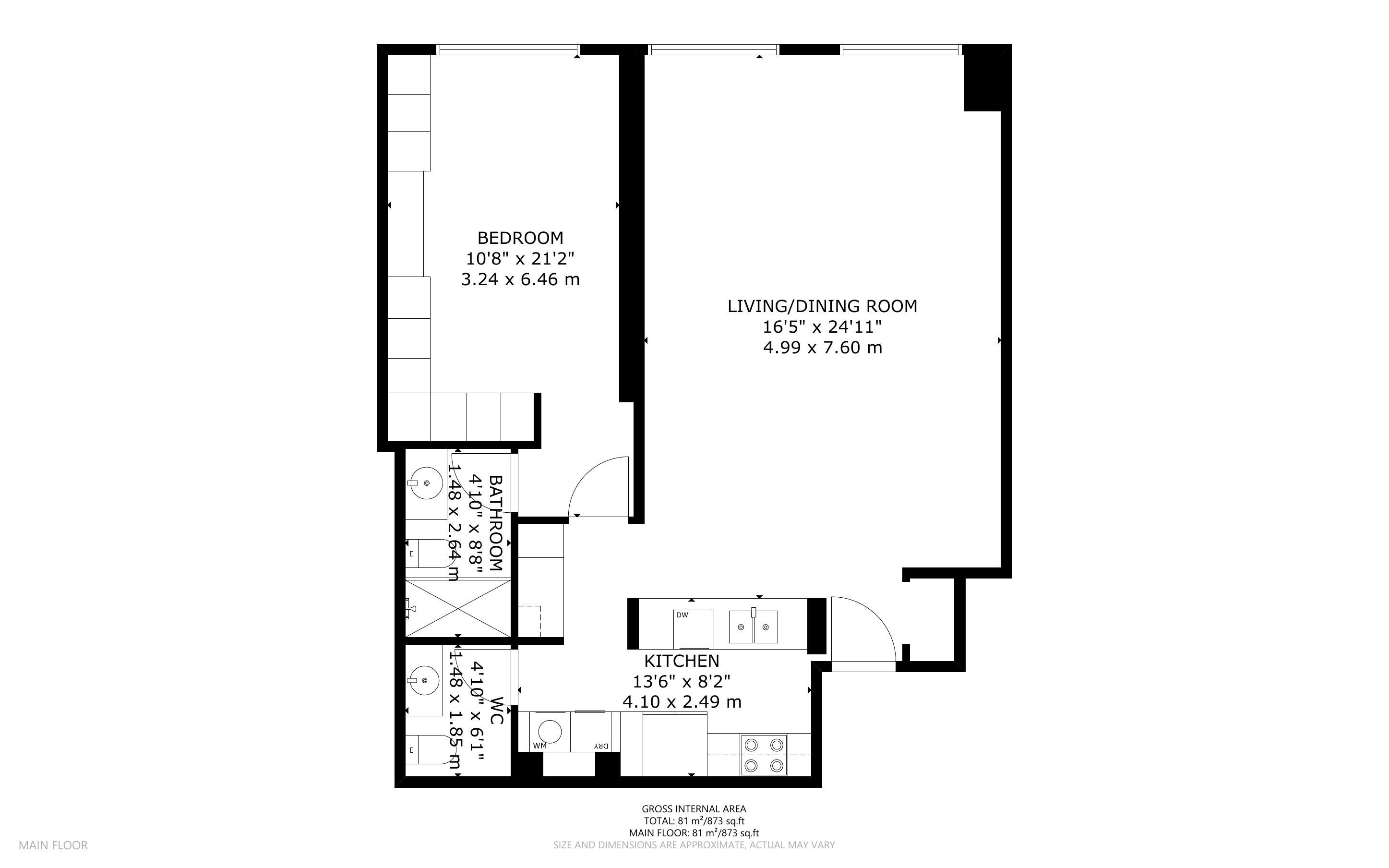 • Spacious 903SF one-bedroom condo with two bathrooms for ample living space.