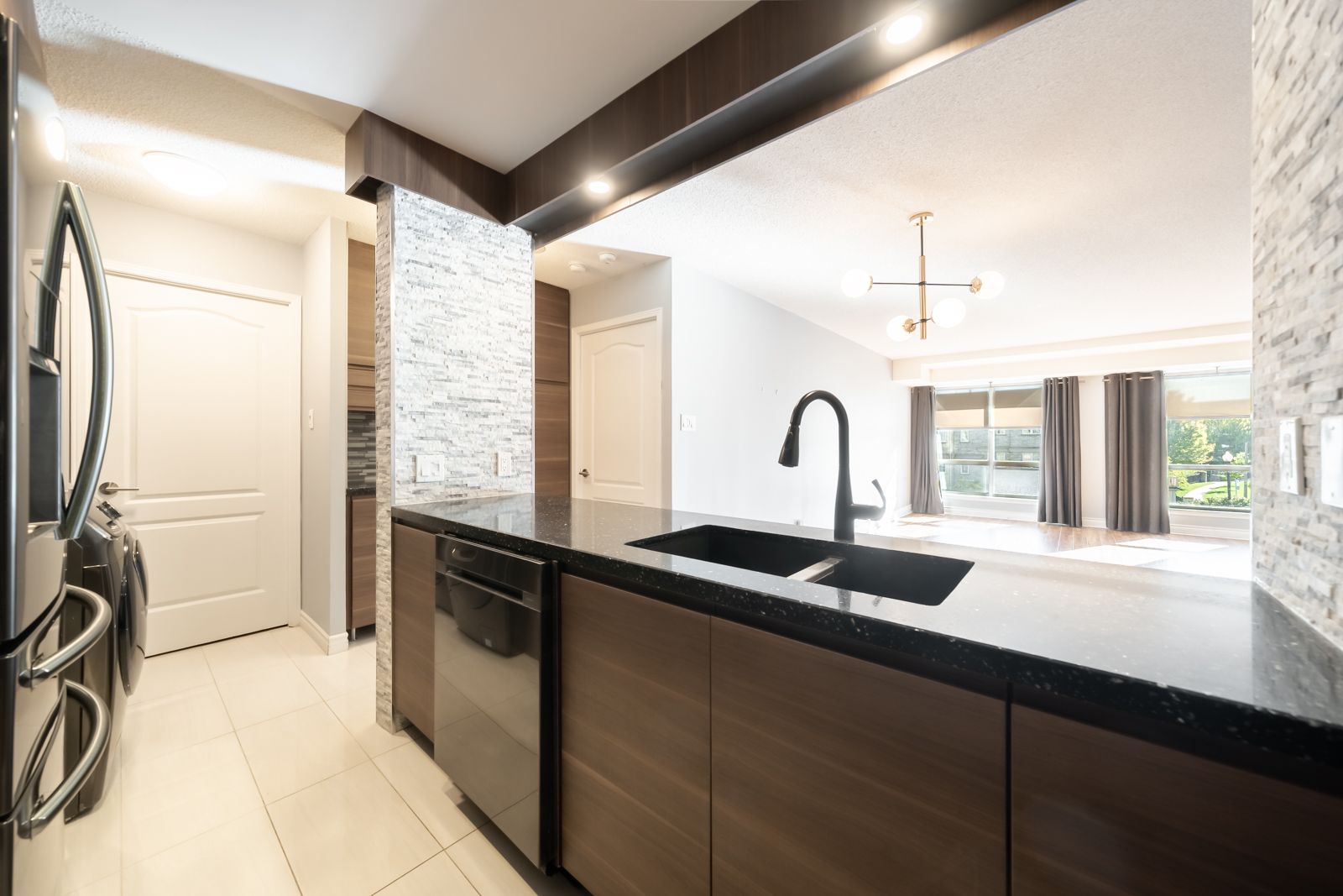 Boutique mid-rise condo edgwater at the galleria! Fantastic value for a large 903sf (as per mpac) 1 bedroom unit 2 bath unit. Impeccably decorated with a brick accent wall, contemporary kitchen, and modern bathrooms. Large open concept living/dining with a bright south/west exposure. Tucked away in a forested area by leitchcroft park and a pond in vanhorn park, this condo has the perfect location. Just around the corner you will find commerce gate, banking, and restaurants all along hwy 7, plus quick access to hwy 404. Being sold as a power of sale.
