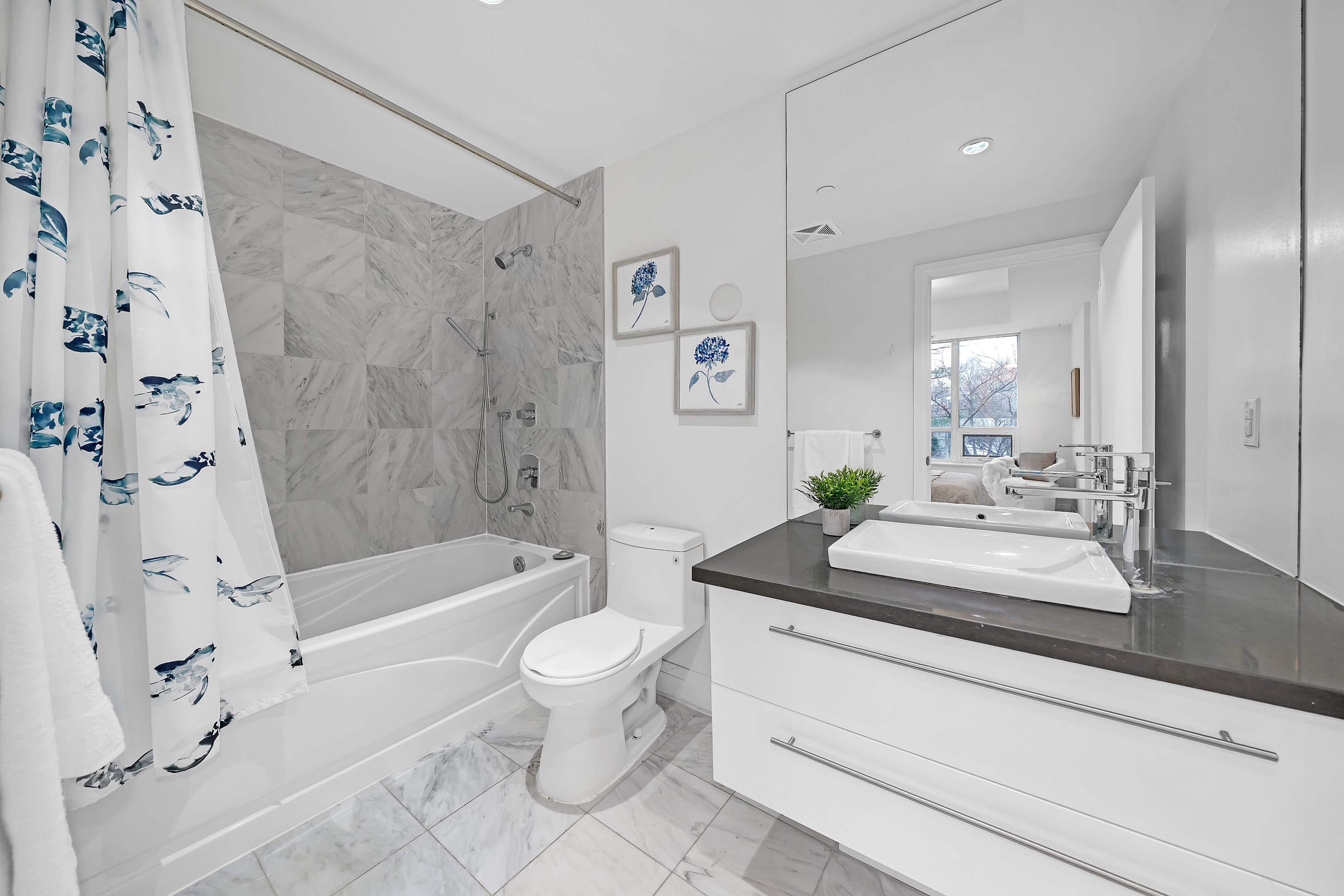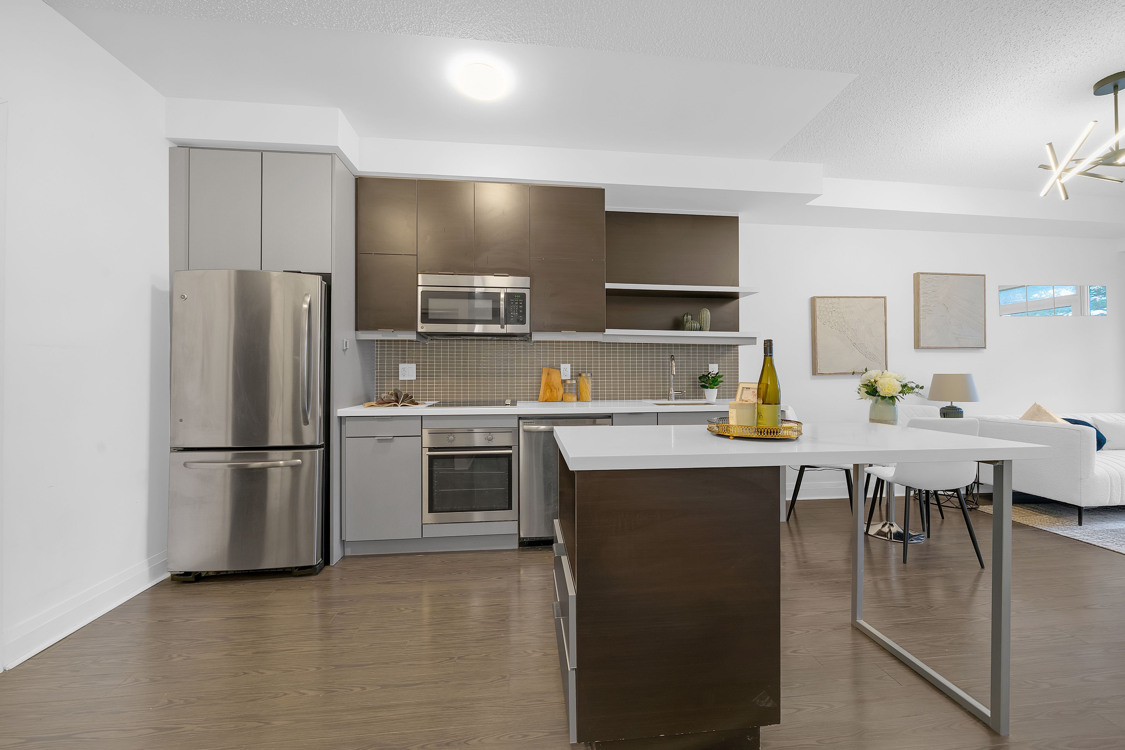 • Full building amenities including gym and rooftop garden.