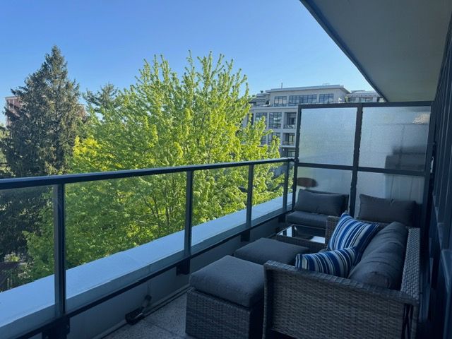 • 135 sqft balcony overlooking a quiet treed courtyard for relaxation.