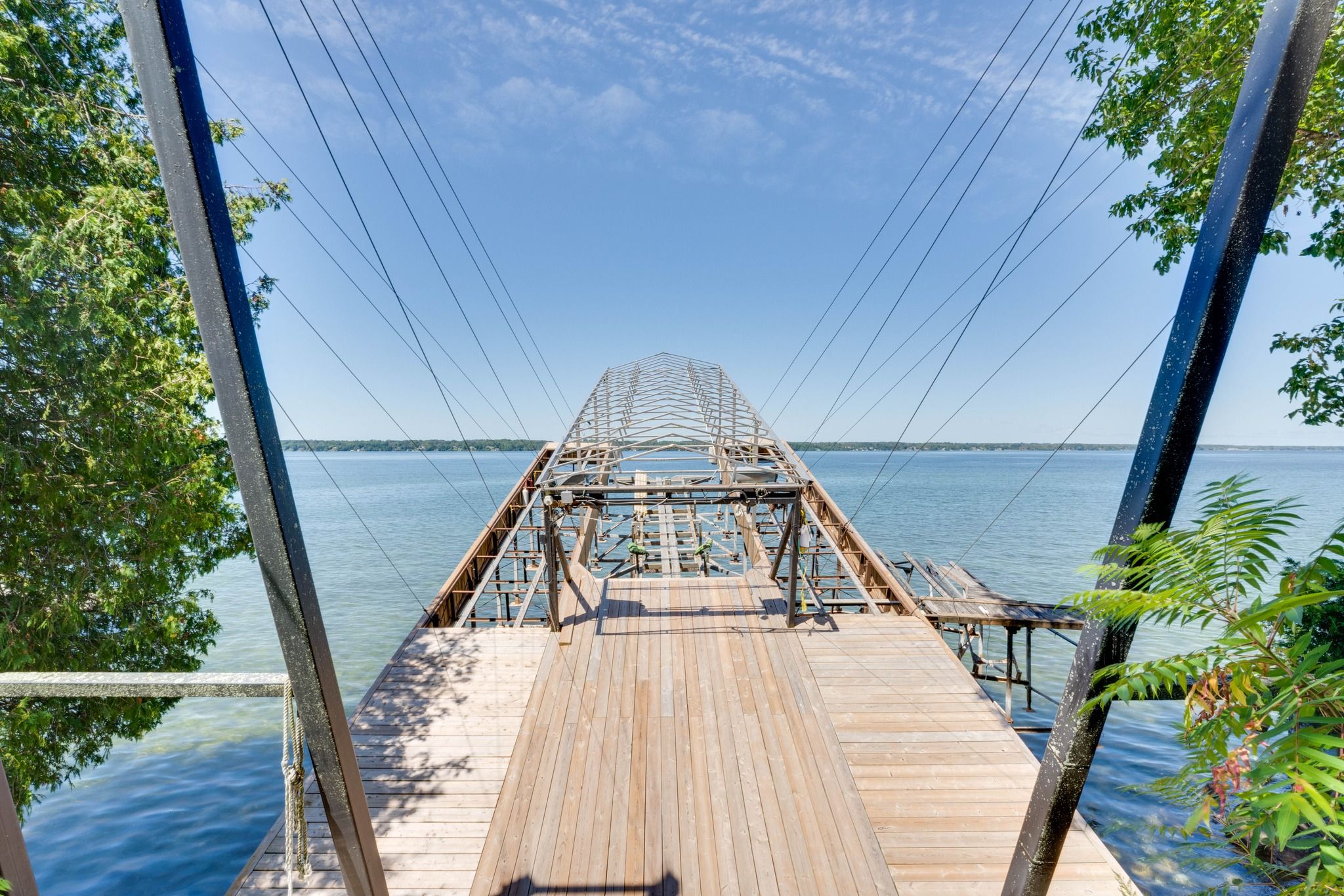 Experience luxury waterfront living in this fully renovated 4-season home with a detached 2-storey garage, ideally located in the prestigious big bay point community on the western shores of lake simcoe. Surrounded by multi-million dollar estates and just minutes to friday harbour resort, big bay point marina, golf courses, and beaches, this property offers the ultimate lifestyle for water lovers and outdoor enthusiasts. Inside you'll find a stylish, sun-filled interior with brand new black-framed windows, hardwood flooring, a cozy wood-burning fireplace, modern bathrooms, and a fully renovated kitchen with new appliances and walkout to a spacious deck with stunning lake views. The craftsmanship throughout blends comfort with contemporary design. Built for the sport enthusiast, this home features one of the largest private docks in the area, complete with an upgraded lift system and a separate garage designed to accommodate a watercraft up to 40 ft. An outdoor cedar sauna adds a resort-style touch overlooking beautiful kempenfelt bay. Perfect as a primary residence, weekend escape, or luxury airbnb, this rare offering blends privacy, elegance, and adventure in one exceptional lakeside setting.
