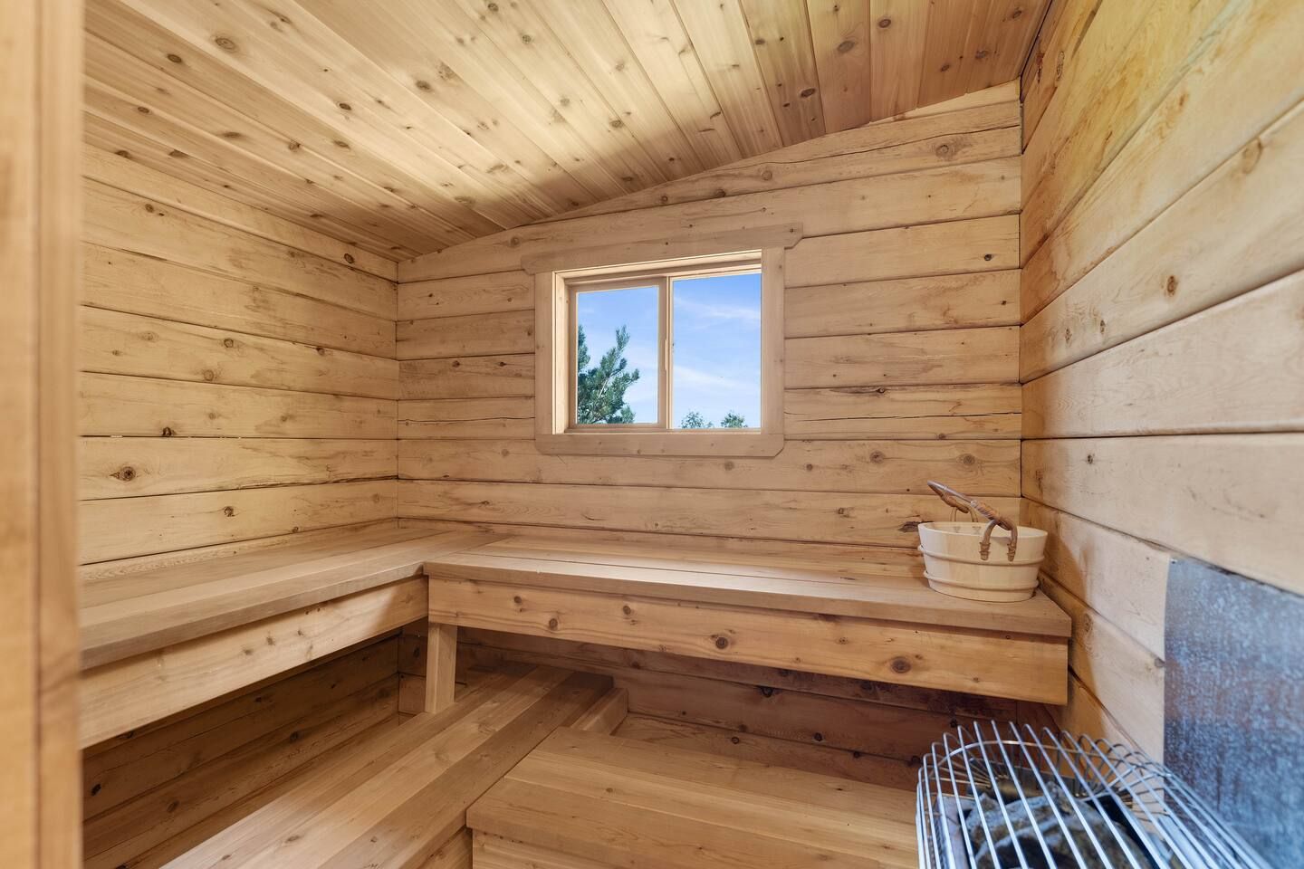 • Outdoor cedar sauna offering a resort-style experience overlooking the bay.