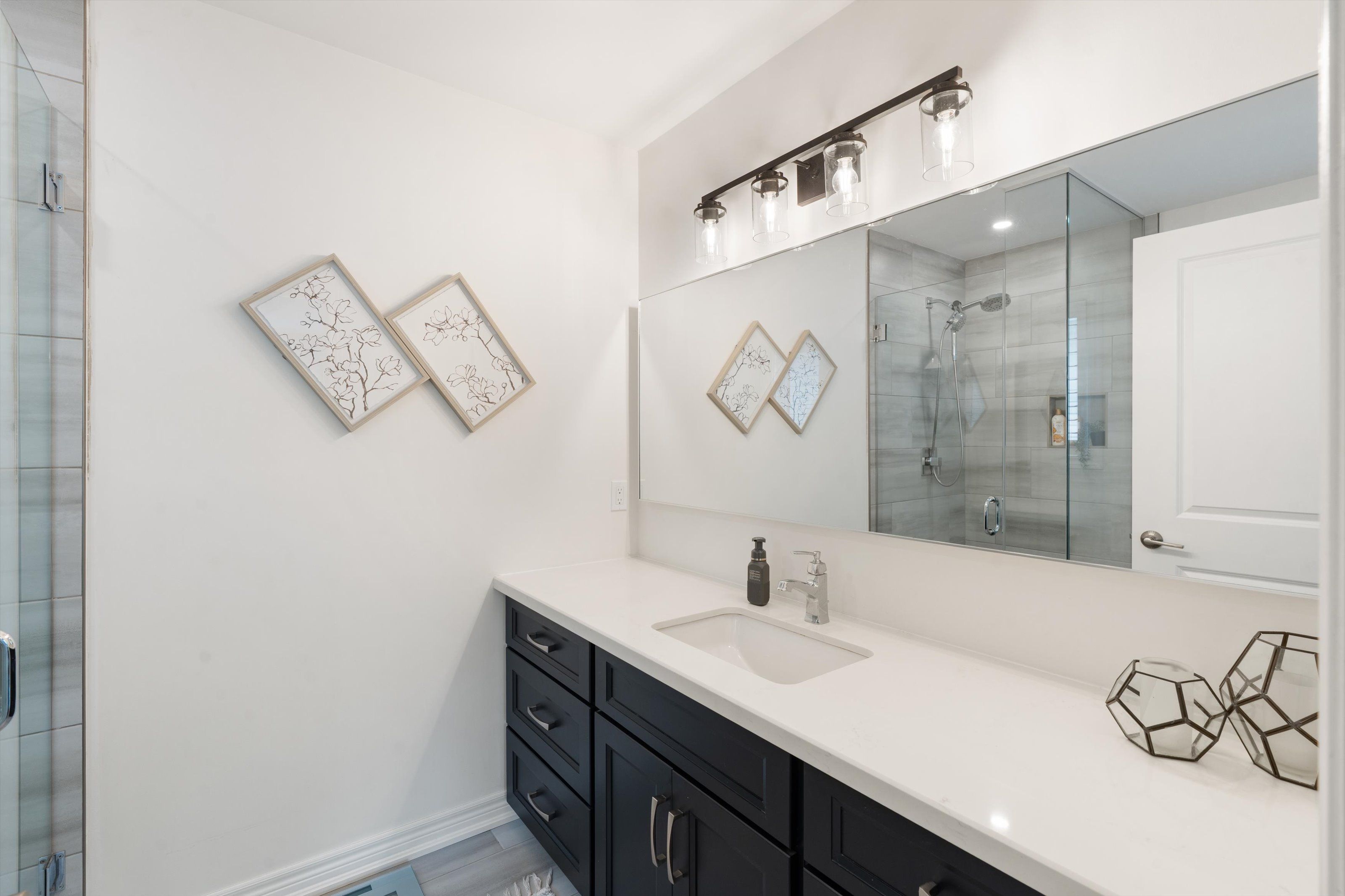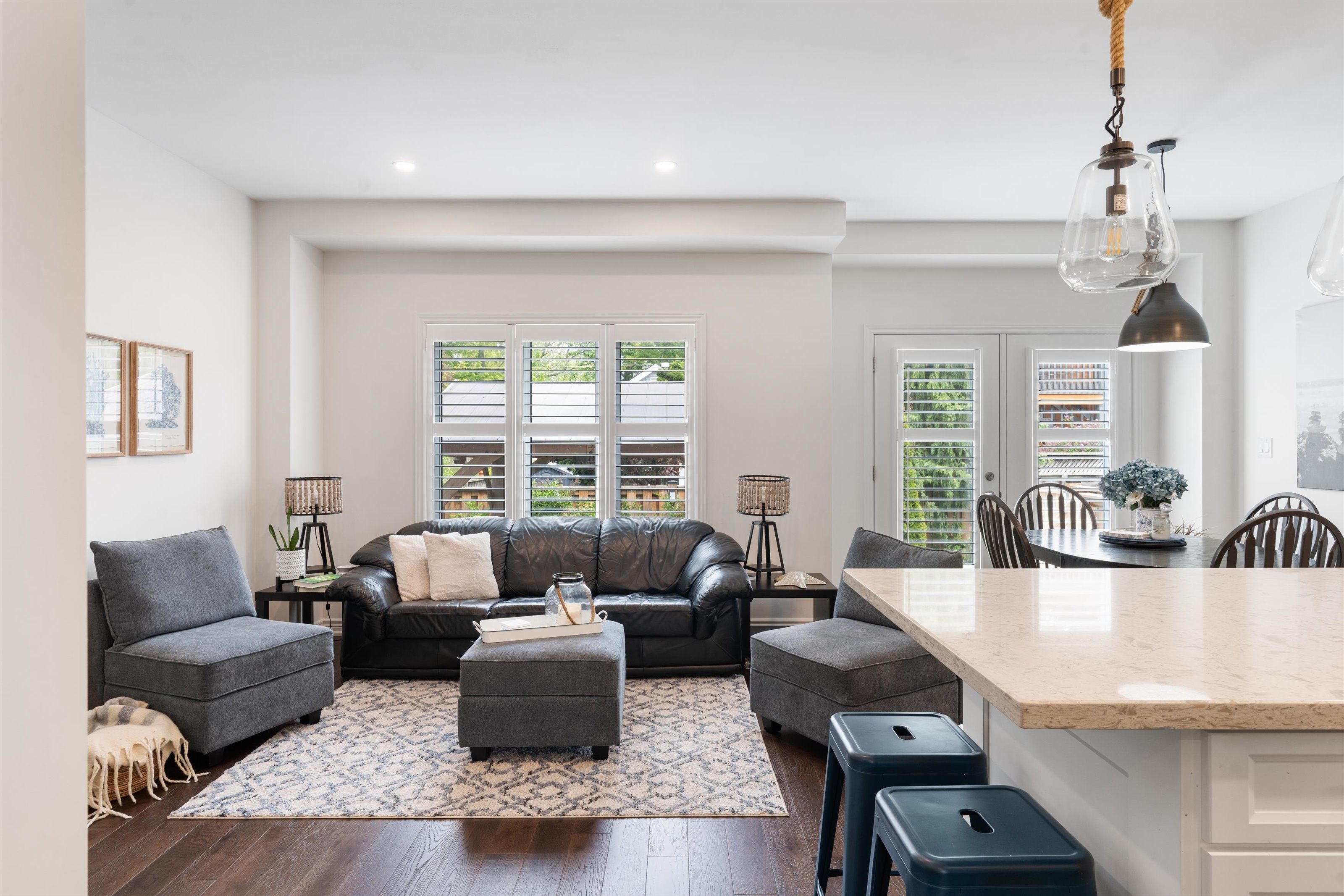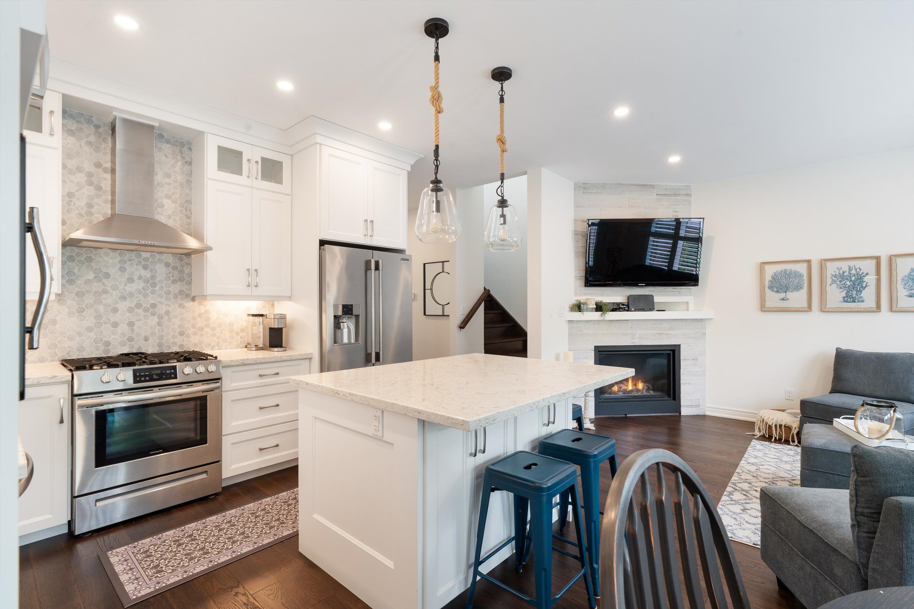 • Chef's kitchen with a large quartz island for cooking enthusiasts.