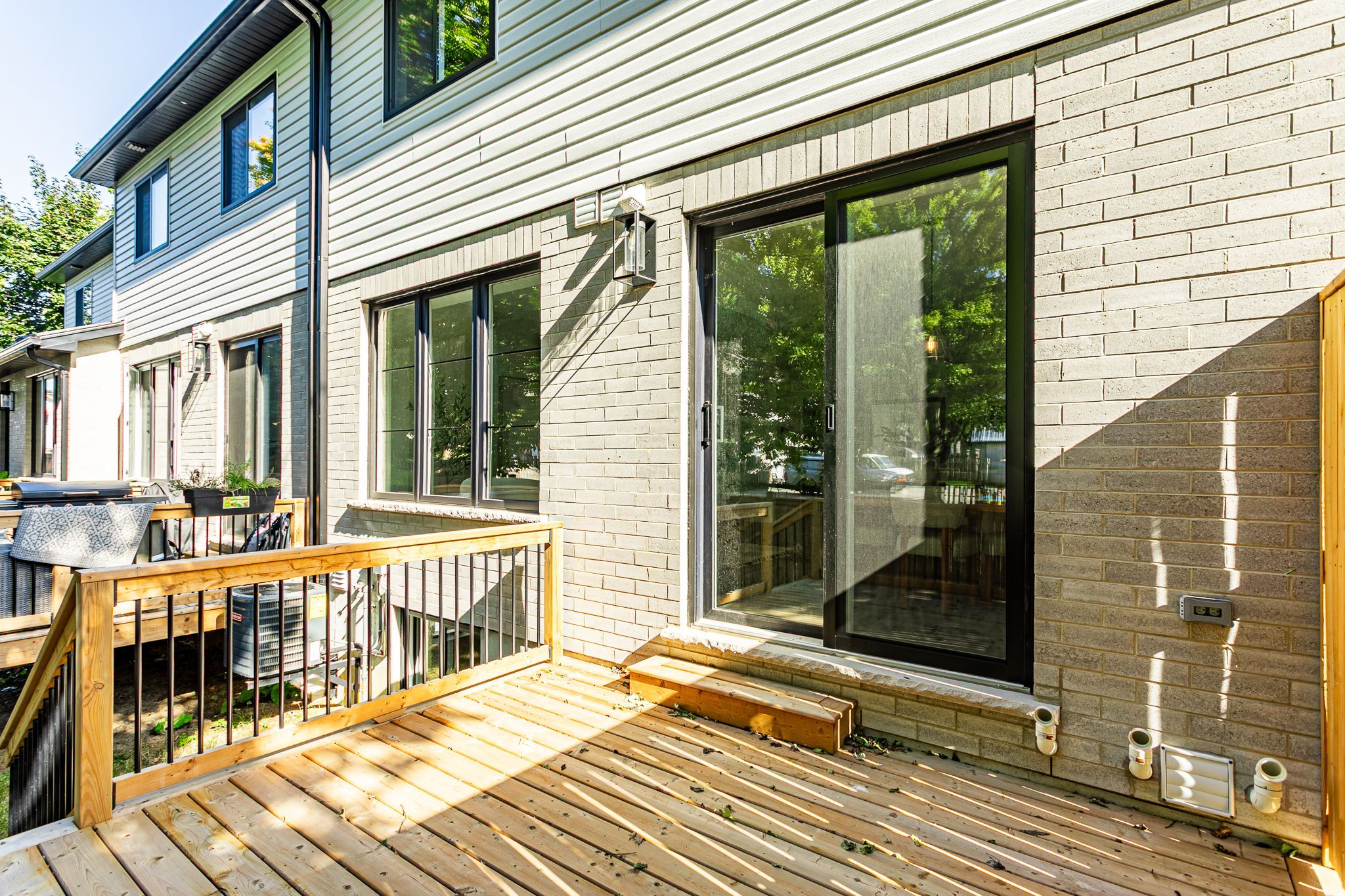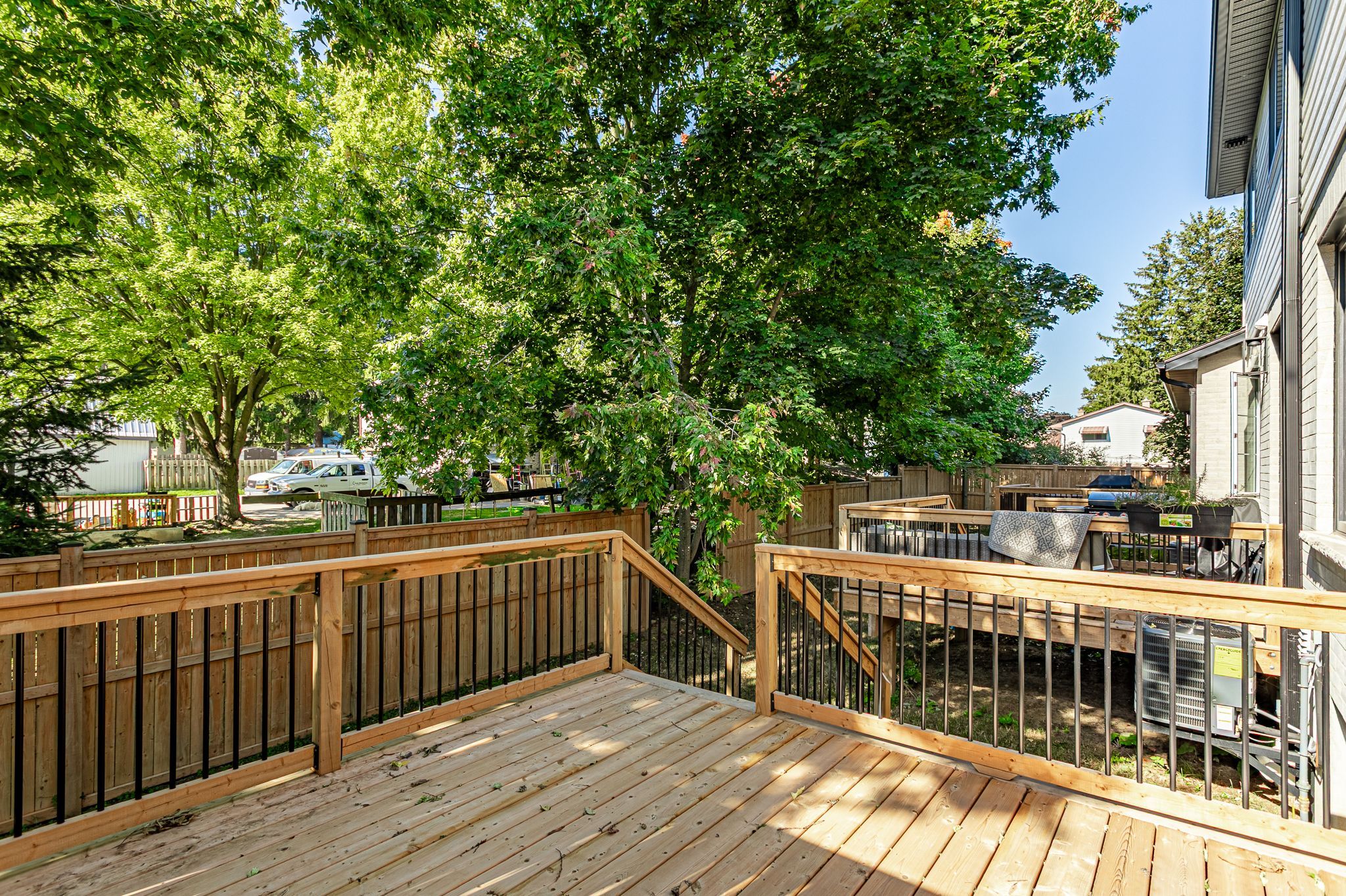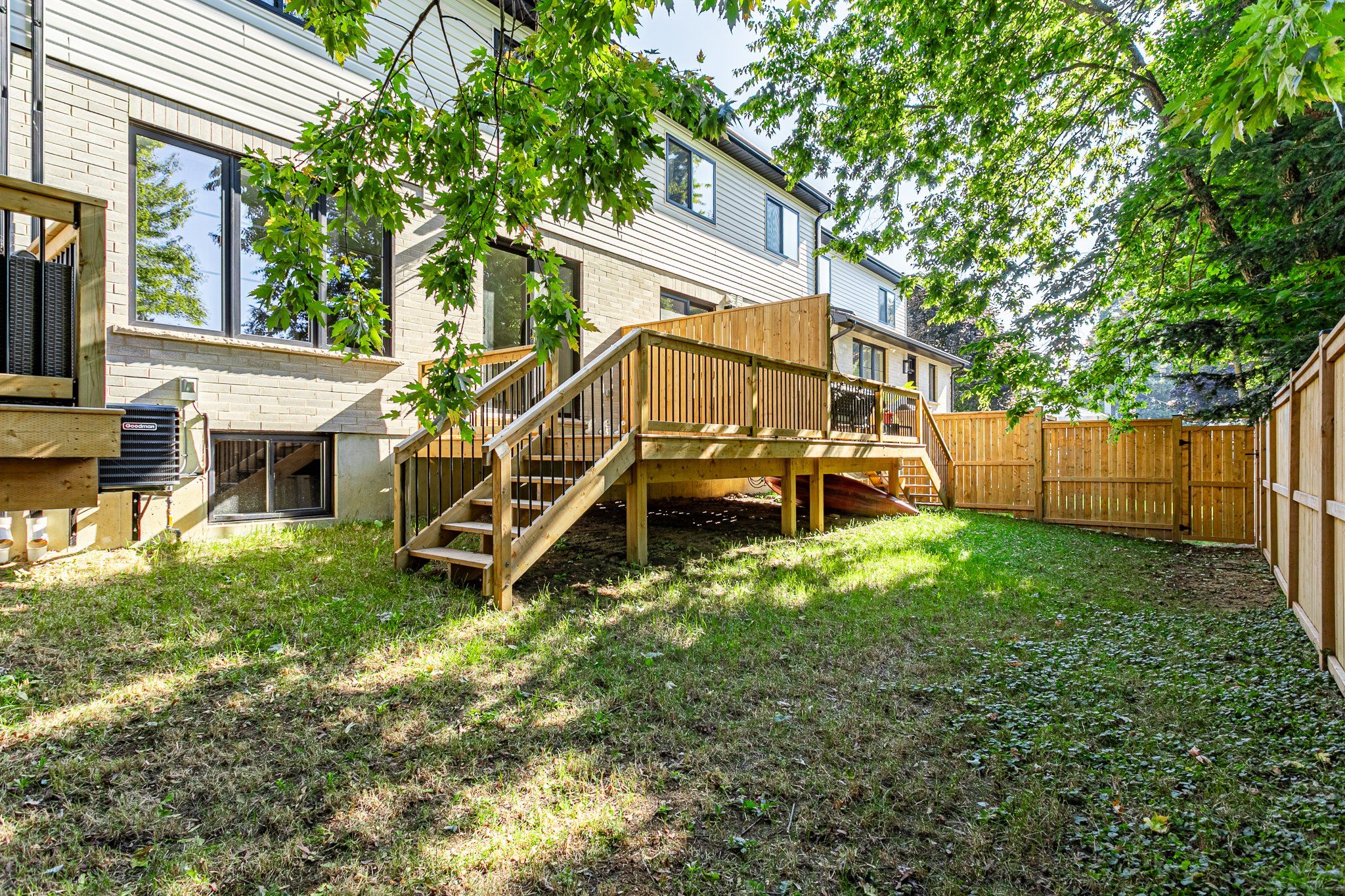 • Private backyard with deck and green space for relaxing or gardening.