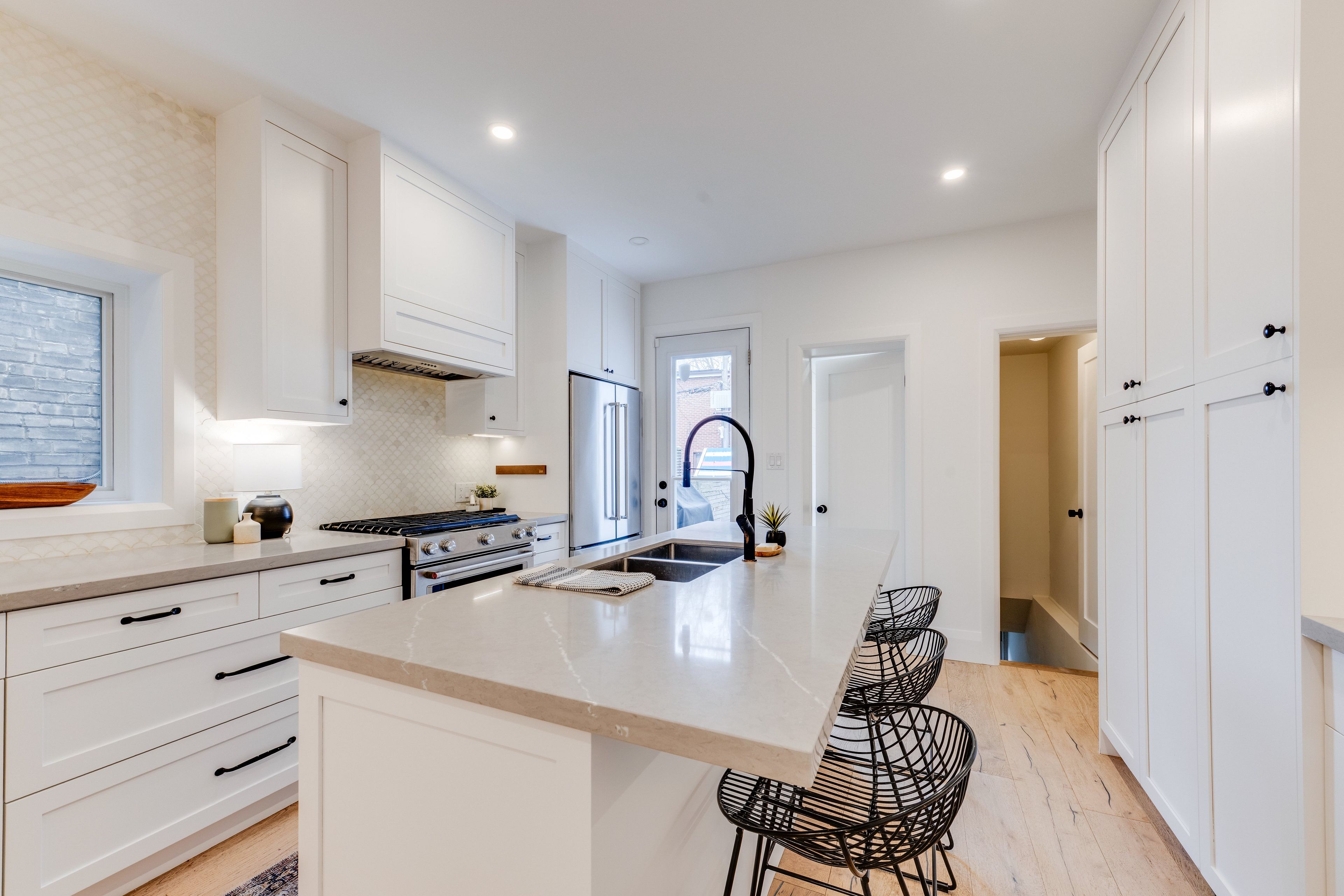 A beautifully renovated home with a modern organic edge, this 3+1 bedroom, 3-bath stunner offers flexible living, an in-law suite with 2 separate entrances, and the option for rear-lane parking. The covered front porch sets the tone- functional, and welcoming-perfect for staying dry, parking the stroller, or settling in with a glass of wine. Inside, the open-concept main floor blends clean lines with warm, organic touches: a hex-tiled entry, built-in shelving, airy living & dining spaces, and wide-plank white oak floors illuminated by warm pot lights. The kitchen is the showpiece-a chef's dream with fresh white shaker cabinetry, a scalloped marble backsplash, gas stove, pantry, endless counter space, and a generous island that anchors the room. A rare and stylish shiplapped powder room with laundry completes the main level. Upstairs, rustic doors add character, leading to a king-sized primary with double wardrobes, two additional charming bedrooms, and an updated bathroom with a distinctly european sensibility. The lower level offers incredible versatility with two separate entrances and a full in-law suite. A front mudroom/laundry room keeps life organized, while the suite features soaring ceilings, a cozy living area with extra storage, a proper bedroom with closet, a pretty eat-in kitchen, and an updated bathroom. A flexible bonus space with its own exit can be incorporated into the suite or reserved for upper-level use-ideal for storage, a studio, or a quiet workspace. Perfectly positioned near the junction, corso italia, the davenport/dupont strip, earlscourt park, smyth park, the humber river trails, the west toronto railpath, mccormick park, and carleton village jr & sr public school, this home offers both community and convenience. Commuting is a breeze with quick access to the up express, ttc routes on st. Clair, davenport, and keele, plus easy drives to the 401& downtown. Where modern calm meets urban grit - a home that lives beautifully and works hard.