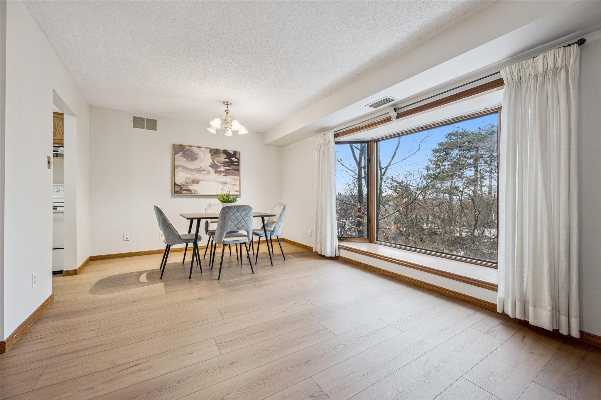 • Bright open-concept living and dining area with plenty of natural light.