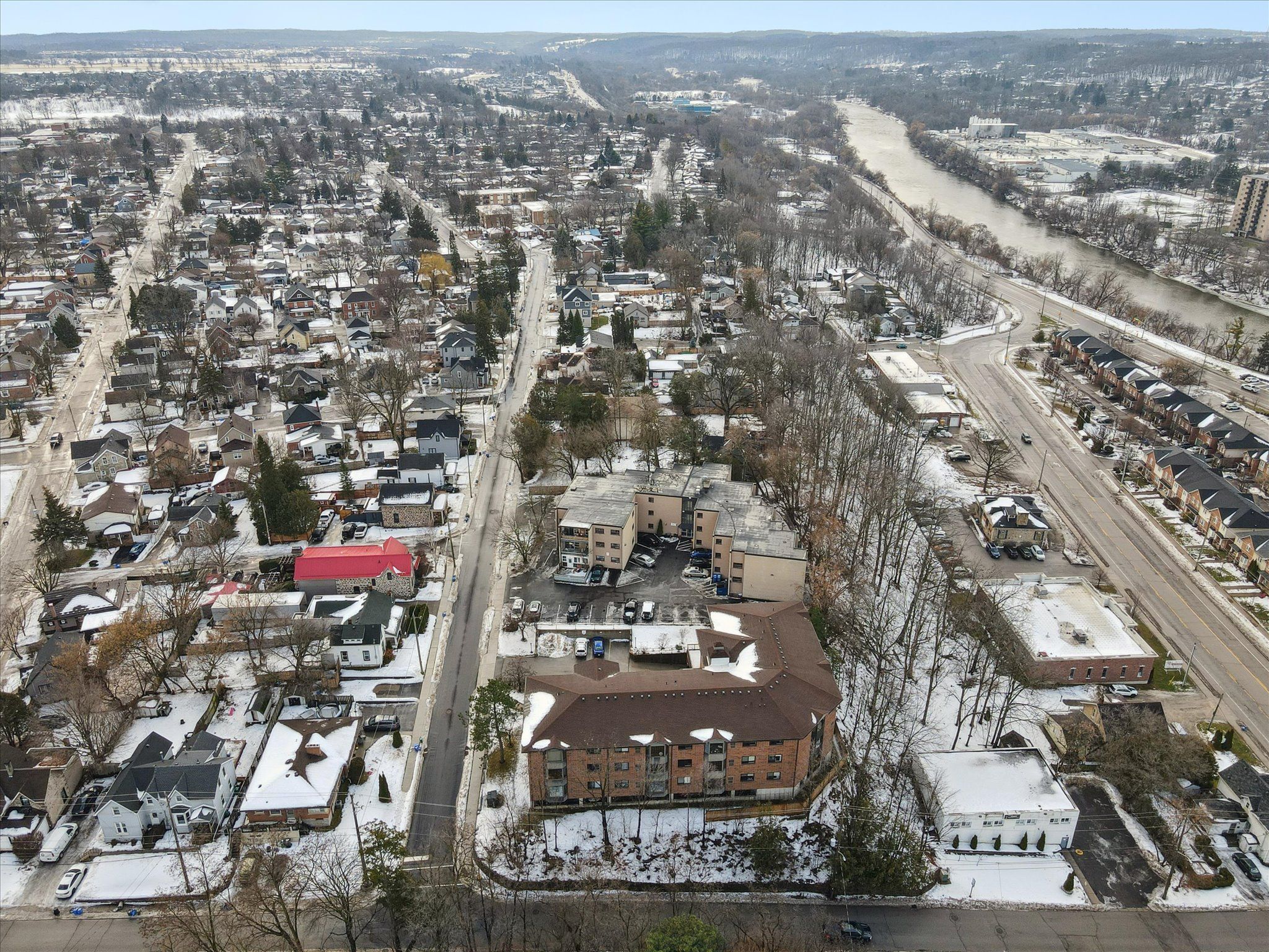 Welcome to this spacious and move-in ready 2-bedroom, 2-full bathroom condo located in the heart of east galt. Offering a rare and generous layout of approximately 1,250+ sq ft, this bright suite features an open-concept living and dining area filled with natural light, a well-appointed kitchen with ample workspace, and the added convenience of in-suite laundry with extra storage. The primary bedroom is a true retreat with room for a king-size bed and a private 4-piece ensuite with large soaker tub, while the second bedroom is also generously sized and located near the second full bath, ideal for guests, a home office, or shared living. Set within a well-maintained building just steps to downtown galt's shops, cafes, restaurants, transit and the gaslight district. This oversized condo offers comfort, functionality and an unbeatable location for first-time buyers, downsizers or investors alike