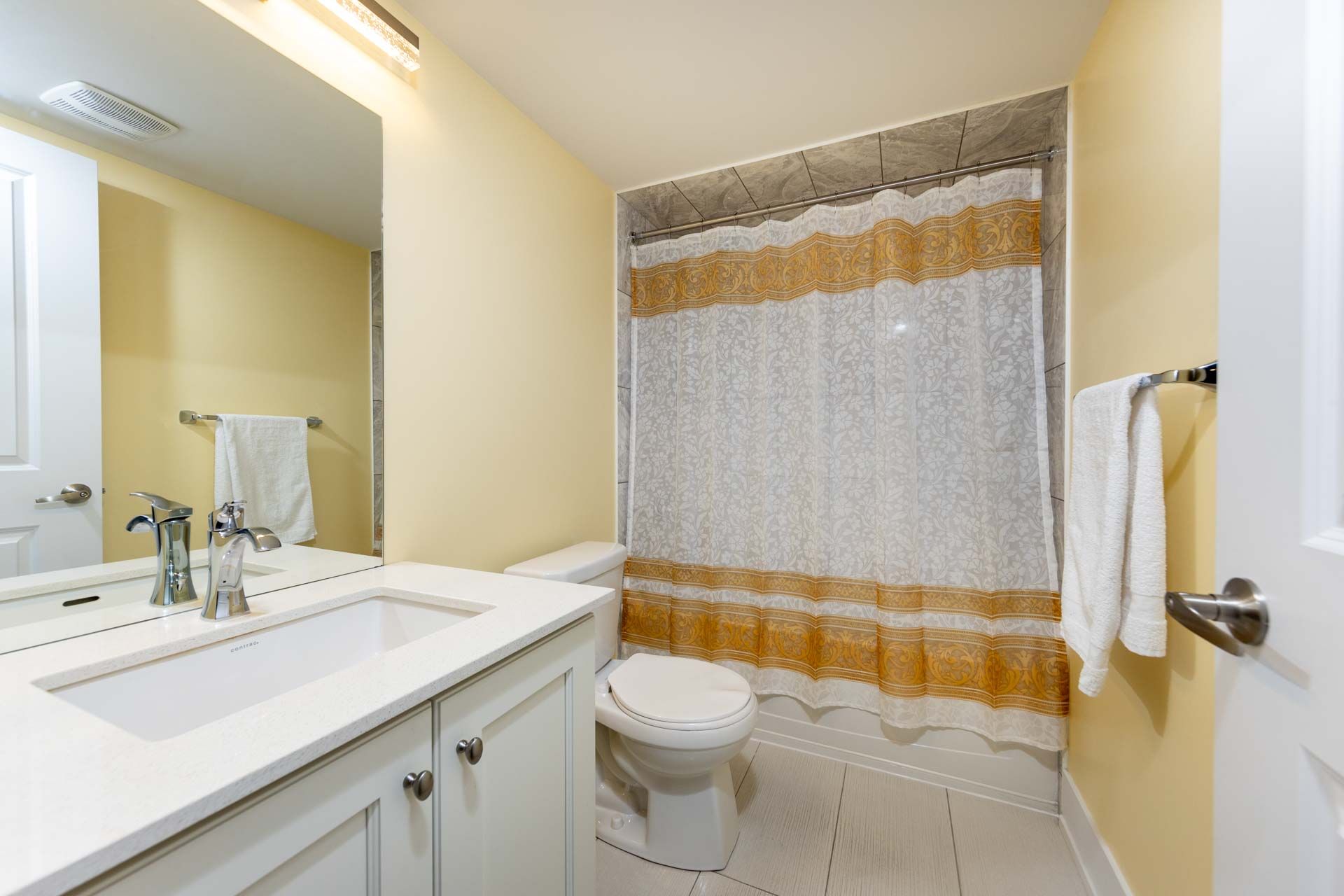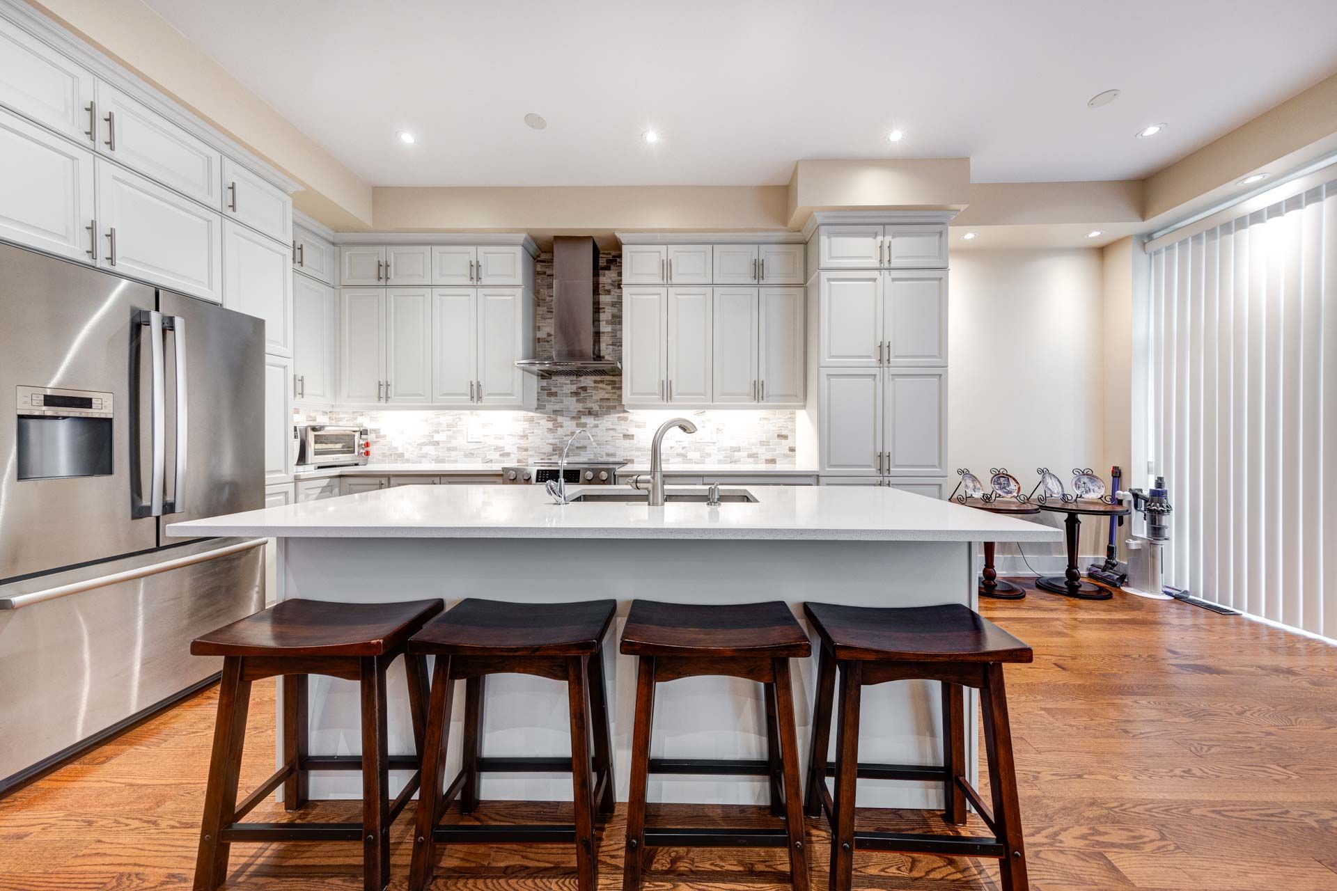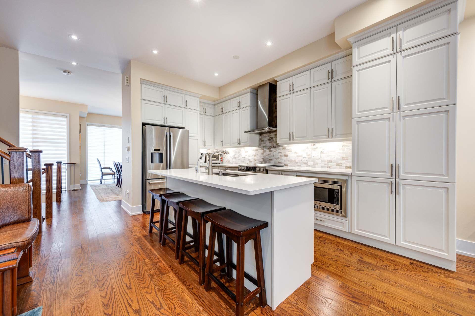• Spacious kitchen with large quartz countertops and high-end appliances.