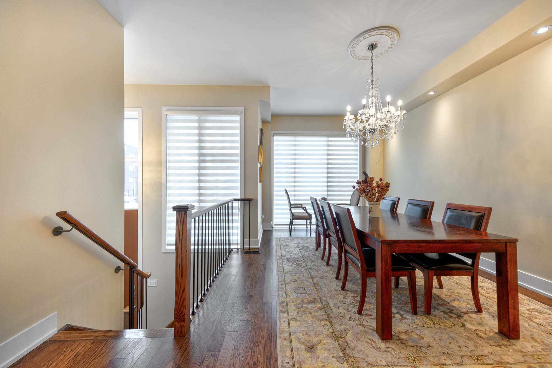 Fantastic freehold townhouse in thornhill. Good location, nice neighbourhood, builder upgraded $$$$$, 2nd floor 10" ceilings, floor to ceiling windows, hardwood flooring throughout, huge extended kitchen & large quarts countertop, high end appliances, lots of pot lights with big exquisite chandelier in main entrance & chandeliers in both master bedroom &dinning room. Backyard is all stones. Close to access 407, hwy#7,banks,supermarket, restaurants, tim hortons, top ranking schools, parks for all amenities. Well maintenance, *move in condition.*