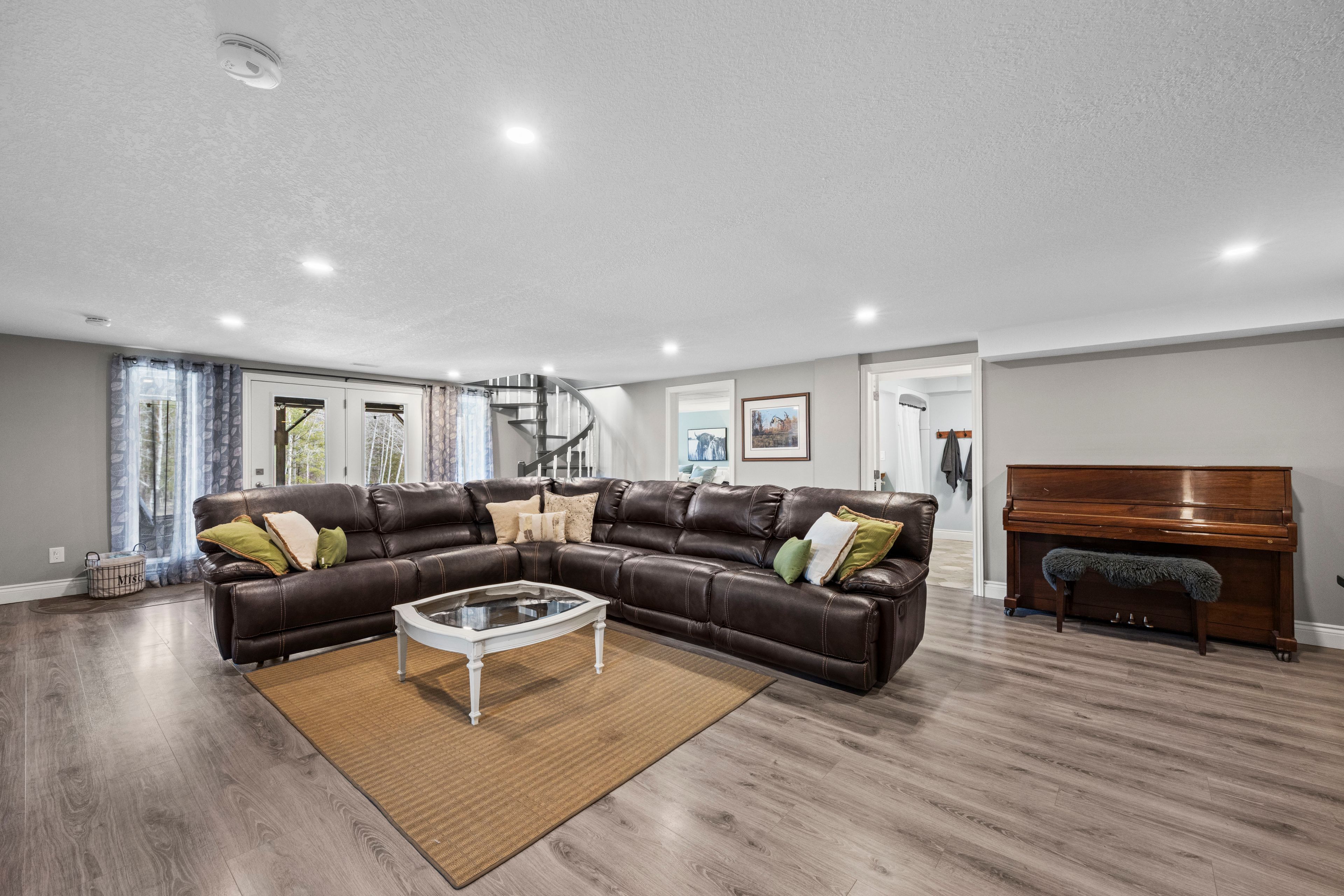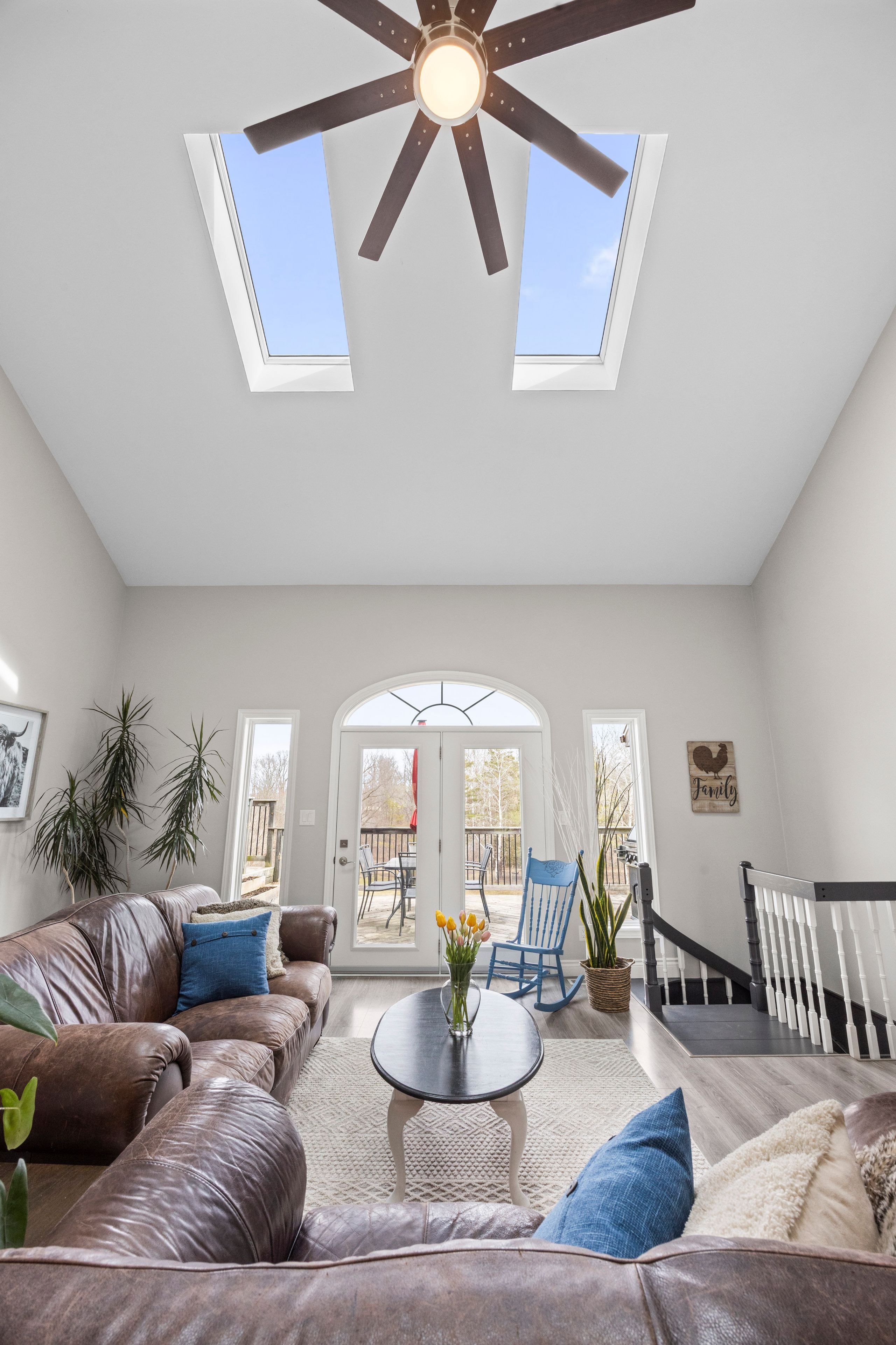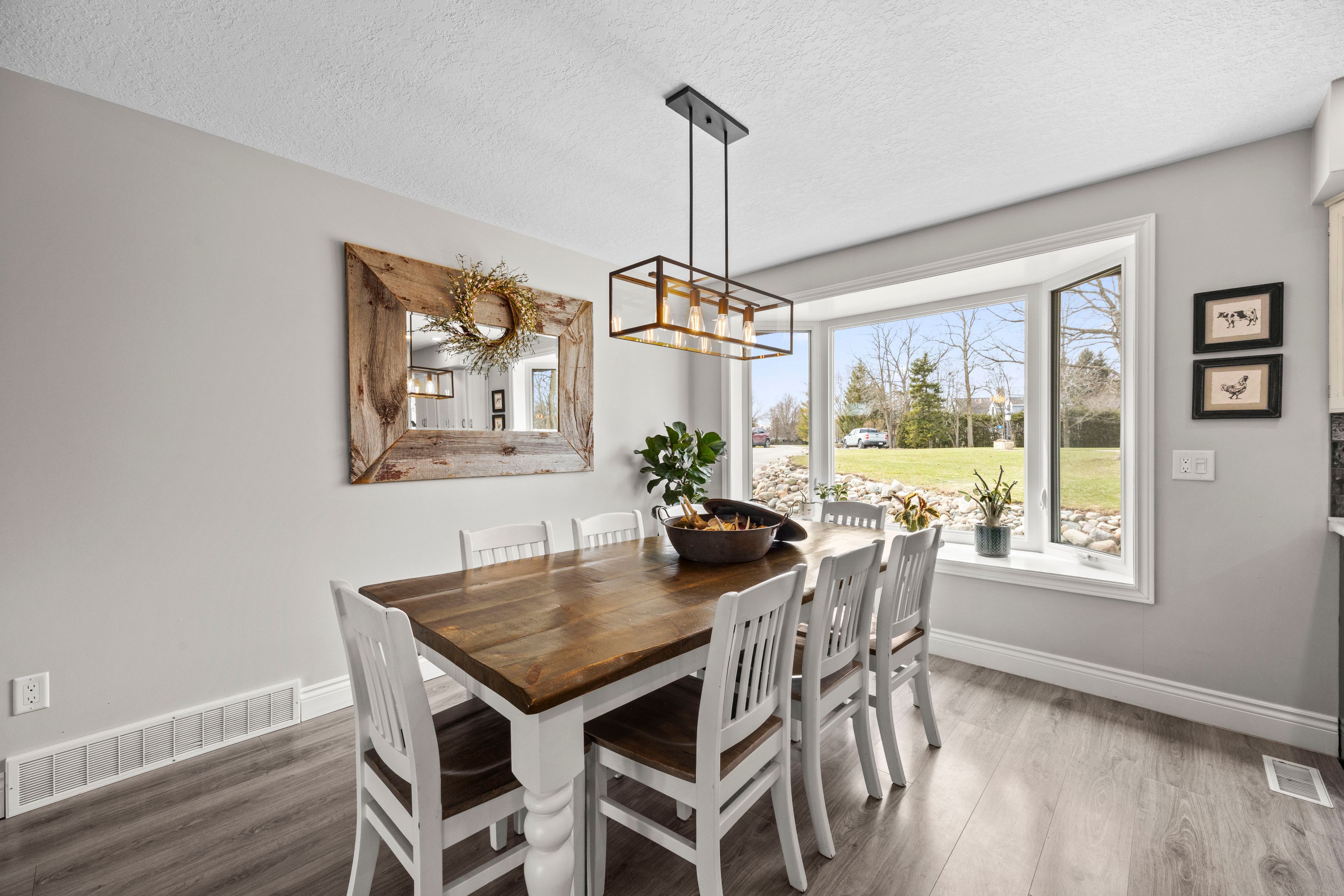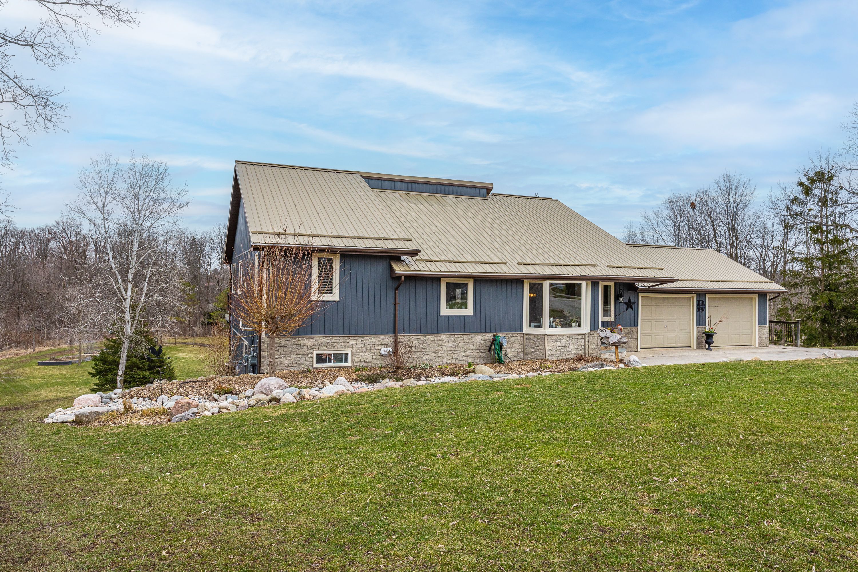 Nestled at the end of a quiet dead-end street in the charming hamlet of nairn, this private 2. 5-acre property offers exceptional peace and tranquility. Enjoy your morning coffee or an evening glass of wine on the expansive back deck or the lower-level covered patio while taking in the serene surroundings. Thoughtfully designed with 3200 sq ft of finished living space, this home features 5 spacious bedrooms, with two conveniently located on the main level and three additional bedrooms on the lower level. The primary suite is a true retreat, complete with a well-appointed 6-piece en-suite featuring a soaker tub and a generous walk-in closet. The heart of the home is an expansive open-concept kitchen, dining, and living area, ideal for both everyday living and entertaining which is enhanced by stunning views of the backyard. Skylights fill the living room with natural light, while a striking spiral staircase leads to the lower level, adding architectural elegance. Enjoy seamless indoor-outdoor living with a walkout to the upper deck from the main living area, as well as a second walkout from the lower-level rec room to the covered patio. Extensively updated in 2017, this home features many significant improvements, including most windows and doors, bathrooms, and hvac, among others. A heated 2-car garage adds comfort and convenience for year-round use. Outdoors, the beautifully landscaped grounds offer a truly unique lifestyle. A custom-built pond provides enjoyment in every season, perfect for summer swimming and winter skating, while garden boxes and chicken coops add to the property's charm. Backing onto open space and a small stream, the setting creates a private, picturesque retreat just minutes from everyday amenities. This home is walking distance to the elementary school, local park and a short 5 minute drive to ailsa craig and 20 minutes to london. This is a rare opportunity to own a one-of-a-kind home where comfort, style, and nature come together.