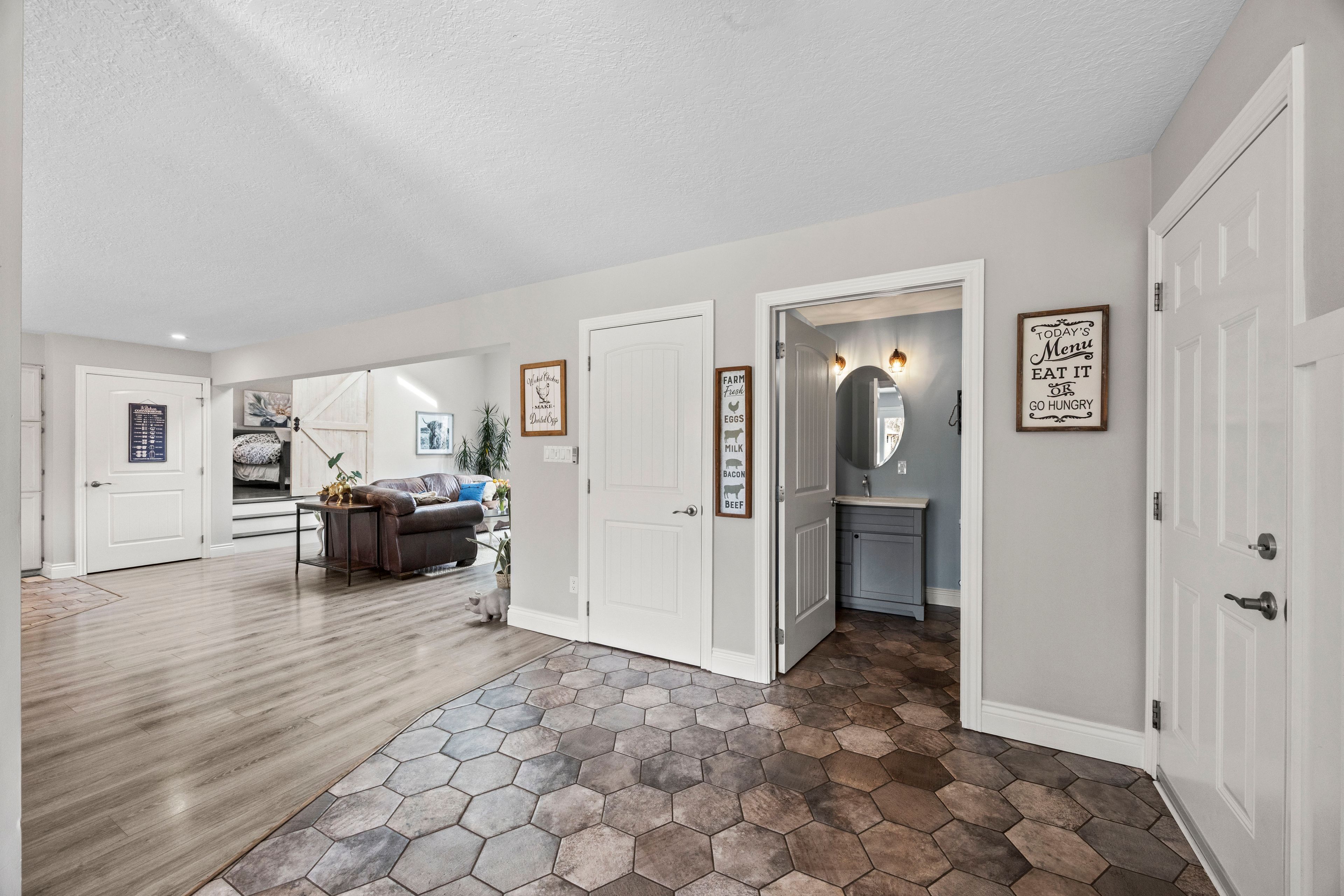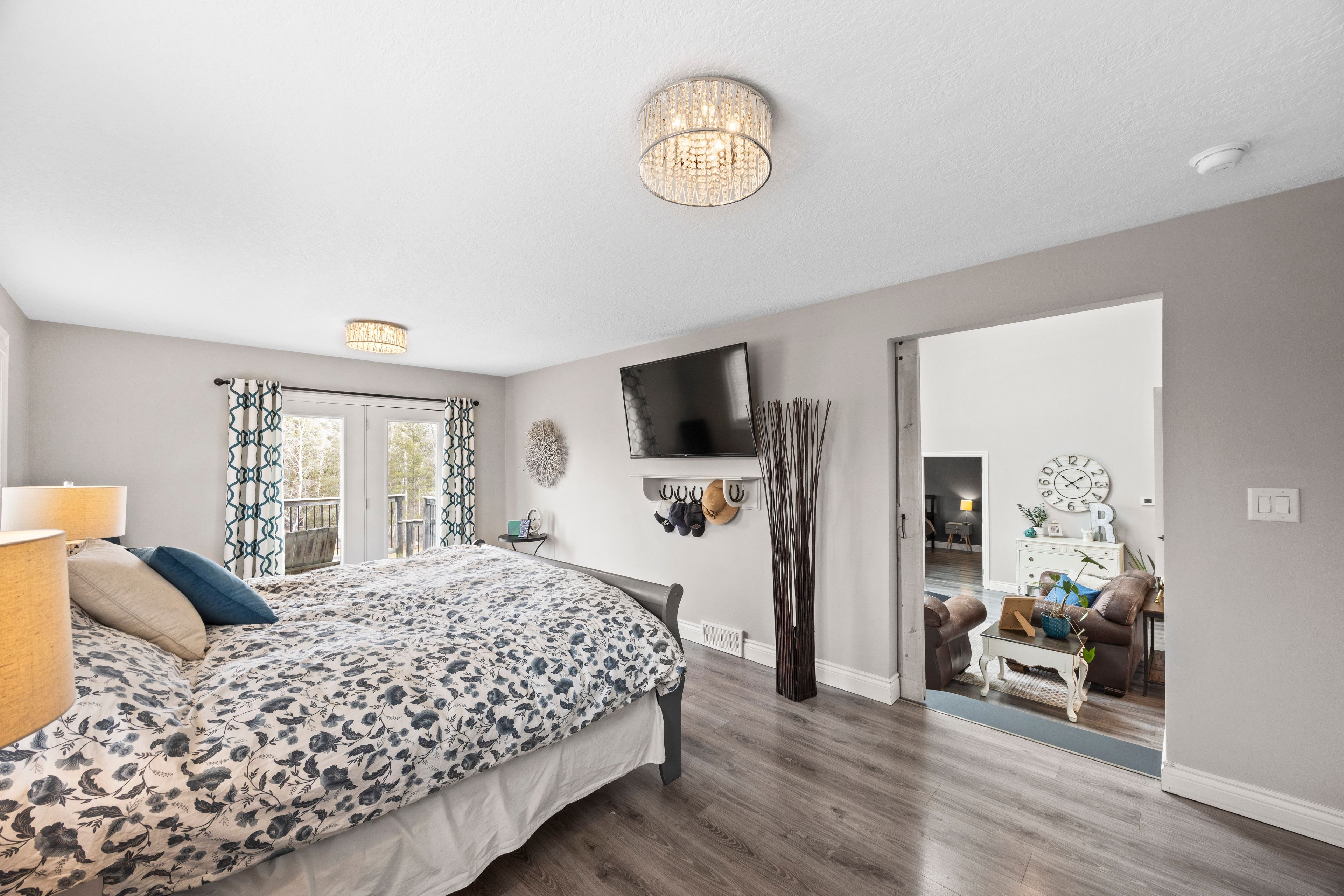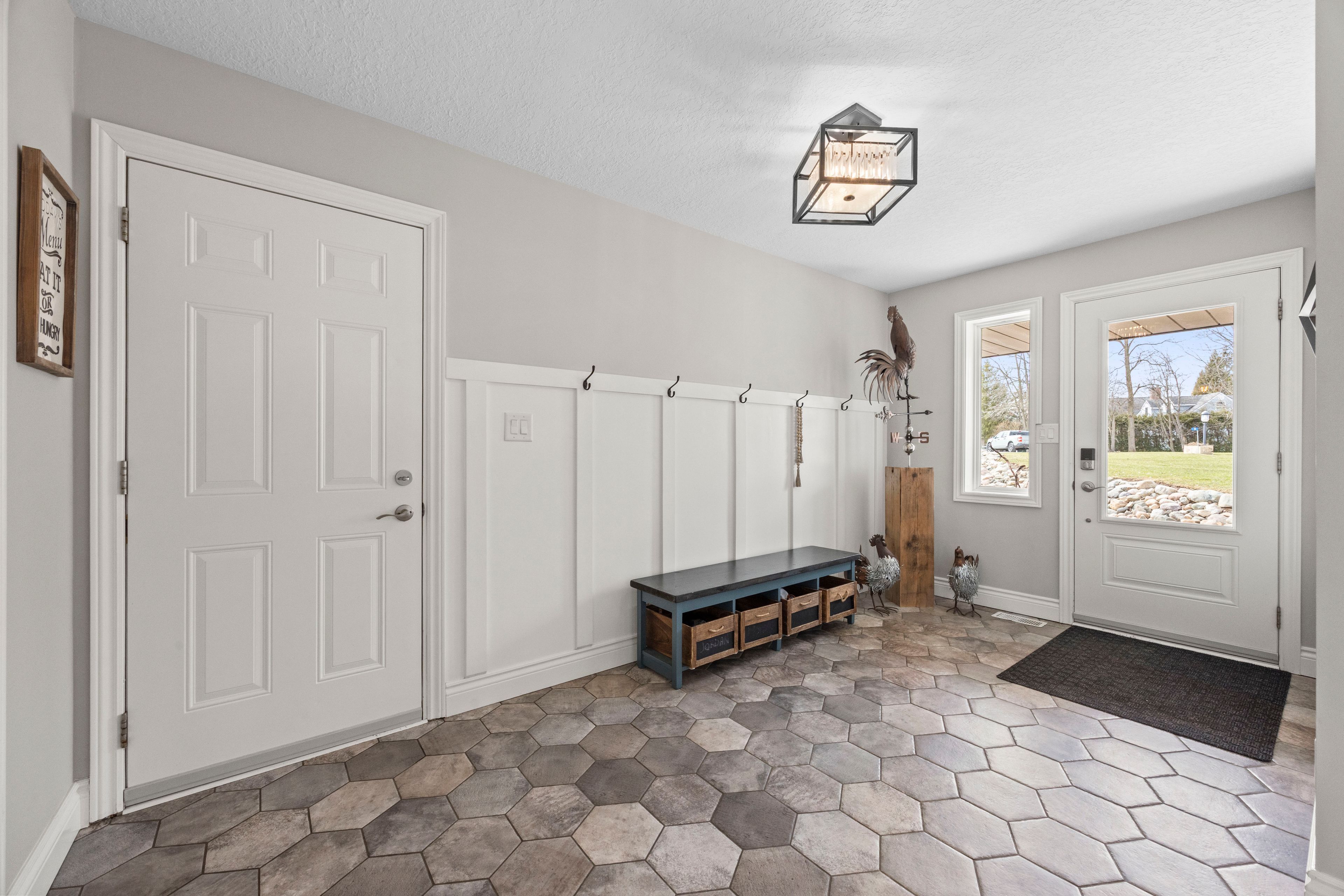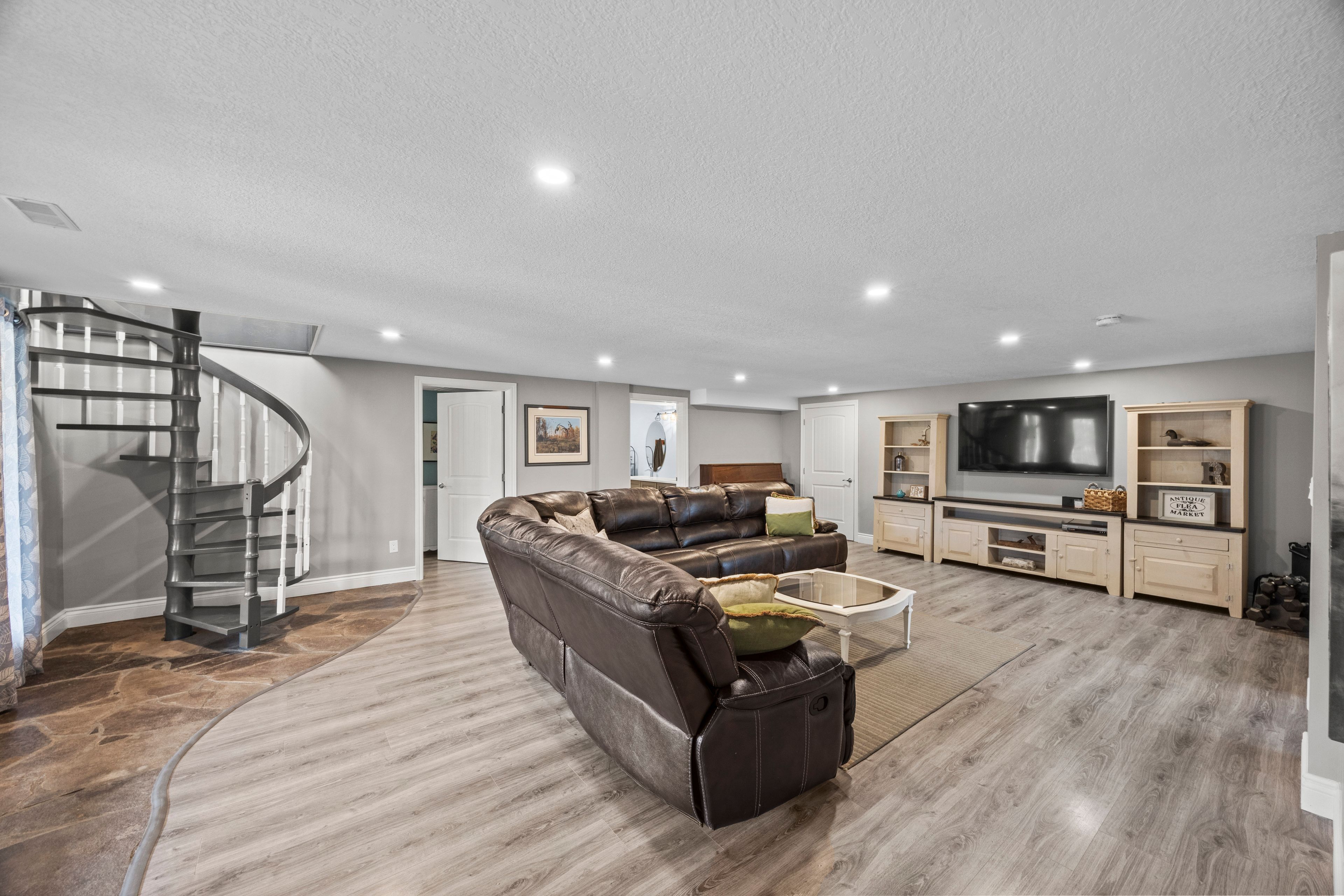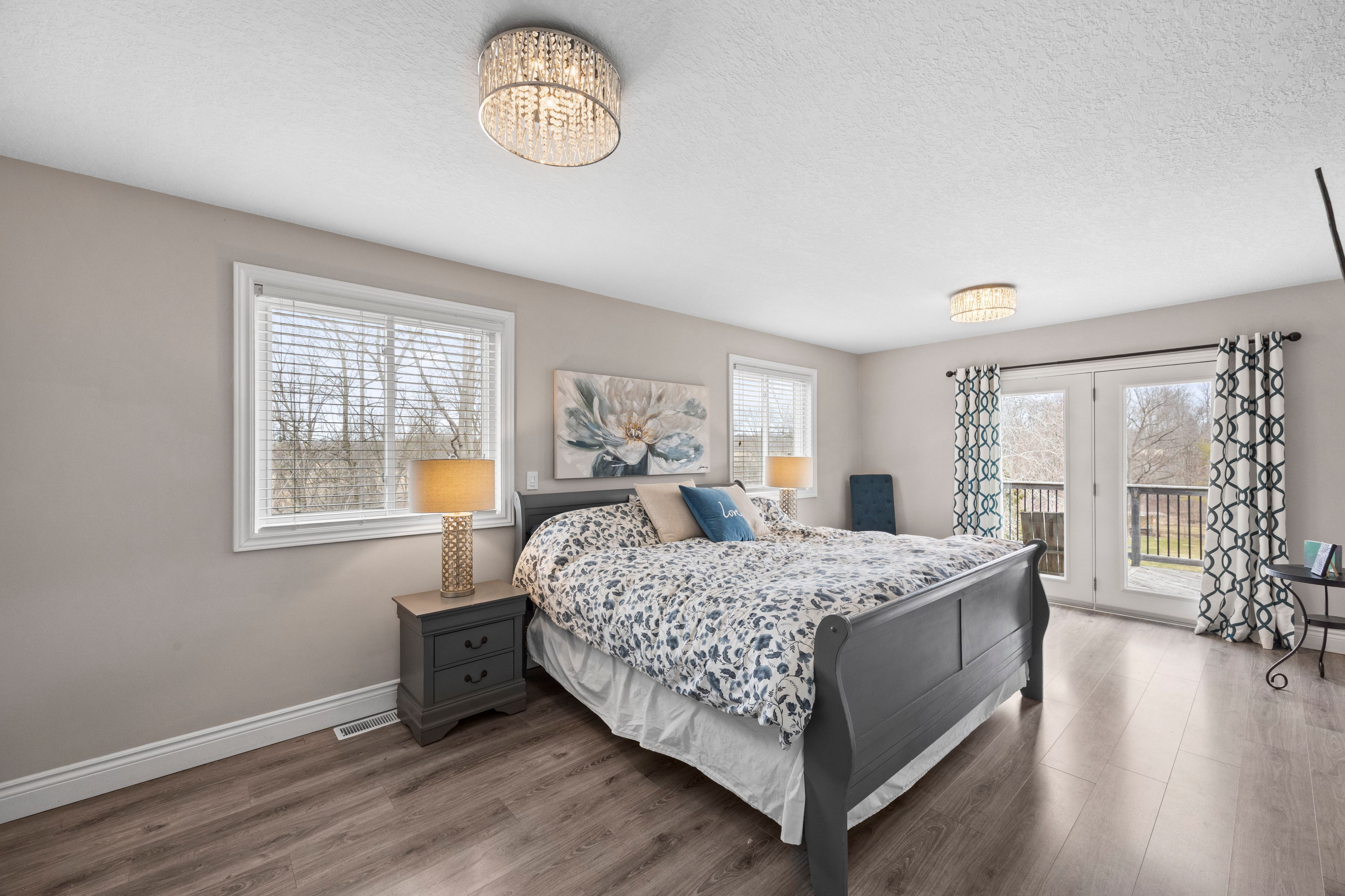 Nestled at the end of a quiet dead-end street in the charming hamlet of nairn, this private 2. 5-acre property offers exceptional peace and tranquility. Enjoy your morning coffee or an evening glass of wine on the expansive back deck or the lower-level covered patio while taking in the serene surroundings. Thoughtfully designed with 3200 sq ft of finished living space, this home features 5 spacious bedrooms, with two conveniently located on the main level and three additional bedrooms on the lower level. The primary suite is a true retreat, complete with a well-appointed 6-piece en-suite featuring a soaker tub and a generous walk-in closet. The heart of the home is an expansive open-concept kitchen, dining, and living area, ideal for both everyday living and entertaining which is enhanced by stunning views of the backyard. Skylights fill the living room with natural light, while a striking spiral staircase leads to the lower level, adding architectural elegance. Enjoy seamless indoor-outdoor living with a walkout to the upper deck from the main living area, as well as a second walkout from the lower-level rec room to the covered patio. Extensively updated in 2017, this home features many significant improvements, including most windows and doors, bathrooms, and hvac, among others. A heated 2-car garage adds comfort and convenience for year-round use. Outdoors, the beautifully landscaped grounds offer a truly unique lifestyle. A custom-built pond provides enjoyment in every season, perfect for summer swimming and winter skating, while garden boxes and chicken coops add to the property's charm. Backing onto open space and a small stream, the setting creates a private, picturesque retreat just minutes from everyday amenities. This home is walking distance to the elementary school, local park and a short 5 minute drive to ailsa craig and 20 minutes to london. This is a rare opportunity to own a one-of-a-kind home where comfort, style, and nature come together.