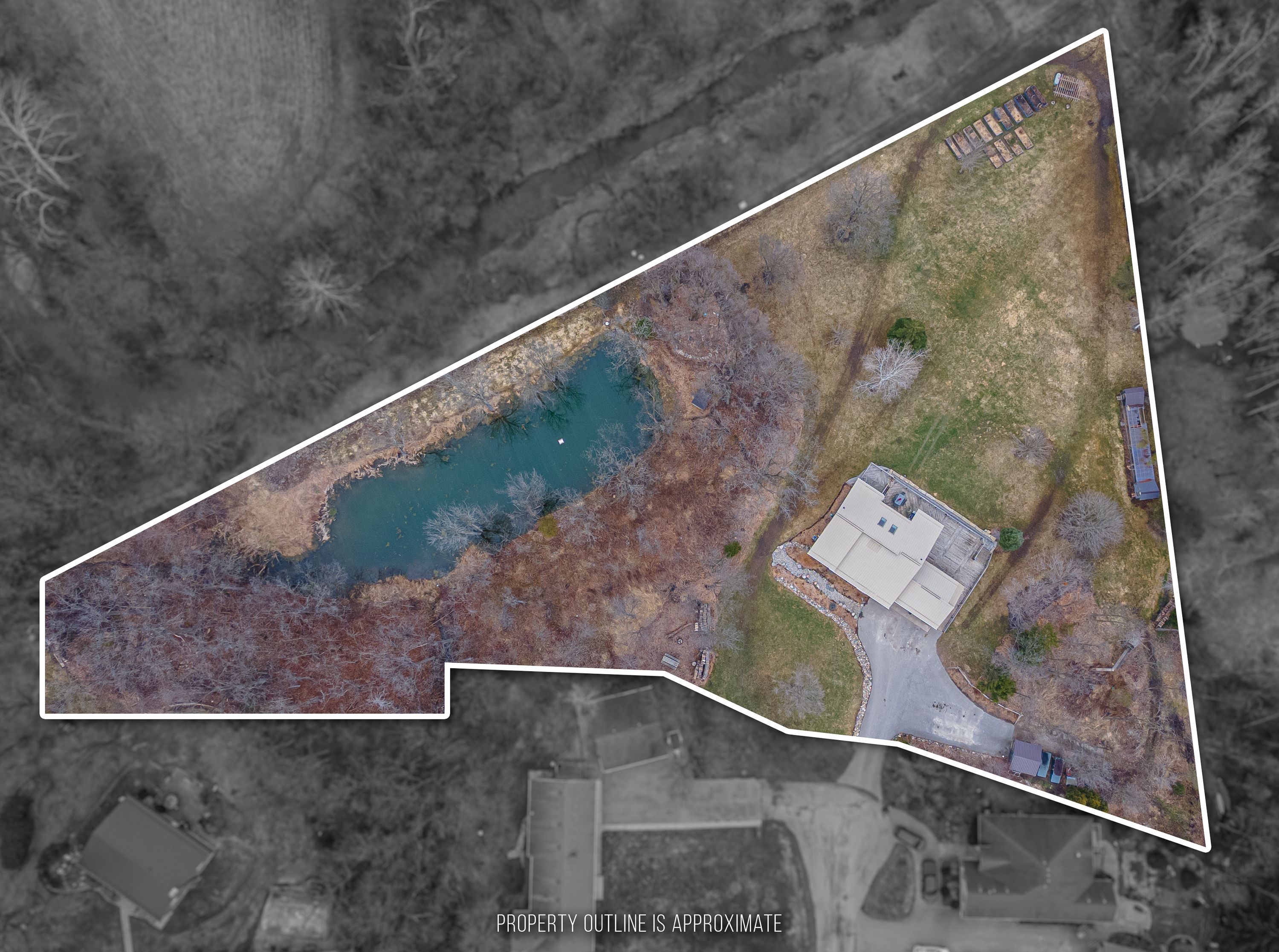 • Private 2.5-acre property at the end of a quiet street.