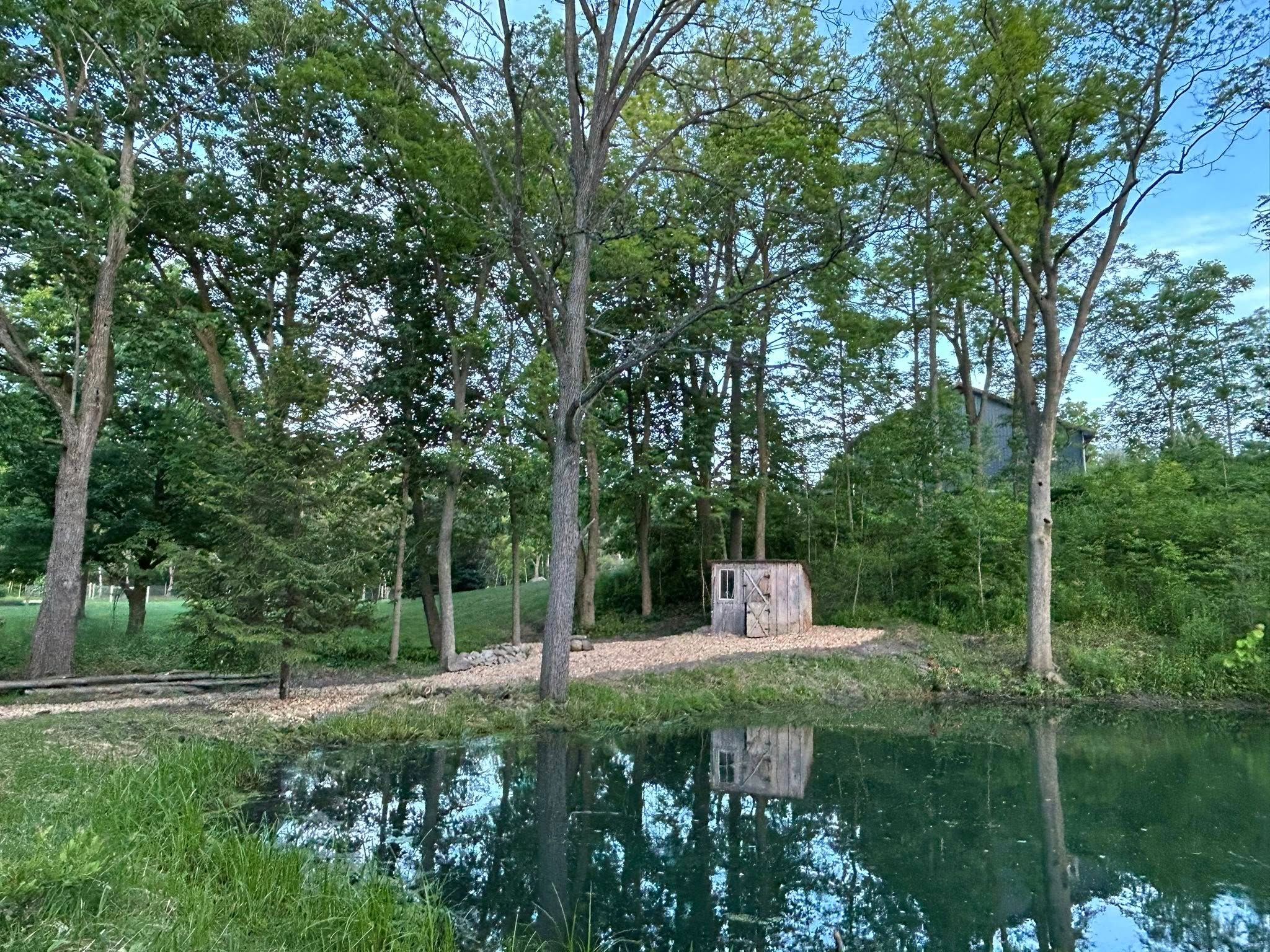 • Custom-built pond, garden boxes, and chicken coops enhance outdoor charm.