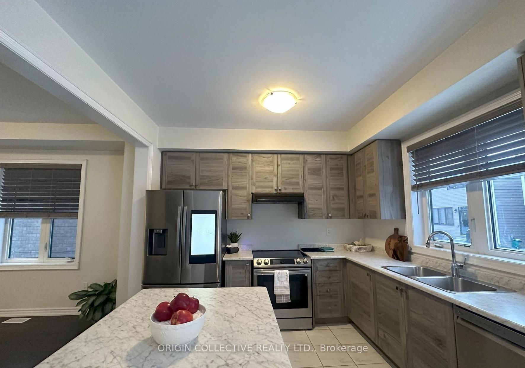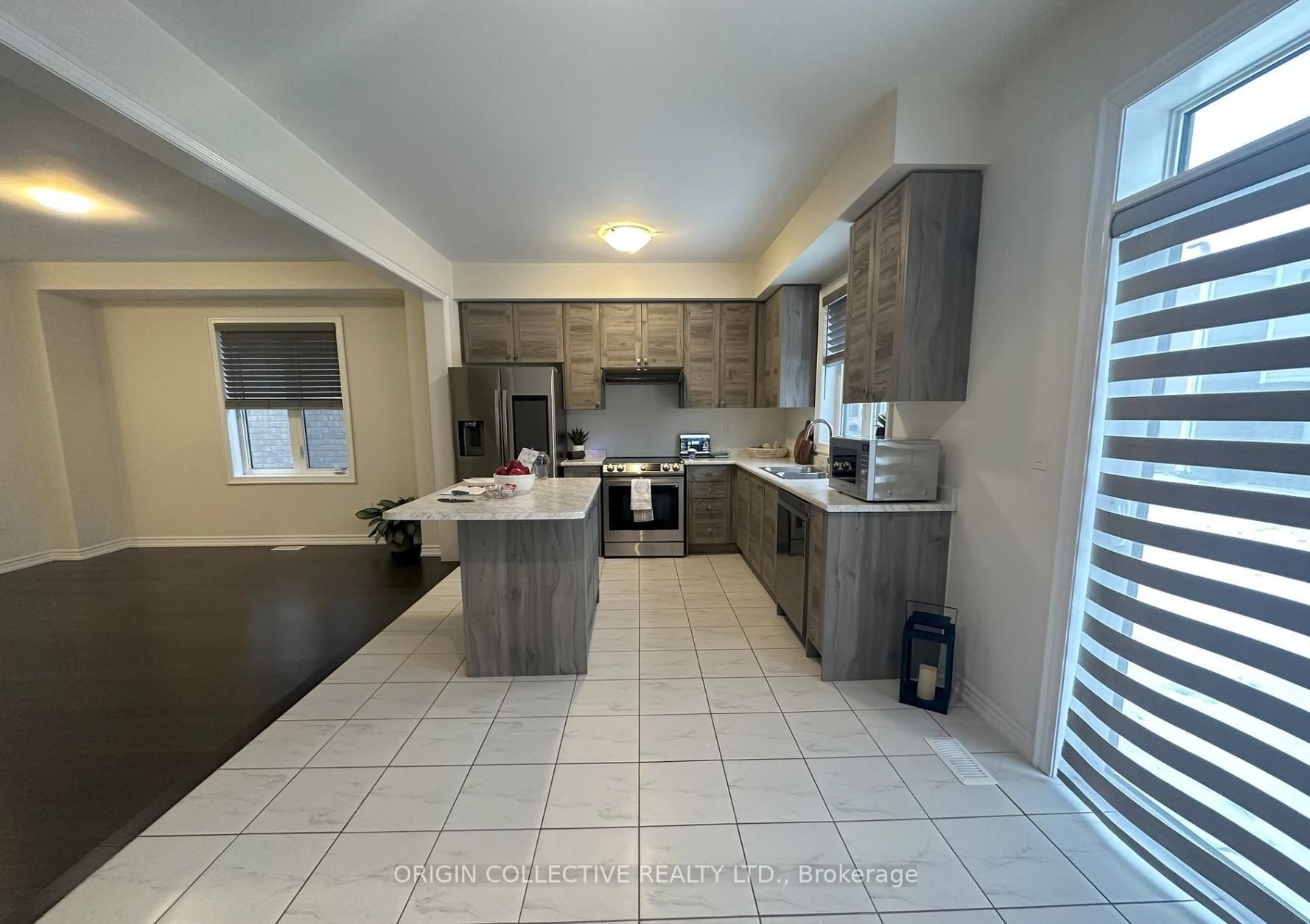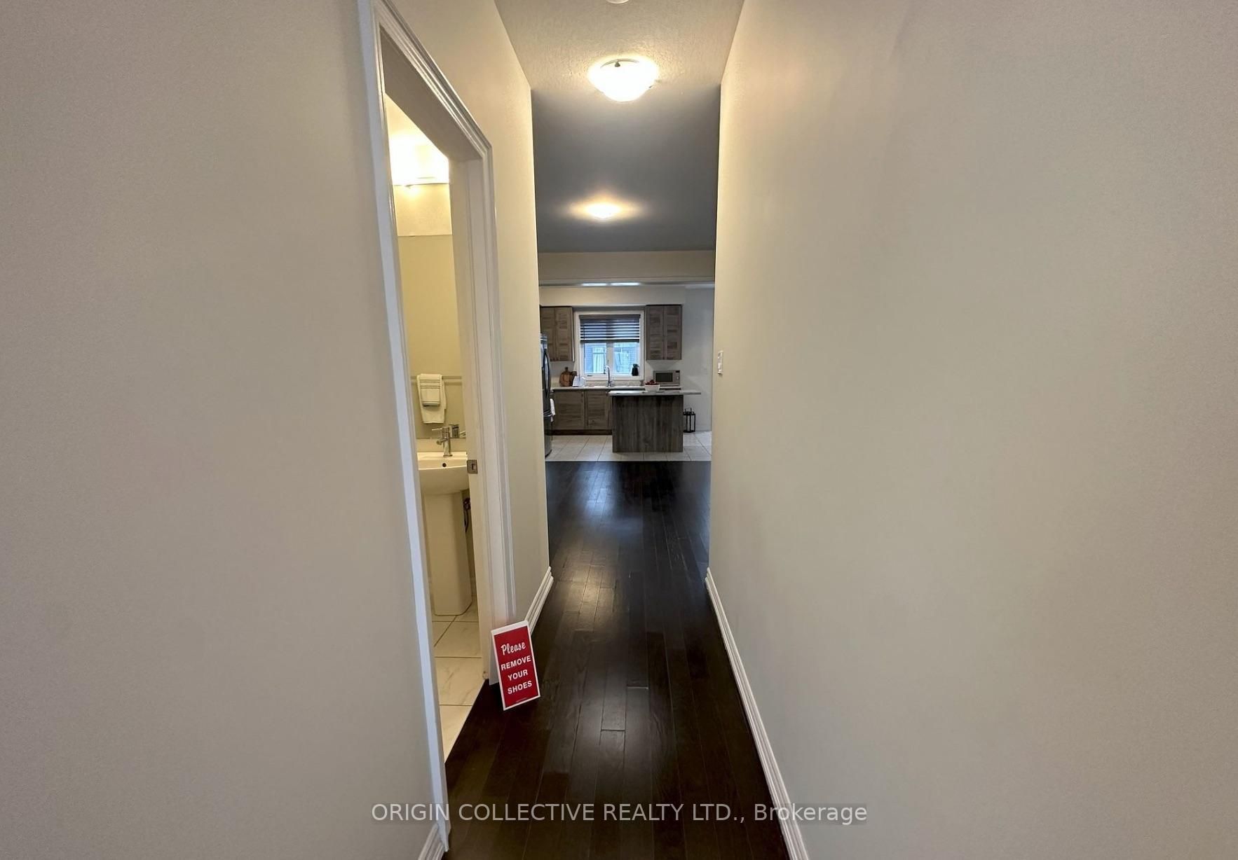 Bright and beautifully maintained 2-year-old home in the family-friendly west brantford area of brantford, offering 3 bedrooms and 3 bathrooms with a welcoming front porch and double-door entry. The open-concept main floor features a spacious great room that flows seamlessly into the dining area with views of the backyard, perfect for entertaining. The modern chef's kitchen includes a center island, breakfast bar, stainless steel appliances, and stylish cabinetry. Upstairs offers convenient second-floor laundry and three generously sized bedrooms, including a primary suite with a walk-in closet and 4-piece ensuite. Upgrades include 9-ft ceilings, oak staircase with wood pickets, and dark-stained hardwood flooring on the main and second levels. The basement offers excellent potential with high ceilings, 200-amp service, bathroom rough-in, water purification system, and a separate side entrance, ideal for a future in-law suite or income opportunity. Conveniently located close to schools, parks, shopping, and quick access to highway 403, and just minutes from costco.