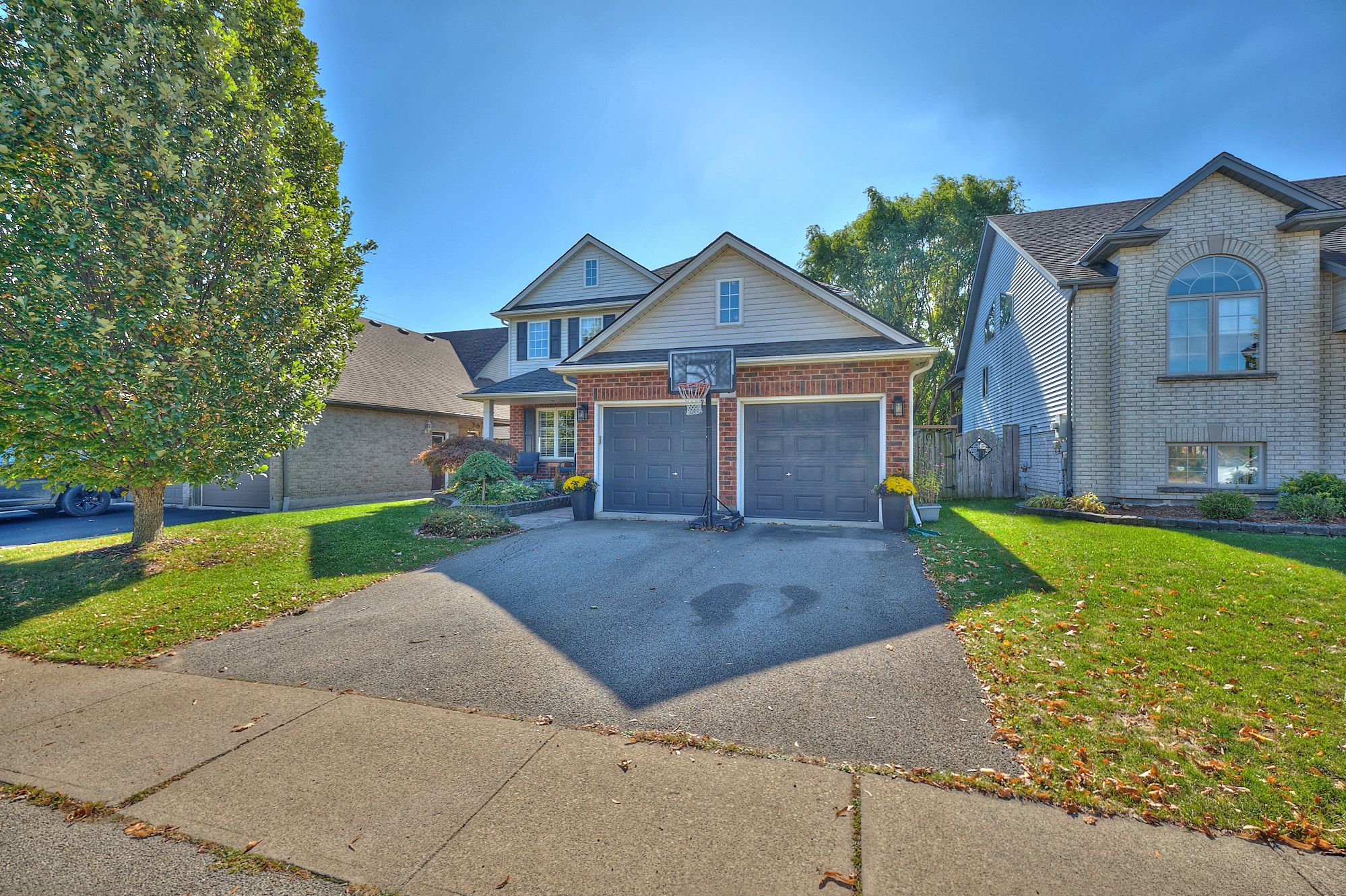 Executive 4 bedroom, 3. 5 bath home with double garage and a bonus 2nd kitchen in the basement, all located in a highly sought after location. This stunning home offers hardwood flooring, a large living room with a cozy gas fireplace plus a bonus main floor family room, a formal dining room with bay window, and a well-appointed kitchen with breakfast bar and large dinette area with double patio doors that lead to the private and and fully fenced backyard with interlock patio. A convenient 2pc bath for guests, and main floor laundry with inside access to the garage completes the main level. Upstairs you'll enjoy 4 generous sized bedrooms including a primary suite with a walk-in closet and 4pc ensuite with a large jetted bath tub and separate shower. Plenty of additional living space in the fully finished basement featuring a large open concept rec room with cork flooring and built-in surround sound speakers, a fully updated 3pc bath with oversized glass and tile shower, a 2nd kitchen with quartz counters, an office, and plenty of extra storage space! Other updates and features include: central vac, custom california shutters, furnace and a/c updated in approx 2021, roof shingles updated in approx 2018.