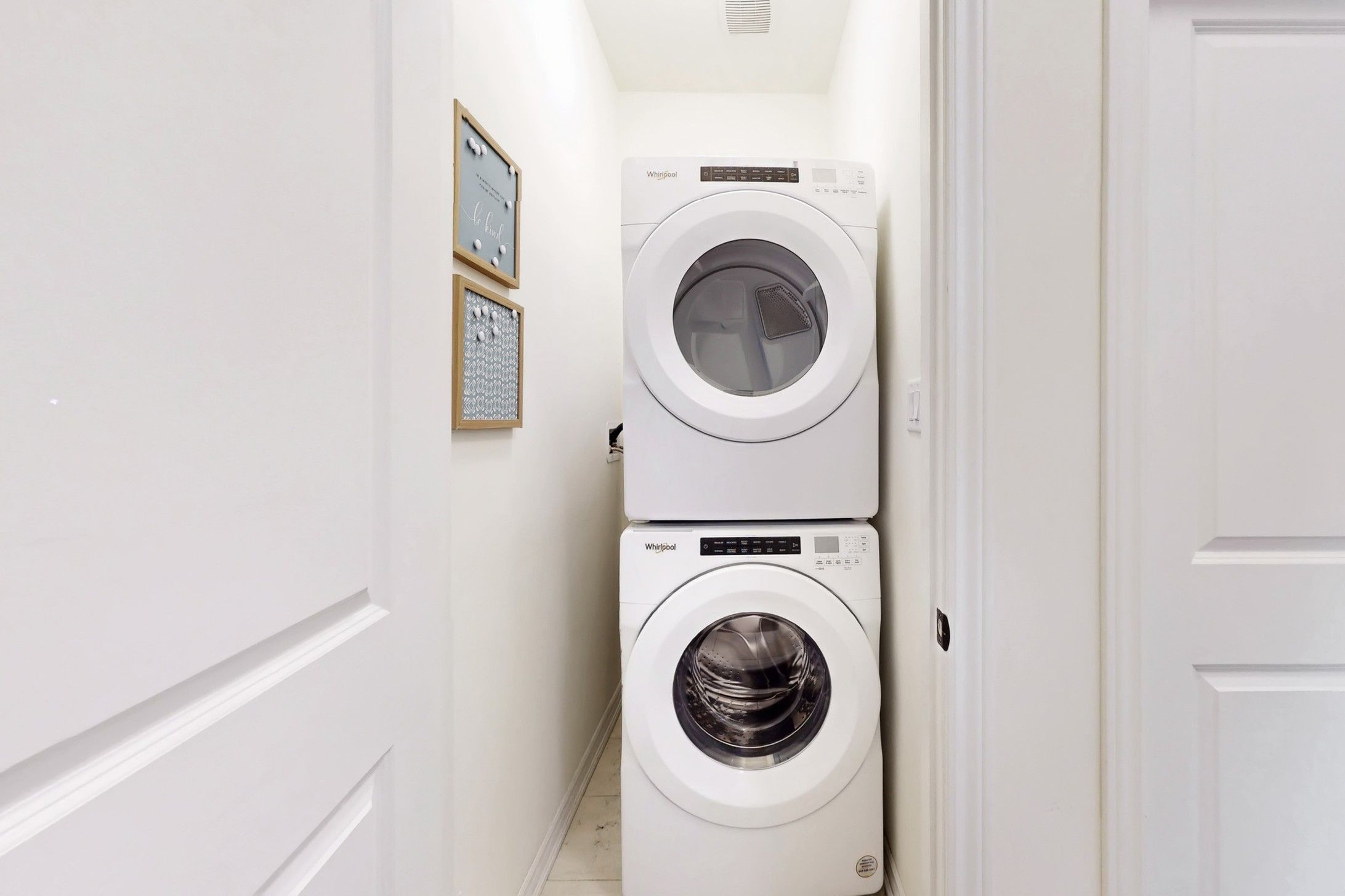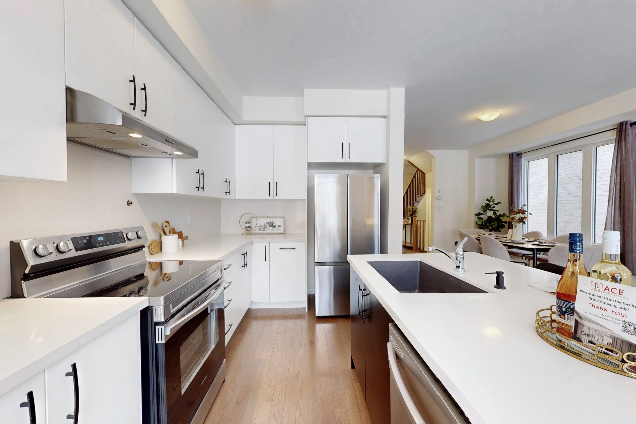 • Stunning kitchen with quartz countertops and stainless steel appliances.