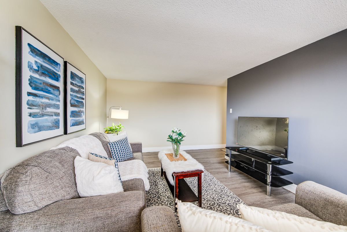 • Generous living room and dinette with a covered balcony overlooking greenspace.