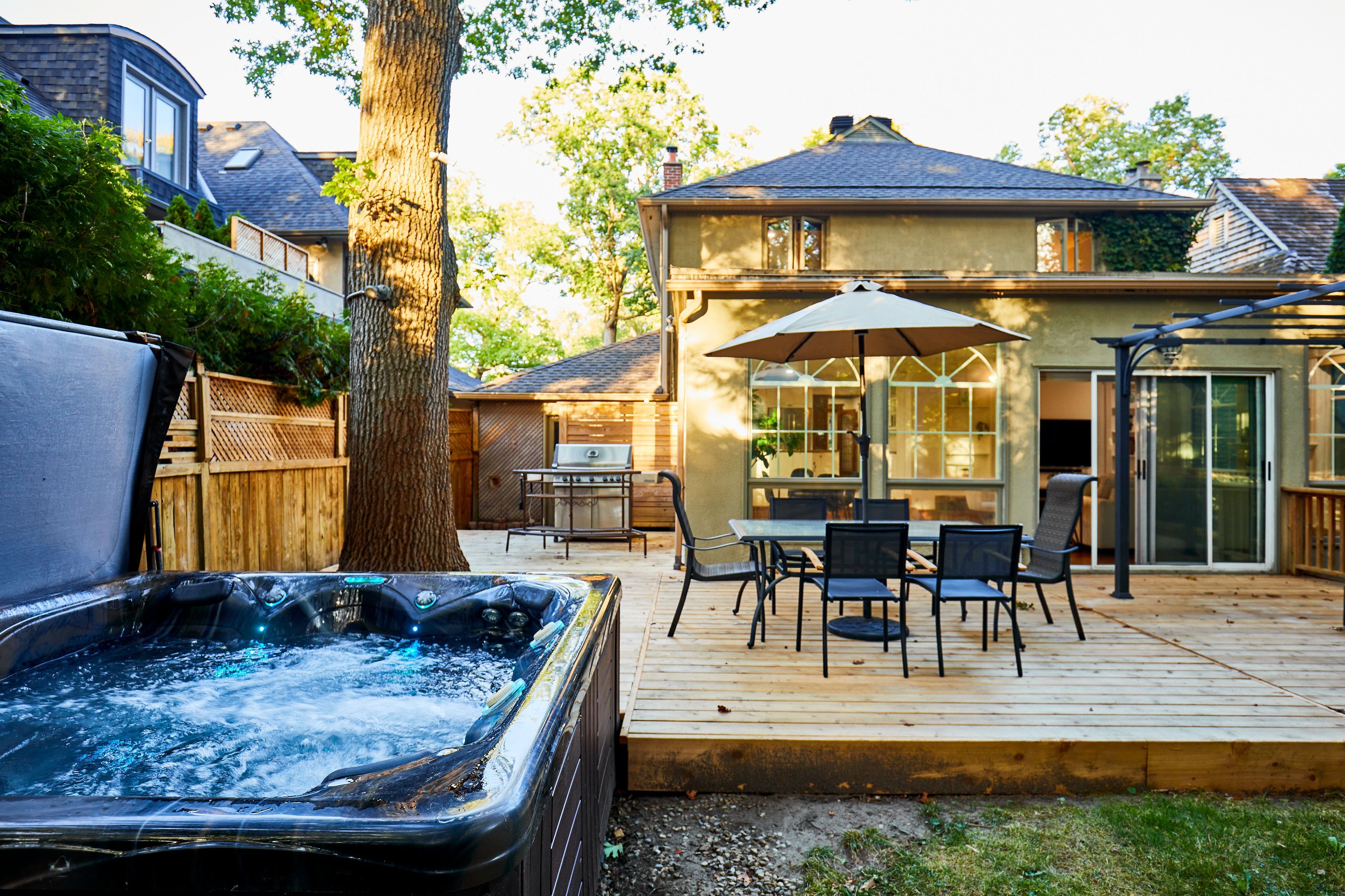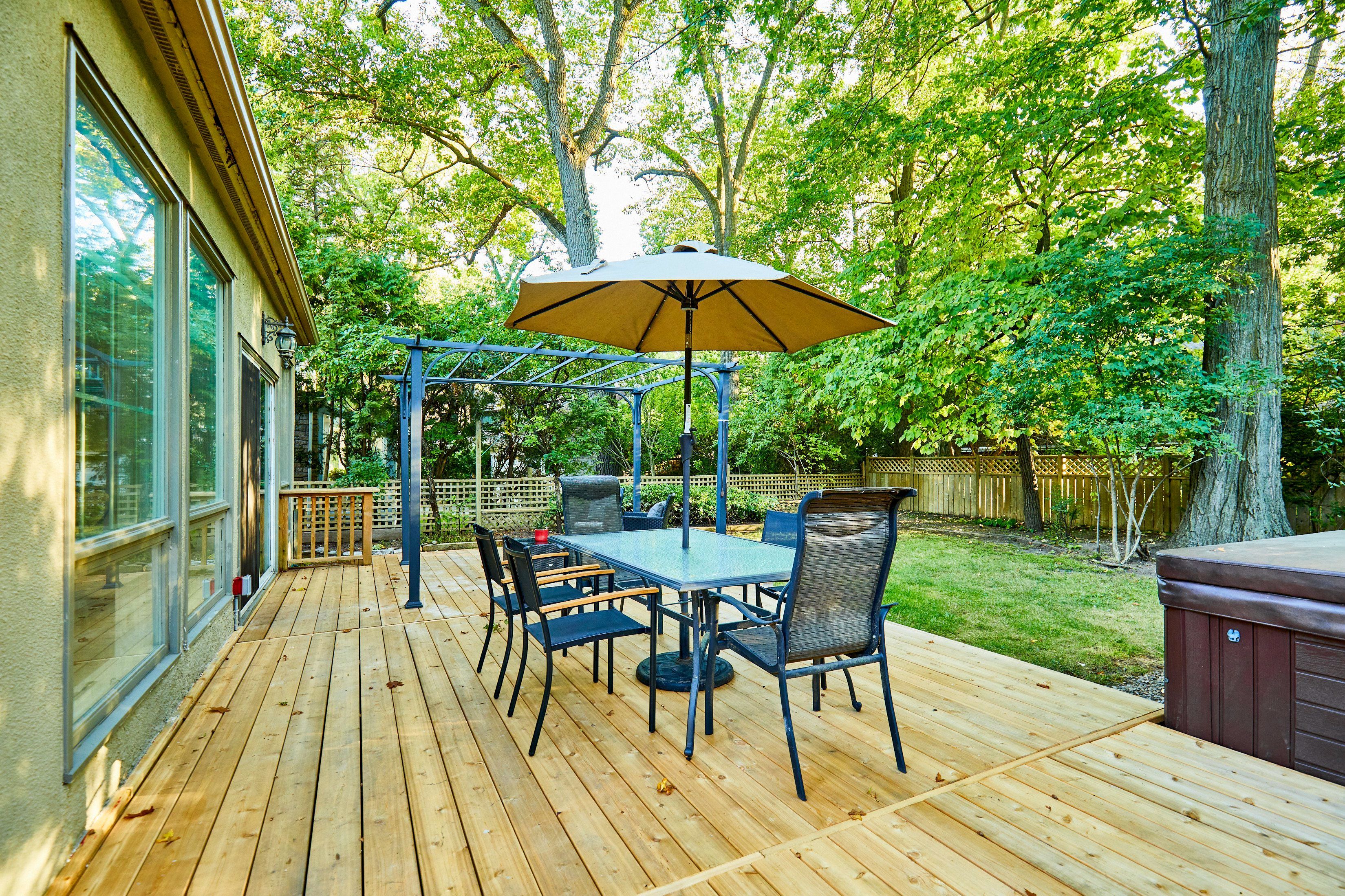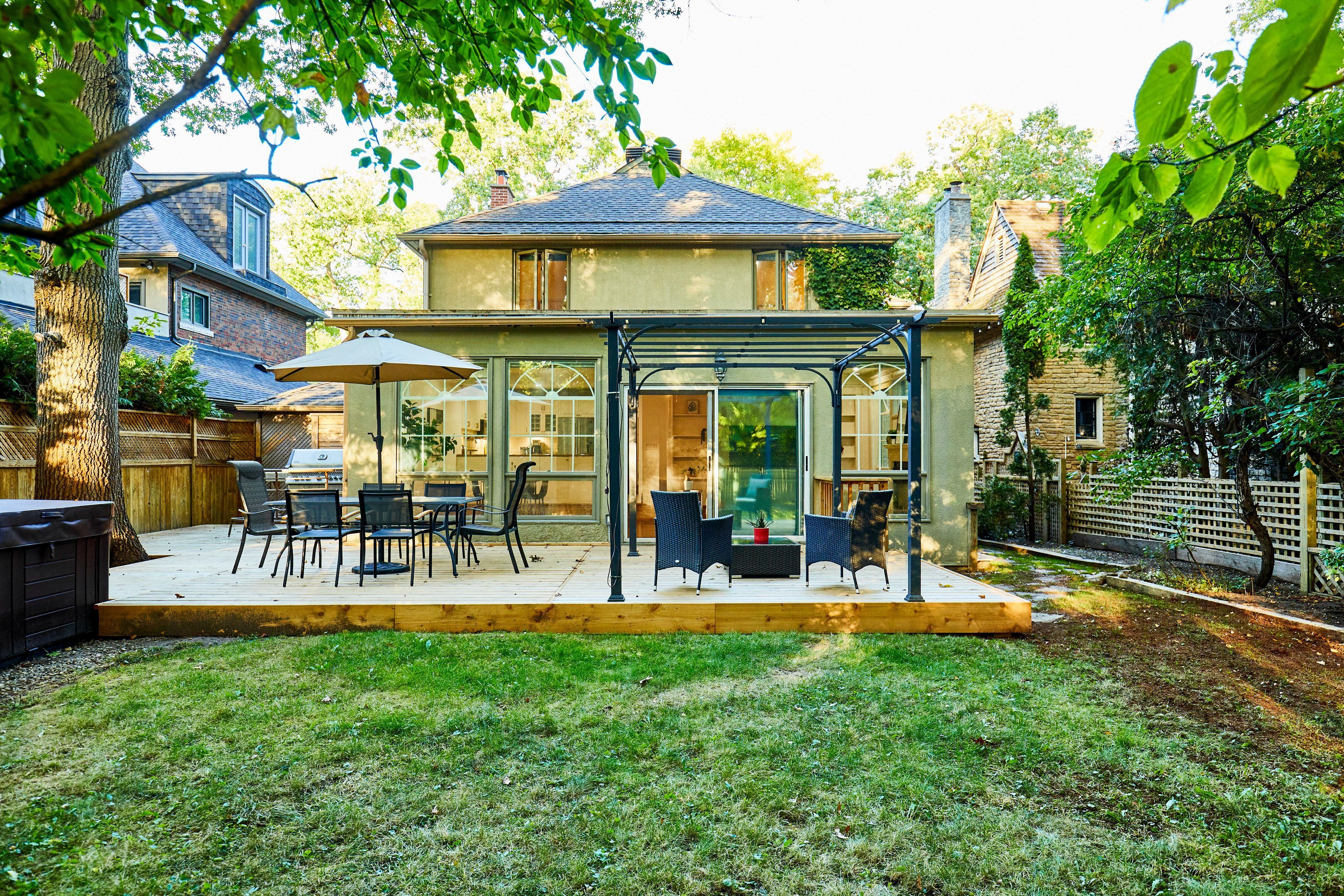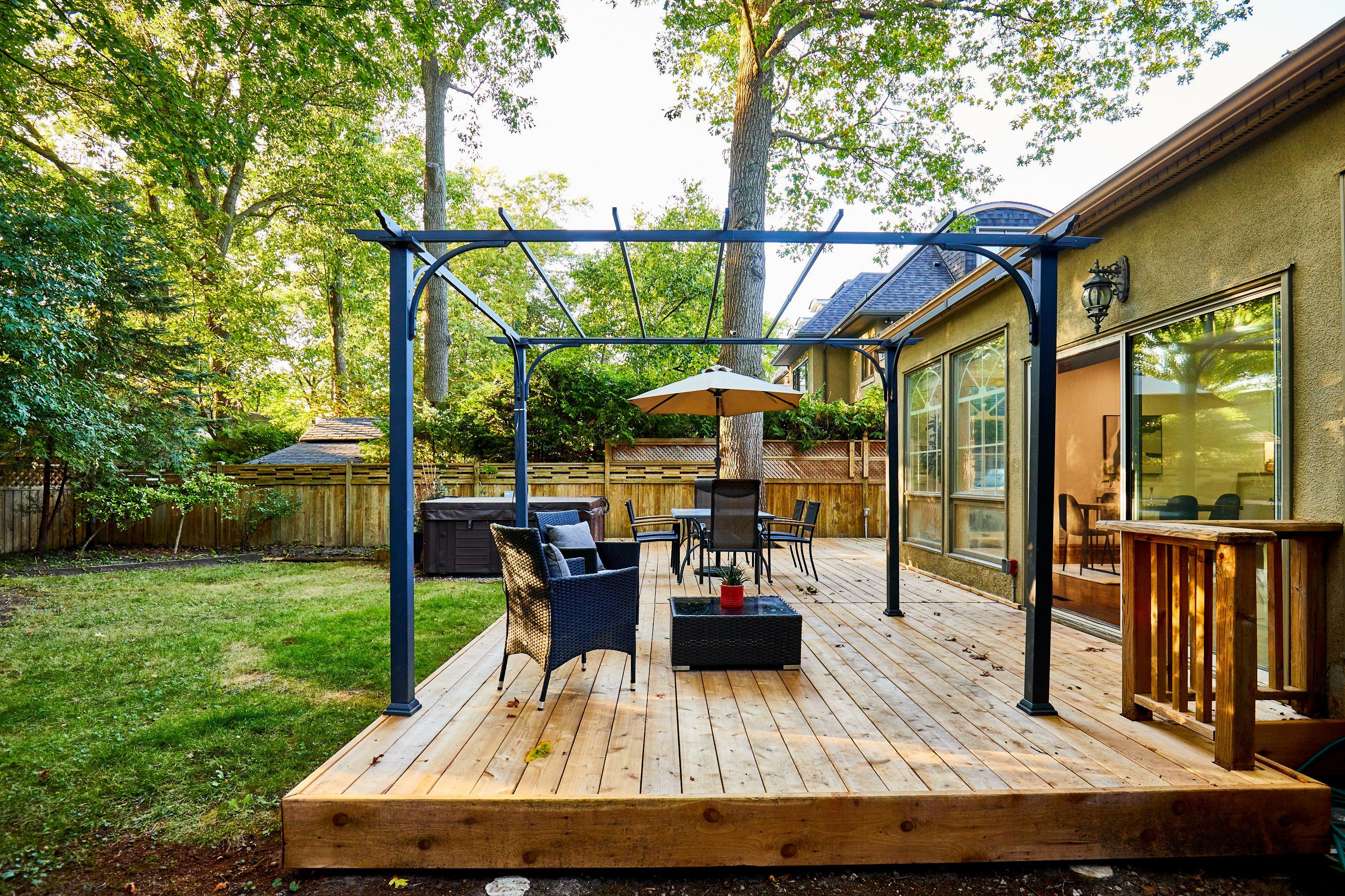 Welcome to 4 baby point road - timeless elegance in baby point! Nestled on a quiet cul-de-sac in one of toronto's most prestigious neighbourhoods, this classic centre-hall residence blends timeless character with modern comfort. Surrounded by mature trees and landscaped gardens on a 50 x 140 ft lot, the home offers 4 bedrooms, 4 bathrooms, and 4 fireplaces. The main floor is designed for both daily living and entertaining. A sunken living room with bay windows, a west-facing picture window, and a gas fireplace creates an inviting gathering space. The private office/den, with a wood-burning fireplace and custom built-ins, is ideal for work or quiet reading. At the heart of the home, the chef-inspired kitchen with new stainless steel appliances opens to a bright family room and casual dining area wrapped in windows with a conservatory feel. Walk out to a new deck (2025) with a four-season hot tub and enjoy the west-facing garden oasis. Upstairs, the primary suite offers a serene escape with a gas fireplace, spa-like ensuite, california closets, and treetop views. Three additional bedrooms provide generous proportions, garden outlooks, and ample storage. The finished lower level adds versatility with a large games/media room, built-in shelving, 3-piece bath, laundry, cold storage, and a side entrance - perfect for nanny or in-law suite potential. Additional highlights include a tandem garage suited for cars, a studio, or a workshop, a private interlocking brick driveway, and professionally landscaped gardens. Just steps to the humber river, trails, and ttc, this home is minutes from baby point, bloor west village, and the junction. Residents enjoy access to the exclusive baby point club with tennis, lawn bowling, and year-round community events. With excellent schools, quick highway and airport access, and an unparalleled setting, this is a rare opportunity to own a forever home in baby point.