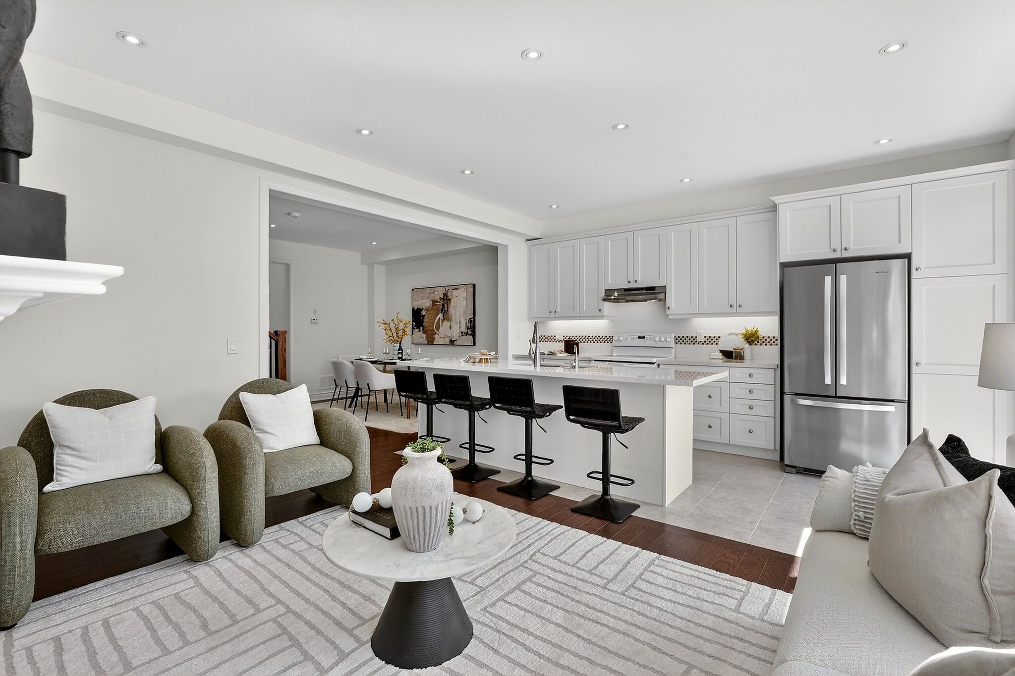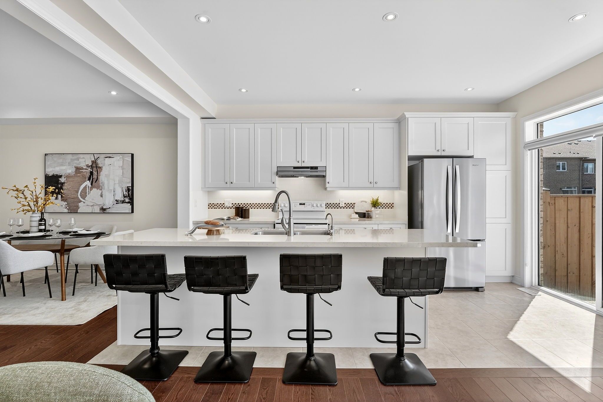 Pristine condition. Basement apartment w/ kitchen. Park & school adjacent. Welcome to 4 beasley grove, a never-lived-in freehold townhome in the heart of ancaster. Thoughtfully designed with an open-concept layout, the main living and dining areas are filled with natural light, enhanced by pot lights and a fresh, neutral palette. The kitchen blends style and function with quartz countertops, stainless steel appliances, and seamless flow, ideal for both everyday living and entertaining. Upstairs, you'll find three spacious bedrooms, including a primary retreat featuring a walk-in closet and a spa-inspired 5-piece ensuite with double sinks, a soaker tub, and a glass stand-up shower. The added convenience of upper-level laundry makes daily living effortless. The finished basement offers incredible flexibility, complete with its own kitchen, laundry, and a 3-piece bathroom, perfect for extended family, an in-law suite, or income potential. Step outside to enjoy a fully low-maintenance front and backyard, designed for easy living with no upkeep required. A single-car garage and two-car driveway provide ample parking. Ideally located directly across from a park and elementary school, this home delivers both lifestyle and convenience in one of ancaster's most sought-after communities. Modern, move-in ready, and exceptionally positioned, this is a home you won't want to miss.