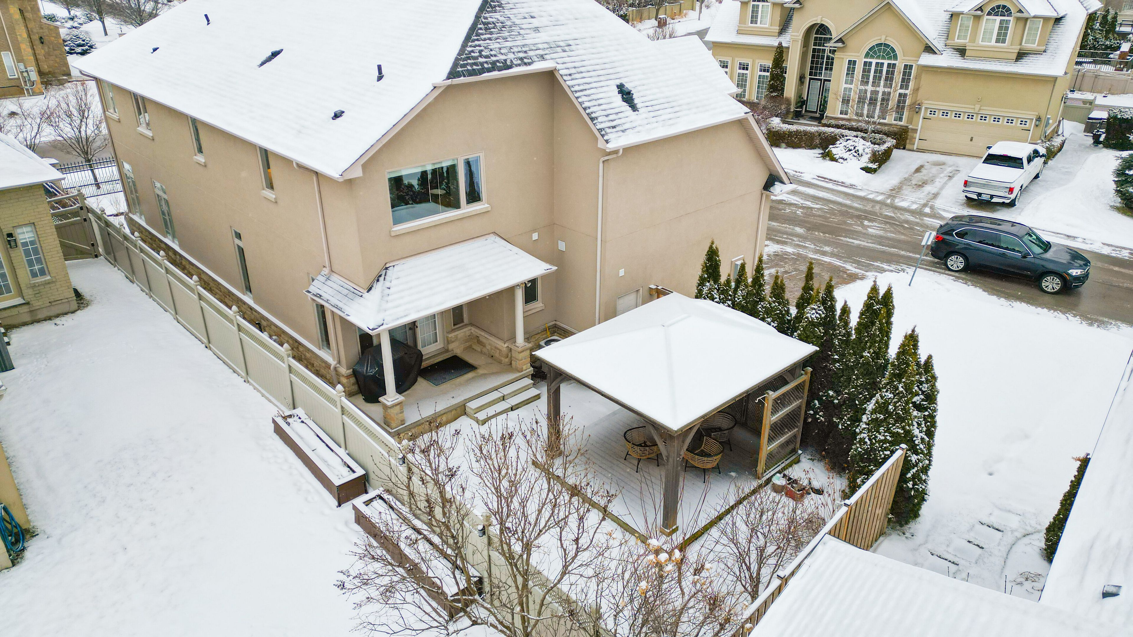 Welcome to 4 berkshire place, a spectacular custom landmart-built family home situated on a premium corner lot on one of meadowlands' most exclusive gated cul-de-sacs. This stately residence offers exceptional privacy, security, and curb appeal with its elegant royal stucco and stone exterior finishes. An impressive grand foyer with a dramatic double-height ceiling sets the tone for the luxury found throughout, while tons of large windows throughout the home fill the space with natural light. The main floor features expansive principal rooms including a separate living room, family room, formal dining room, and a private office with high ceilings and crown moulding-perfect for both everyday living and upscale entertaining. The gourmet kitchen boasts extensive cabinetry, a large working island, stainless steel appliances, and double patio doors leading to the backyard. Hardwood flooring flows throughout, complemented by a beautiful fireplace . Upstairs offers four spacious bedrooms. Three bedrooms feature private ensuites, while the fourth is serviced by a separate full washroom just outside the room. Two bedrooms include their own private office or study space within the room, and all bedrooms offer walk-in closets. The luxurious primary suite features a spa-inspired 5-piece ensuite with dual sinks and a custom-designed walk-in closet with built-in cabinetry. The fully finished basement includes two additional bedrooms and a full washroom, providing excellent space for extended family or guests, along with a separate laundry area. The home also offers two separate laundry areas for added convenience. Set on an impressive 112-foot-wide lot, the exterior is complete with professional stonework, an automatic irrigation system, covered concrete patio with bbq setup, gazebo, huge side yards, and a spacious driveway. Offering close to 5,000 sq. Ft. Of total living space, this exceptional home delivers luxury, space, and functionality in a highly sought-after location.