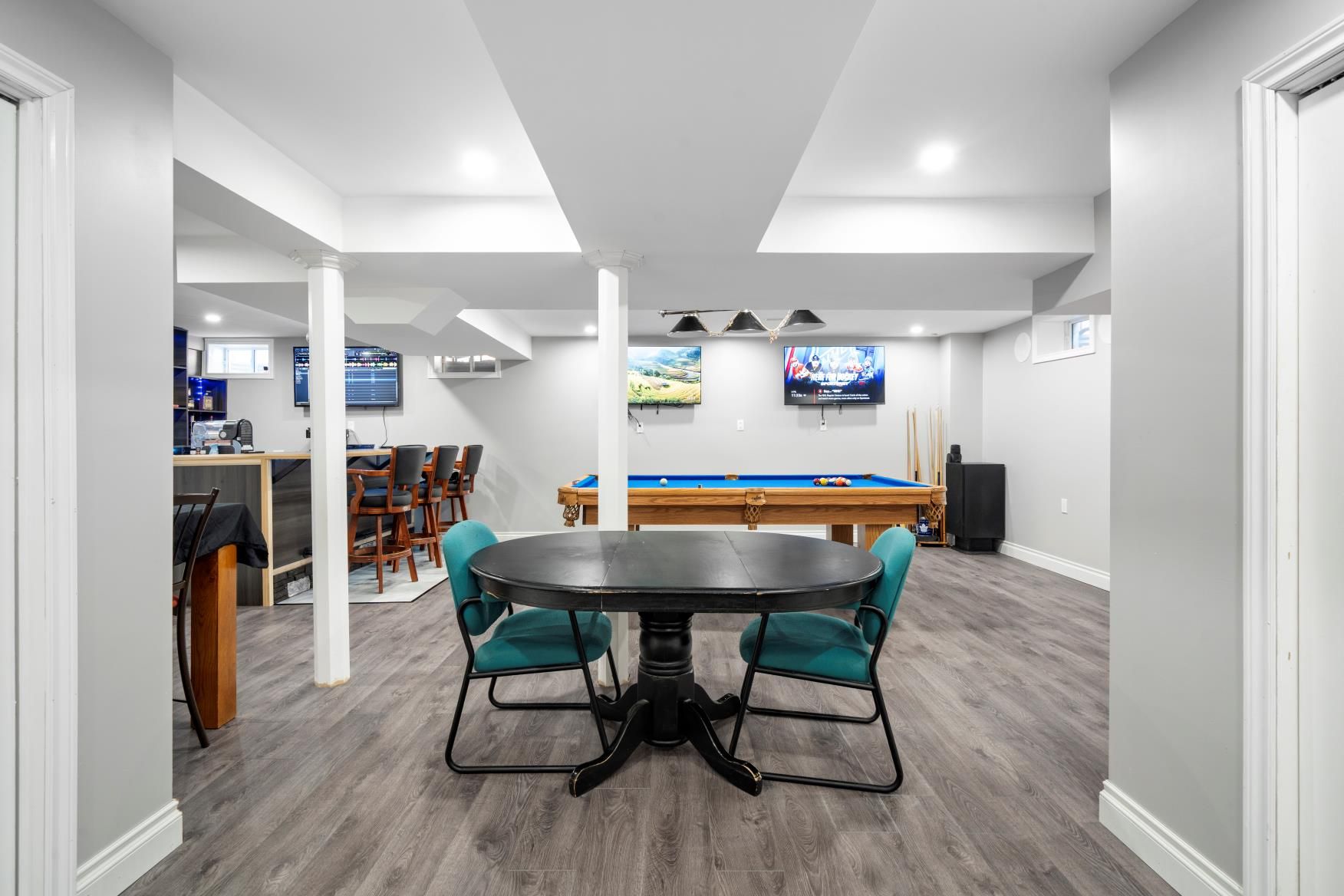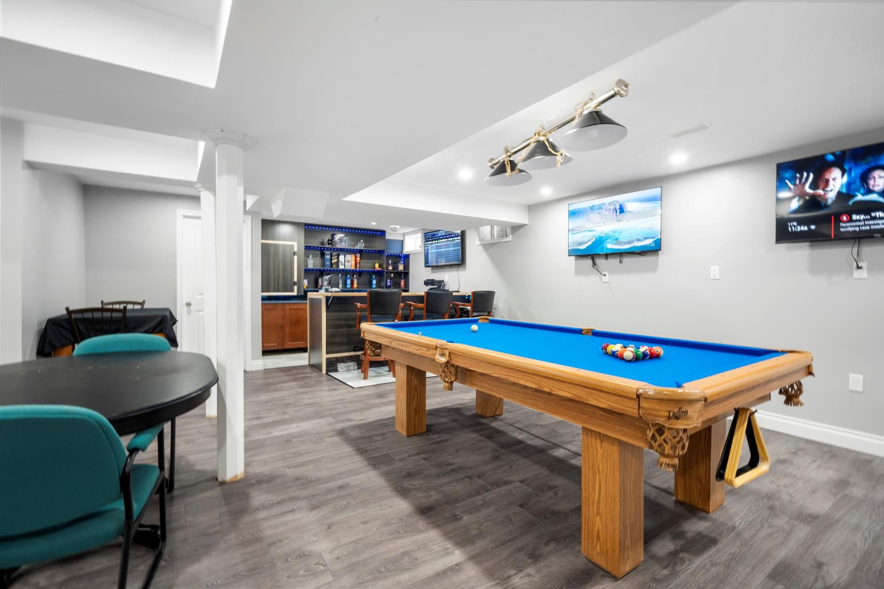 • Finished basement featuring a rec room, wet bar, and extra storage.
