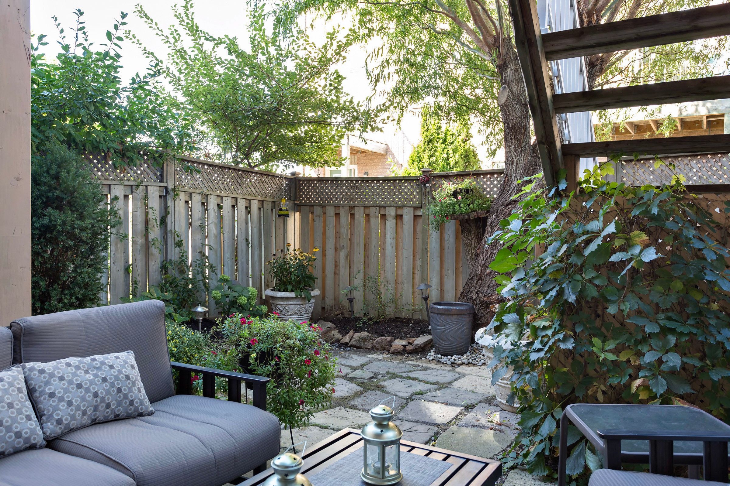 Rare offering! A fully bricked, semi-detached 3 storey freehold home with no condo fees, offering nearly 2,000 total sq ft of refined living space. This elegant 3+1 bedroom home seamlessly blends sophistication with versatility, providing a clear and flexible layout: enjoy the entire home as a spacious single-family residence, or utilize the main/lower "garden suite" as a private in-law suite, nanny quarters, guest suite or income-generating rental, completely self contained. The upper two-storey portion (should you decide to use the space as 2 units) is designed for comfortable family living, featuring a bright, open-concept layout anchored by a beautifully renovated eat-in kitchen with stainless steel appliances, pantry, and a walkout to a deck-perfect for bbqs and entertaining. A powder room adds convenience, while the third level offers three generously sized bedrooms and two full bathrooms. The principal suite is a true retreat with a recently renovated, spa-inspired ensuite, complete with an oversized soaker tub and glass-enclosed shower. In total, the home features four well-appointed bathrooms, plus private drive parking and a garage. A standout feature is the upscale "garden suite," a thoughtfully designed, self-contained space overlooking a beautifully landscaped private oasis. Spanning two levels, it includes a bright main floor living area with kitchen and lounge, and a lower-level sleeping retreat designed for restful comfort. Each level has its own heating and a/c for year-round climate control. With two separate entrances, a fire-rated door, and dedicated laundry hookups, it's ideal for extended family or as a premium rental with estimated income potential of $1,800-$2,000+ per month plus utilities. A rare opportunity where elegance meets flexibility-offering upscale living with truly practical options.