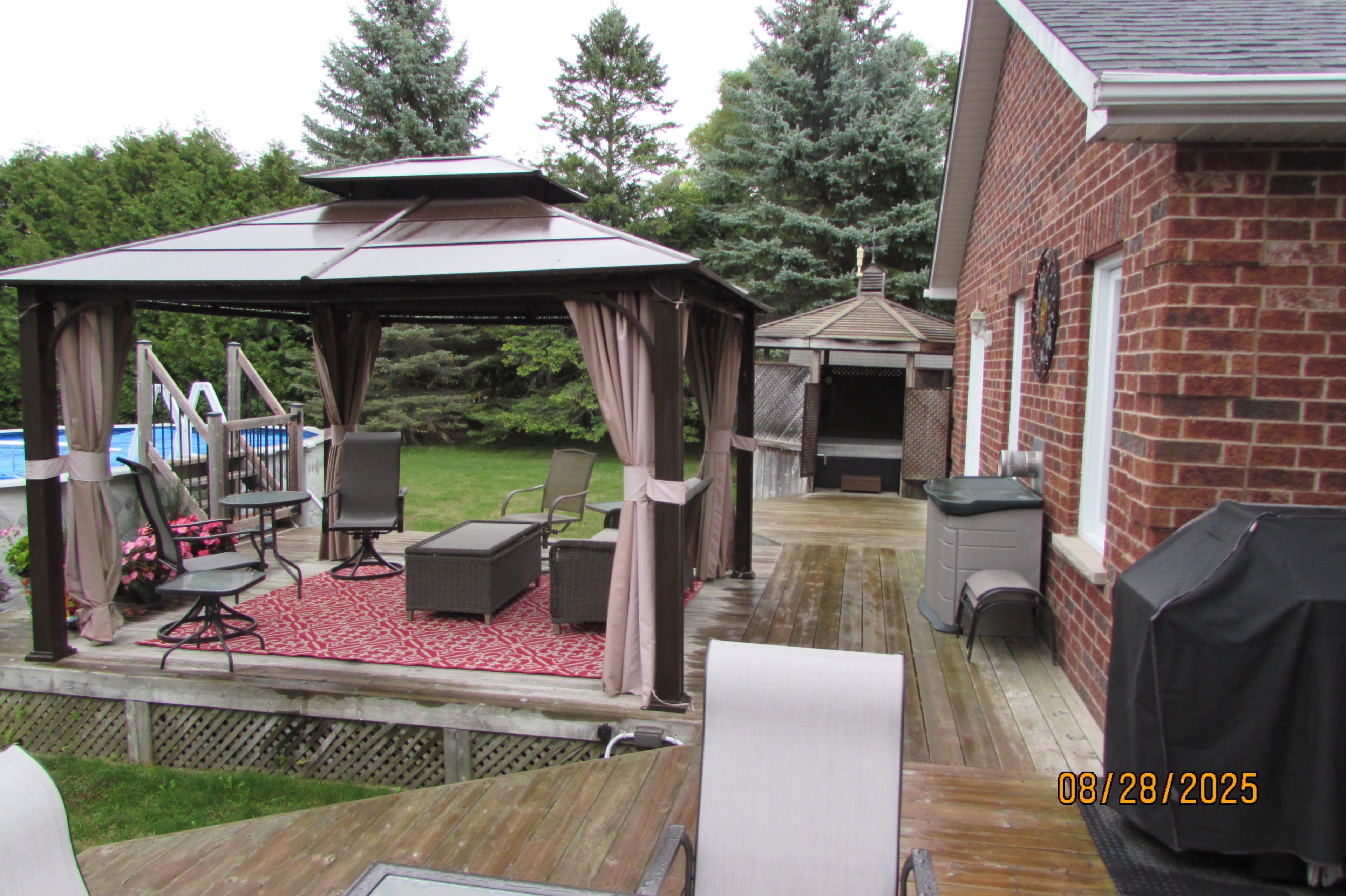 Discover the perfect blend of comfort, space and lakeside living in this custom built bungalow, nestled in the sought-after community of sturgeon lake. Proudly offered by its original owner, this thoughtfully designed home features a unique layout with, 4' wide hallways, 32" interior doors as well as elegant radius corners. Step into the welcoming foyer and experience true open concept living. The great room is ideal for both everyday comfort and entertaining, complete with hardwood flooring and a cozy propane gas fireplace. Enjoy meals bathed in natural light in the separate dining room, or unwind in the inviting living room - perfect for quiet conversation or evening cocktails. The well appointed kitchen overlooks beautifully manicured half acre grounds, offering both function and a serene view. From the breakfast area, walk out to an expansive deck designed for outdoor living, featuring a dining space and a covered gazebo - perfect for relaxing or entertaining on sunny days. Your private backyard oasis awaits, complete with an above ground pool and a secluded hot tub creating a true staycation right at home. As part of the lakeside community, enjoy exclusive access to the 10 acre common area with docks on sturgeon lake, along with community events and a shared water irrigation system. The primary bedroom is a peaceful retreat, featuring its own walkout to the deck and gardens, a spacious walk-in closet and a luxurious ensuite with a separate shower and jetted tub. The second bedroom, currently used as a home office, can accommodate the needs of a growing family. The finished lower level offers incredible versatility, including a large great room, 3 piece bath with shower, an additional bedroom with mirror closet doors, and a den - ideal for guests or extended family. A generous unfinished workshop area provides endless potential for customization and ample storage.