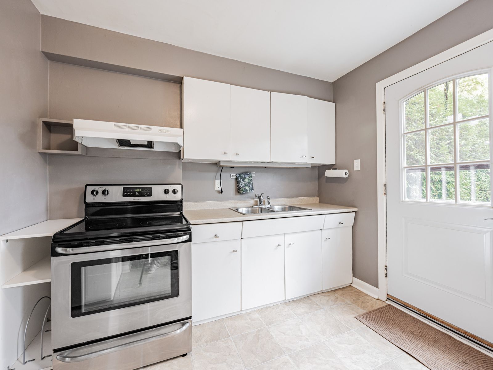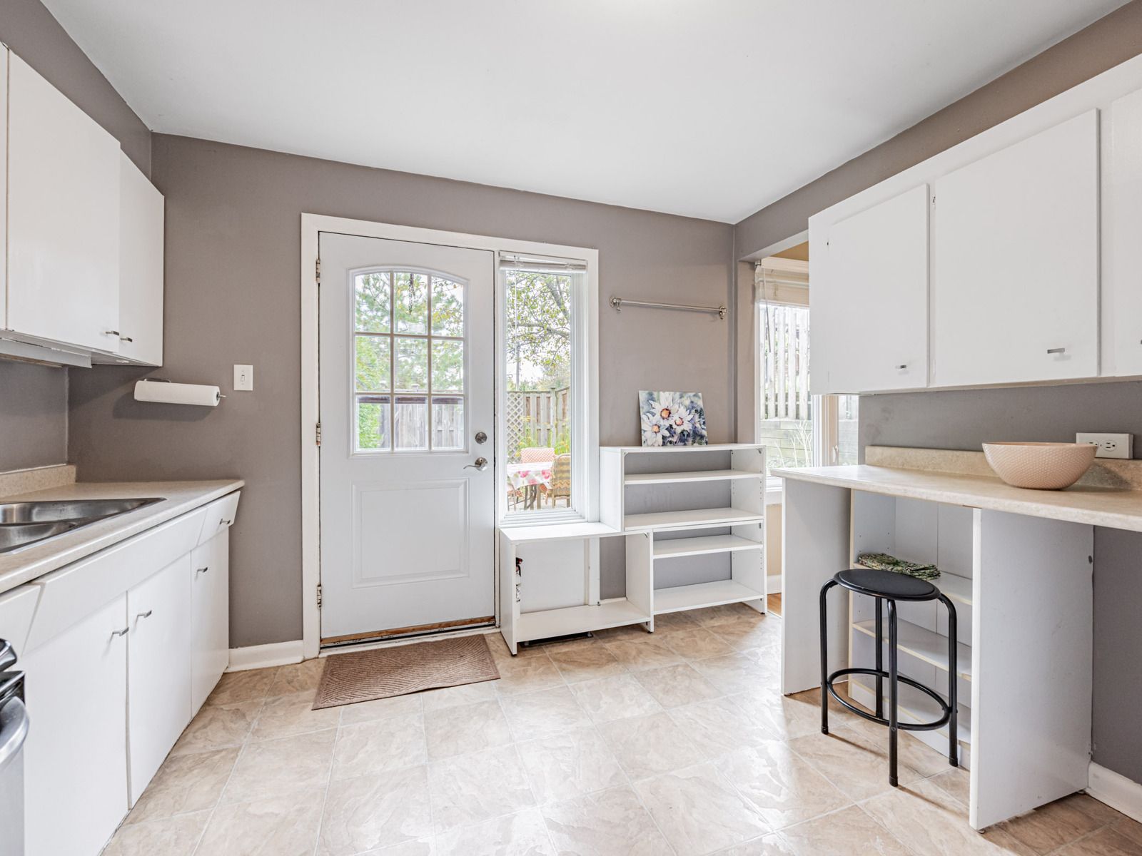 • Eat-in kitchen opens to a private patio and fenced backyard.