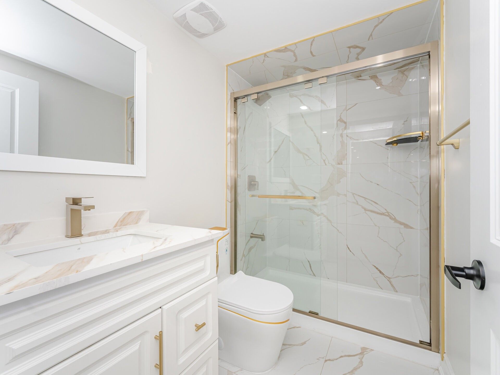 • Four spacious bedrooms on the second floor with three full bathrooms.