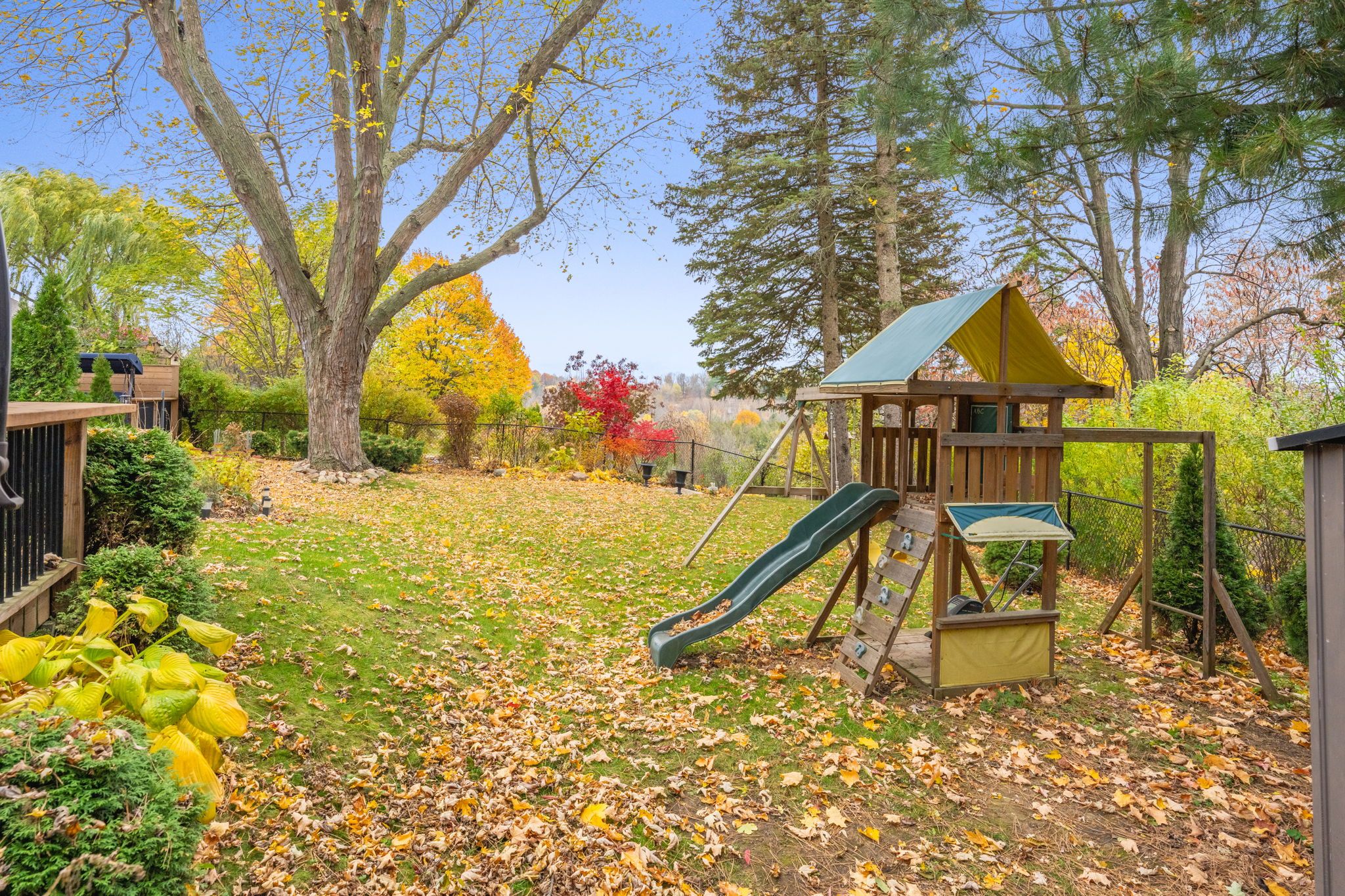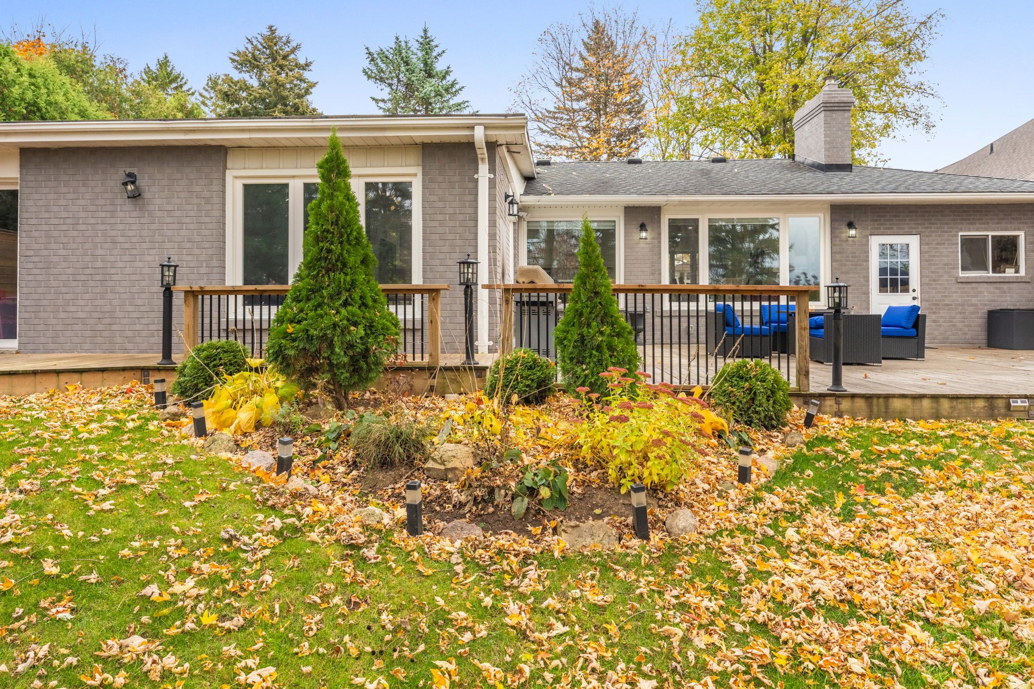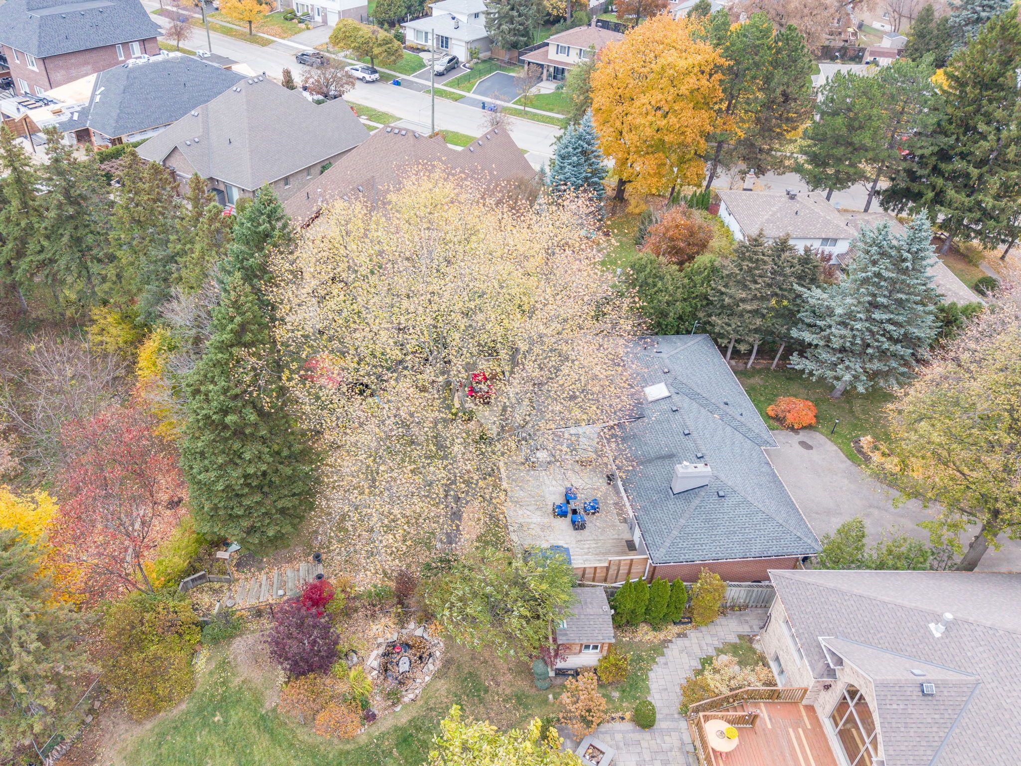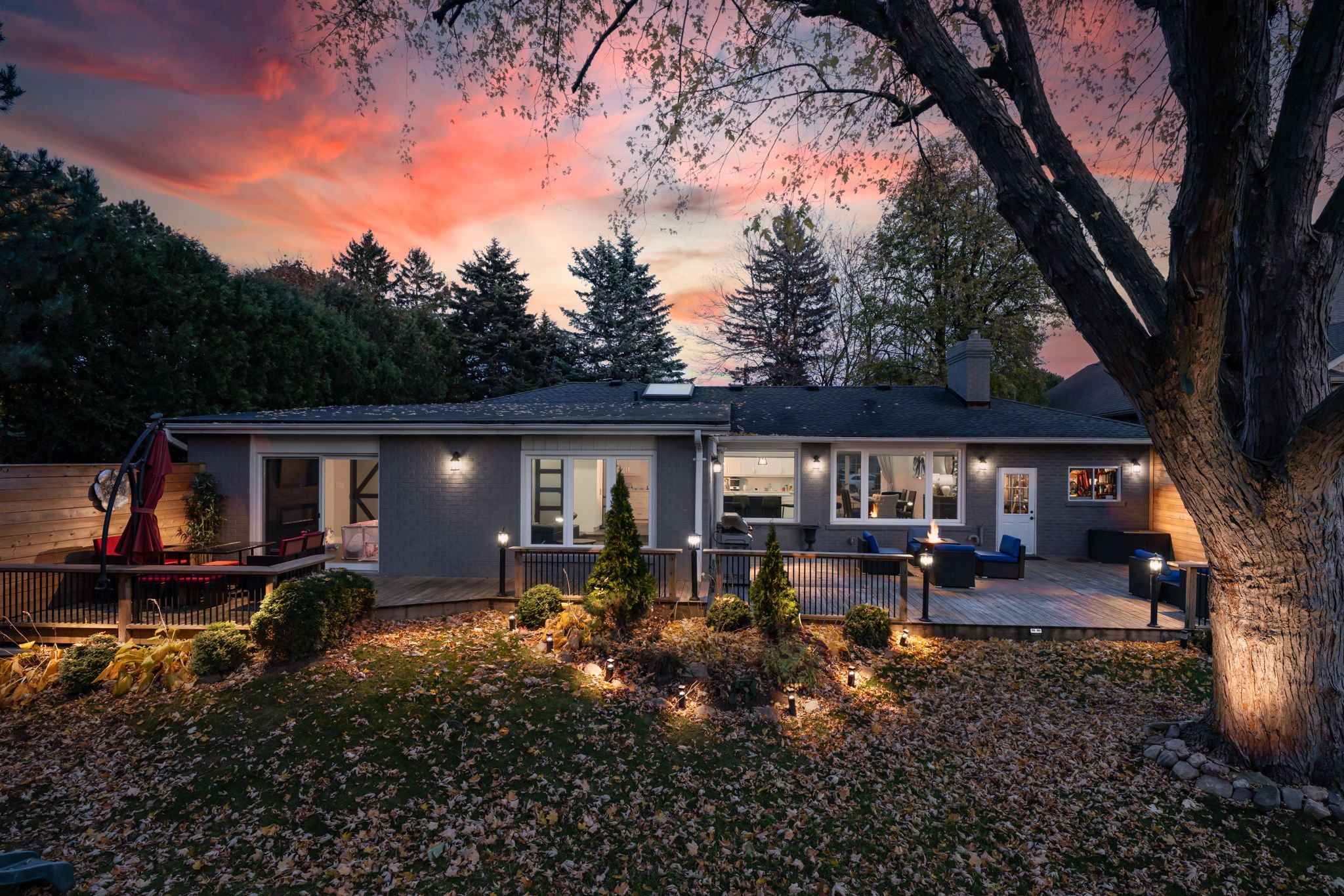 Tucked away in the center of mature georgetown is the stunning chipper court. This quiet, private cul-de-sac combines the walkable convenience of restaurants, shopping & schools but the utmost privacy of large lots, mature tree cover and stunning ravine views. When you enter the foyer, you'll be immediately stunned by this extensively renovated bungalow - smooth ceilings, pot lights and engineered hardwood run throughout the main floor as you flow through the family friendly layout. The dining room and kitchen have breathtaking ravine views through the oversized picture windows flooding the space with natural night. The brand-new kitchen showcases new cabinetry, an oversized island, stainless steel appliances quartz countertops & a skylight above the stove. Bonus space continues in the family room addition with electric fireplace surrounded in stone and two separate walk-outs to the huge deck that spans the entire back of the home. The main floor is completed by a separate wing of the home featuring 3 great sized bedrooms, all with oversized windows. The primary holds a sunken walk-in closet and an elegant 3-piece ensuite with standing glass shower, storage pantry and floating vanity. This wing is completed by an equally stunning 4-piece bathroom with oversized tiles, pantry storage and floating vanity. Downstairs in the finished basement you'll find bonus living space with the rec room, 4th bedroom featuring pot lights and luxury vinyl flooring. The basement has been thoughtfully designed with multiple, extensive storage areas, a rough-in for a wet bar and the potential to add a third bathroom next to the 4th bedroom. Outside offers a rare, flat lot with something for the entire family. Enough space for the kids to play and enjoy the outdoors, beautiful outdoor eating areas and lounge space will offer breathtaking sunset views over the ravine - everyone will love the outdoor living features of this property just as much as the indoor highlights. New furnace (2026)