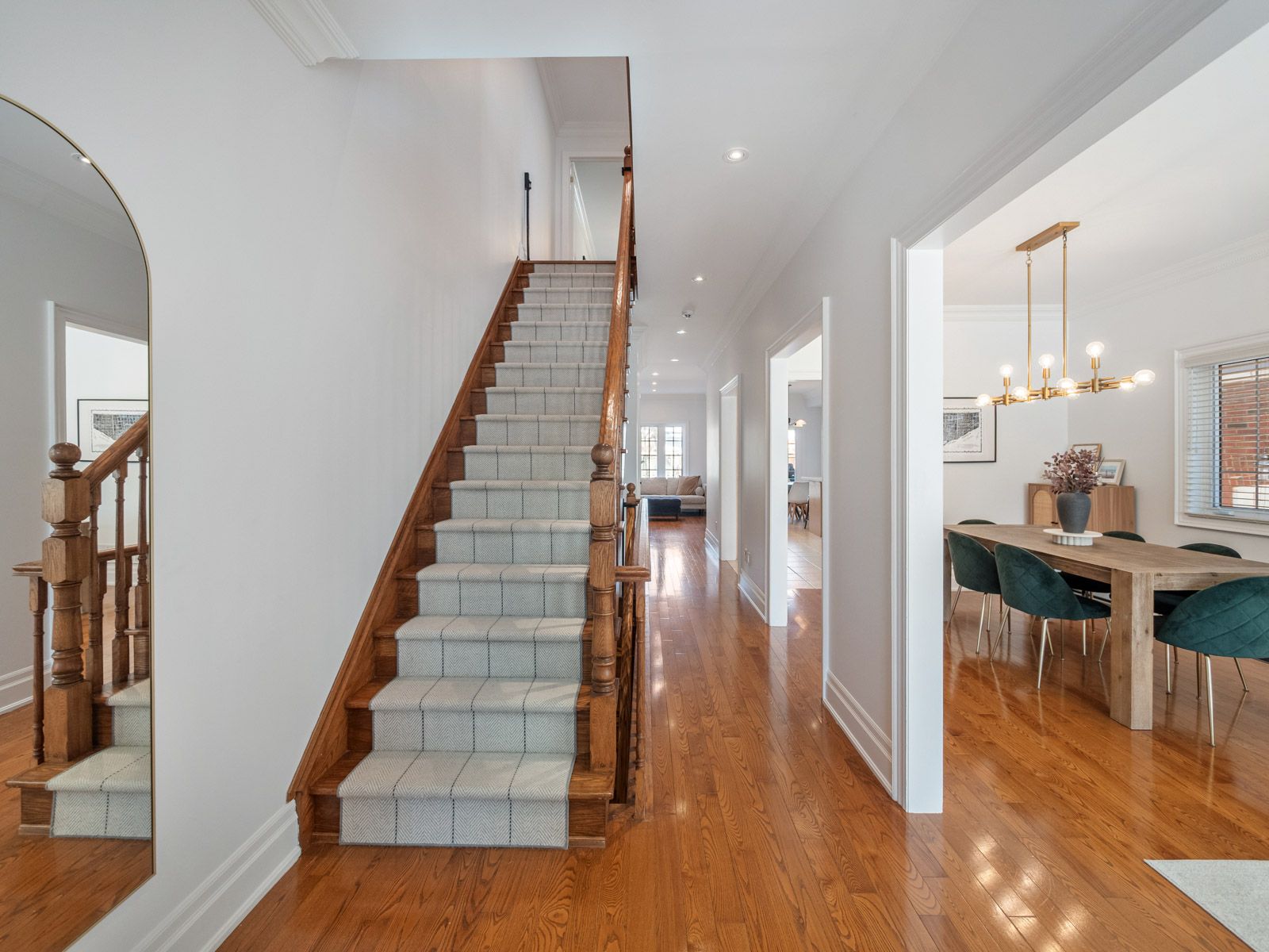Welcome to a truly rare opportunity in the heart of toronto! Nestled on a quiet, family-friendly cul-de-sac, this exceptional 4-bedroom, 4-bathroom home sits on an oversized lot offering the perfect blend of space, privacy, and unbeatable location just steps to vibrant st. Clair. From the moment you walk through the front entry, you'll feel the scale and warmth of this home. The expansive living room is bathed in natural light from stunning south-facing windows and flows seamlessly into the spacious dining room - an entertainer's dream for hosting family gatherings and dinner parties. The heart of the home is the oversized kitchen, complete with abundant counter space, generous cabinetry, and incredible storage. The large eat-in area walks out to a private deck with a gas line for bbqs, overlooking the large backyard - a rare find in the city. The kitchen and breakfast area open beautifully into the inviting family room featuring a cozy gas fireplace, creating the perfect everyday living space. Upstairs, you'll find three generously sized bedrooms plus a spacious primary retreat designed to impress, complete with a walk-in closet and a 4-piece ensuite bath - your own private sanctuary. The lower level adds incredible versatility with 3 access points to outside. A direct walk-in and mudroom access from the garage, front driveway access, and third walkout to backyard. A full additional bathroom, and a large recreation space with soaring ceilings provide the open feel and layout to make it ideal for a future in-law or nanny/income suite. Outside, the quiet cul-de-sac offers a safe and welcoming space where kids can play freely. With a 1-car attached garage and parking for two more in the driveway, convenience is covered. All of this just steps to the shops, restaurants, parks along st. Clair as well as top schools. Enjoy the best of city living while tucked away in your own private enclave. This is the one you've been waiting for. Some photos digitally edited.