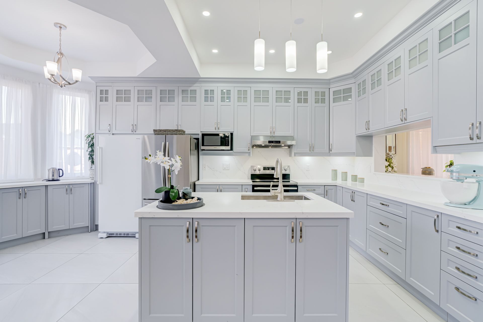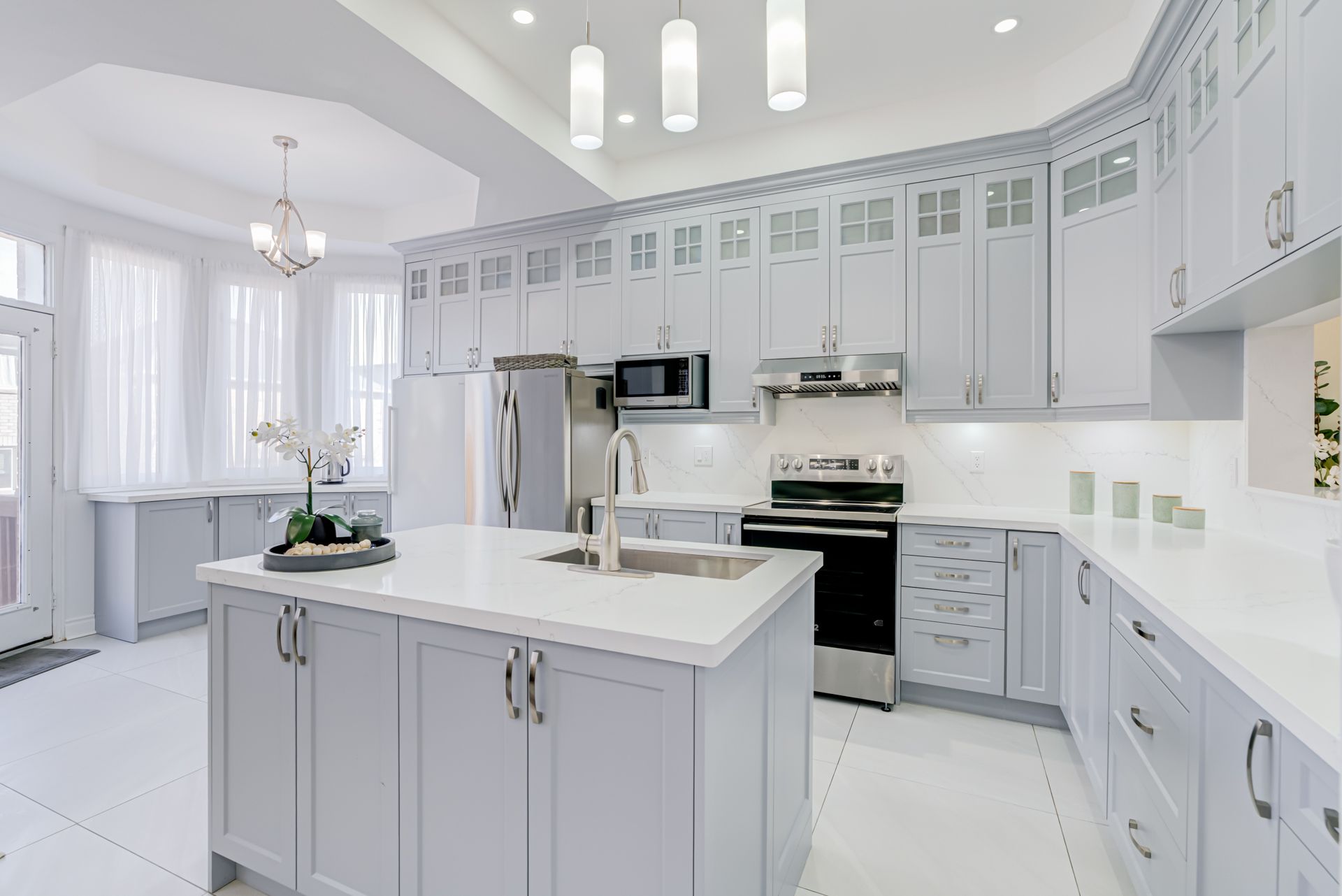 • Fully renovated kitchen featuring a Quartz island and new cabinetry.