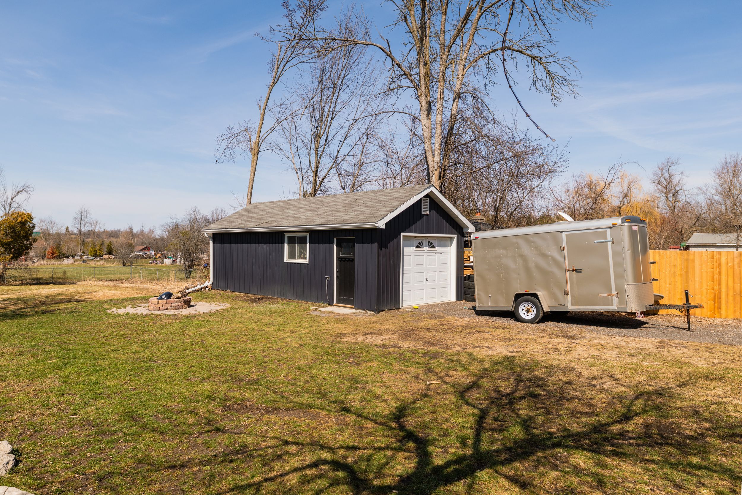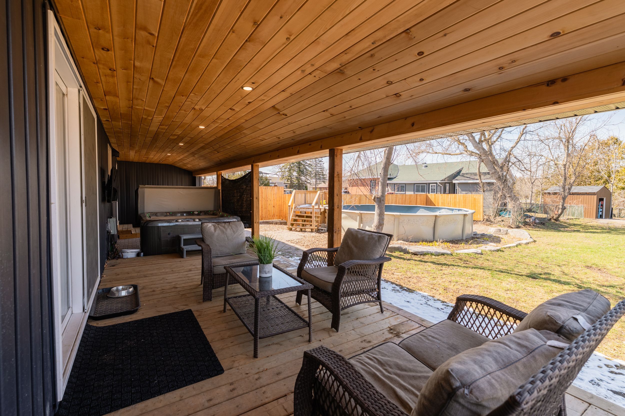 This stunning 4 bedroom, 3 bathroom bungalow has been completely transformed with high-end finishes and thoughtful updates throughout. Situated on a generous rural lot just mins to peterborough, highway 115, numerous nature trails and the canal. On the main floor, you'll find three bedrooms, highlighted by a luxurious primary suite featuring a large walk-in closet and a spa-like ensuite bathroom with double sinks and heated floors - even in the shower. Both the dining room and the office/den offer direct walkouts to a covered patio, where you can step out to enjoy the above-ground pool, private fully fenced backyard, and inviting fire pit conversation area. The bright open-concept kitchen is a standout, anchored by a beautiful rich cherry wood island while brand-new windows throughout flood the home with natural light. Downstairs, the fully finished basement provides even more living space with a large recreation room, a fourth bedroom, and a full bathroom - ideal for guests, teens or additional family space. Additional features include a detached 2-car tandem garage, a large storage shed, a new furnace, and a 2-year-old a/c unit making this home truly move-in ready. Comfort, style, and functionality come together perfectly here. This one truly has it all - don't miss out!