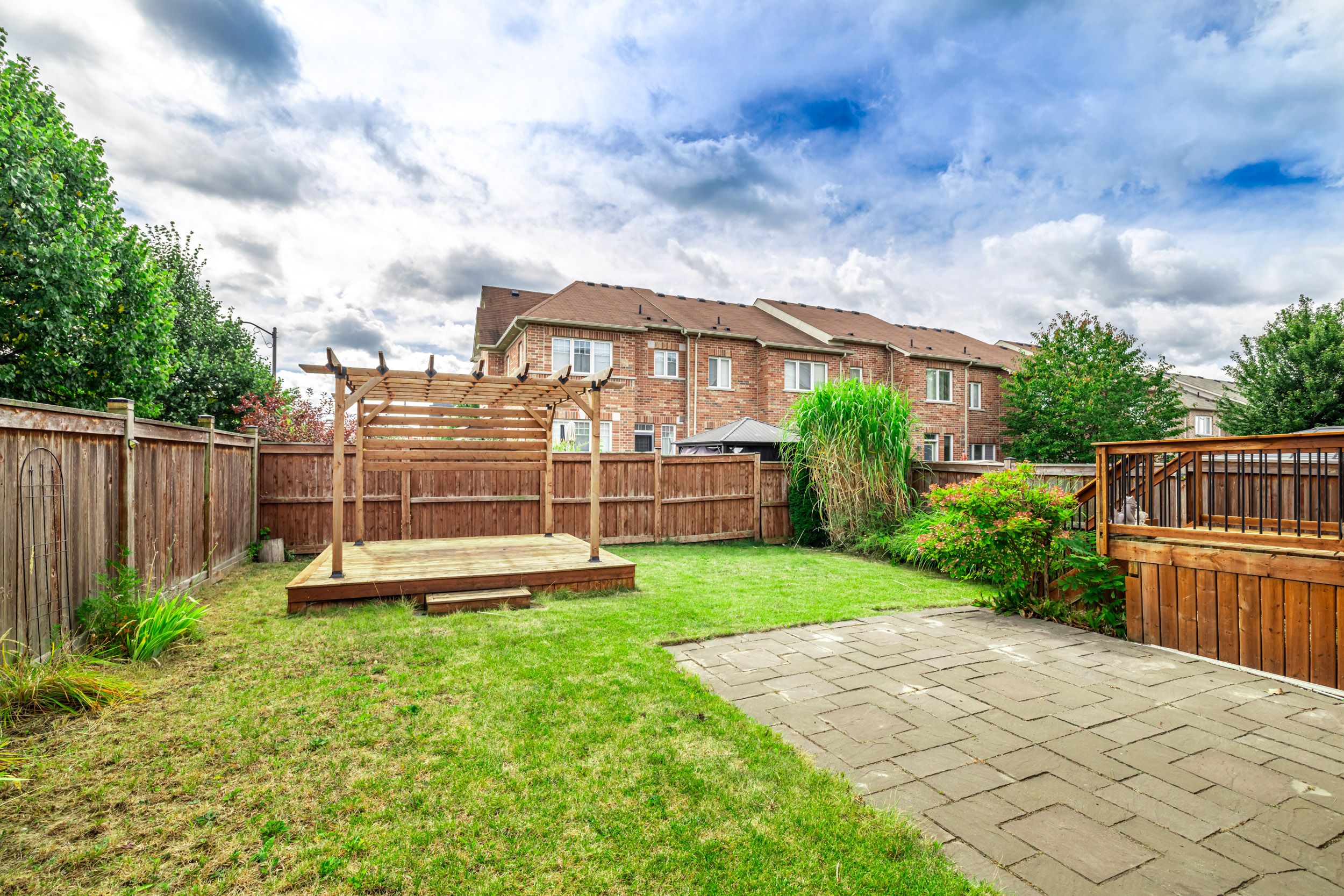 Beautiful end unit townhome in a highly desirable harvest hills family-friendly community. With over 2,000 sqft of living space, this home features a very functional layout and 9 ft ceilings on the main floor, creating an open feel. Enjoy direct access to the garage and sun-filled rooms with large windows. The spacious finished basement with a cozy fireplace is perfect for entertainment. Step outside to a huge backyard with a pergola, ideal for relaxing or gatherings. Conveniently located just steps away from schools, parks, trails, shopping, and transit. Minutes to upper canada mall, costco, go train, and much more!