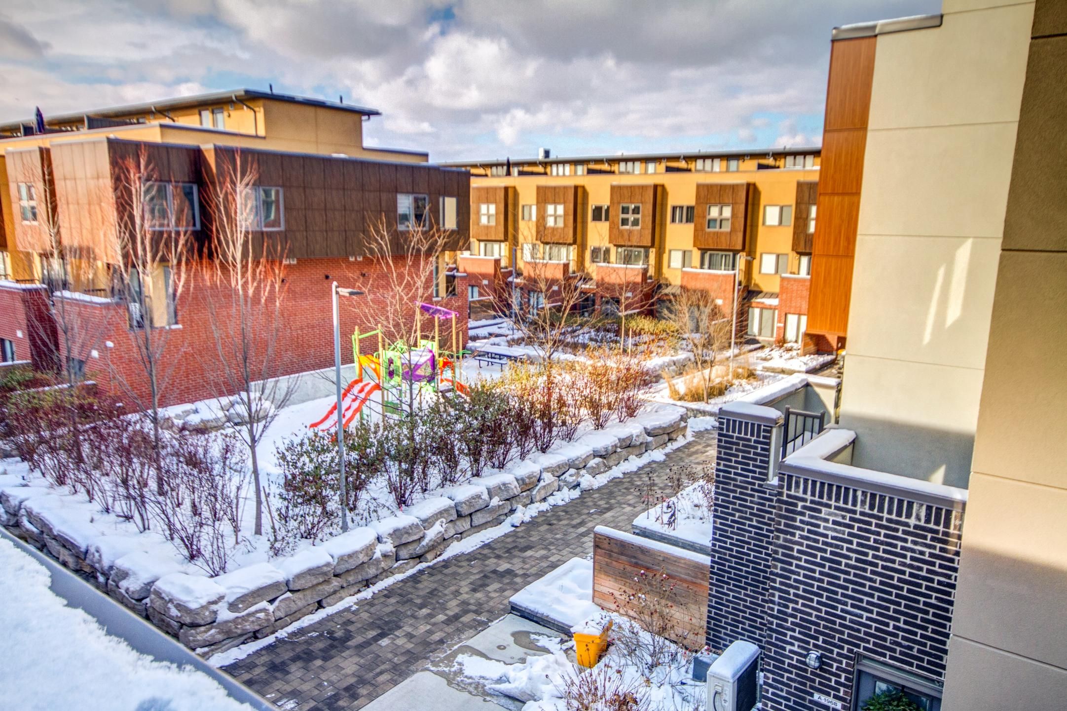 Welcome to this beautiful 2-bedroom, 1-bathroom freehold townhouse. This property includes many upgrades, unique features, and an underground parking, sheltering you and your vehicle from the elements. The well-designed floor plan maximizes the available living and entertainment space. The main floor boasts roughly 9. 5 foot ceilings and floor-to-ceiling windows for an abundance of natural light. The kitchen is appointed with full-sized stainless steel appliances and a gorgeous built-in oven and cooktop. This unit is also one of the only few units that includes a full-sized semi-finished basement, with included rough-in plumbing for a second bathroom, and features a private entrance into and out of the unit from the underground garage. The rooftop also features a full-sized wrap-around terrace spanning the length and width of the home and is equipped with a natural gas line connection. Excellent space for relaxing, hosting, get-togethers and barbecues. Situated in the highly desirable parkwoods-donalda neighbourhood with easy access to the dvp/404, 401, and an abundance of shops and restaurants, all just minutes away. Ttc access is also located just across the street from the home. Upgraded features:- remote and wand controlled blinds on the main floor and curtain rods on the second (2. 5k value) - oak hardwood throughout the house (including the stairs) - upgraded kitchen cabinets (hardwood) and countertop - upgraded bathroom tiles and countertop
