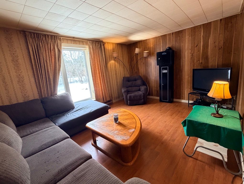Welcome to 4 denison drive, a charming bungalow nestled just steps from the heart of northbrook. Set on a spacious 0. 58-acre corner lot, this property offers the perfect blend of comfort, convenience, and opportunity. This inviting home features 2 bedrooms, 1 bathroom, a bright living room, dining area, and a functional kitchen-ideal for everyday living. A generous entertainment room provides added versatility and could easily be converted into a third bedroom to suit your needs. Outside, you'll love the large yard-perfect for kids, pets, and outdoor gatherings. The property also includes a fantastic garage, offering plenty of space to store your vehicles, tools, or recreational toys. Downstairs, the unfinished lower level with high ceilings presents a blank canvas, ready for your creative vision-whether you dream of a workshop, family room, or additional living space. Located within walking distance to northbrook, you'll enjoy easy access to all essential amenities, including a medical centre, pharmacy, grocery store, bank atm, chiropractor, fitness centre, restaurants, and lcbo. Whether you're looking for a peaceful retreat or a fresh start in a welcoming community, this property is full of potential and ready to welcome you home.