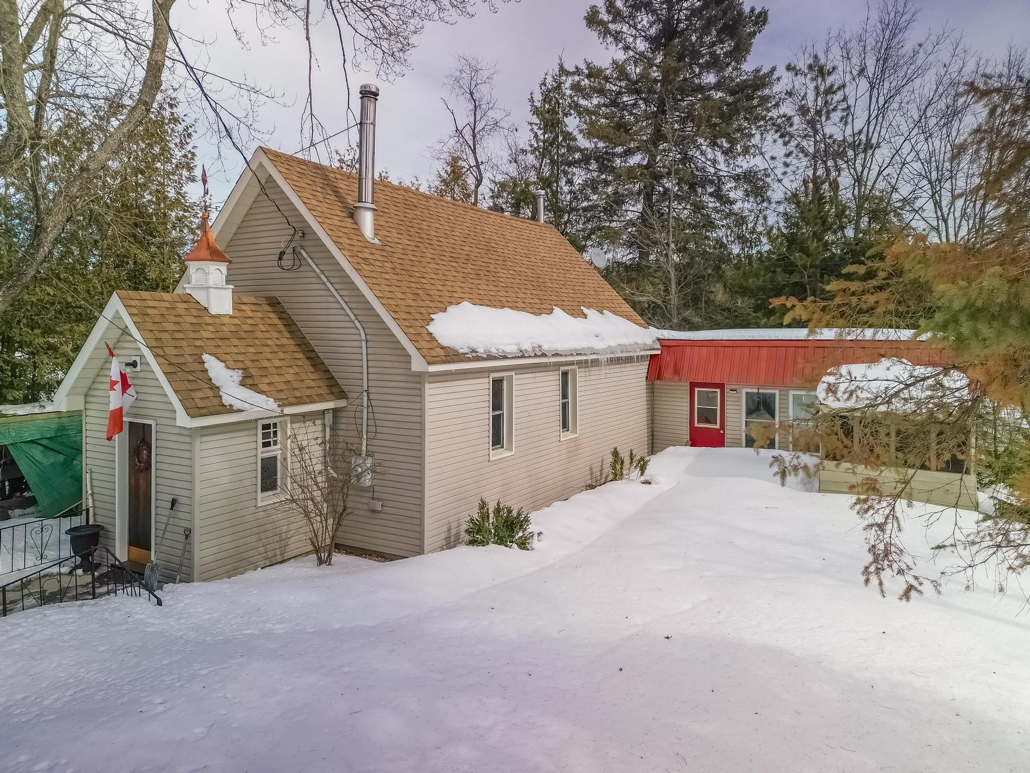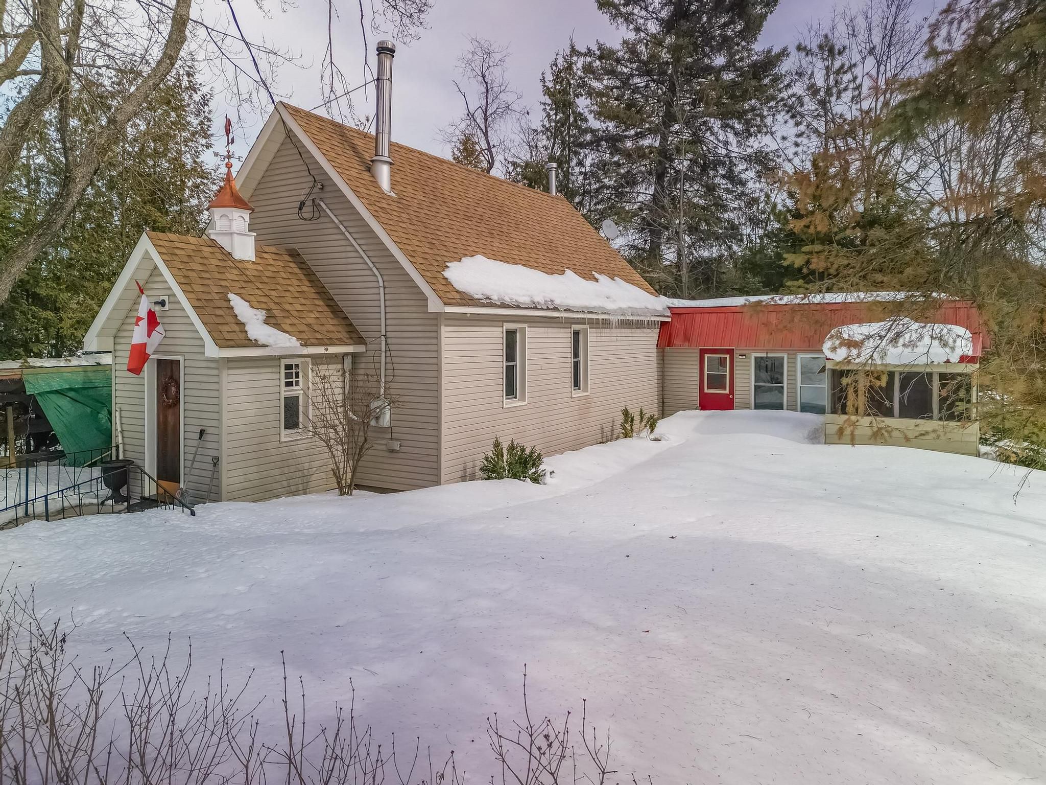 Available now !!! This special unique home in the charming village of kinmount, it is ready for you to move in right away. At one time this was a quaint church but has been lovingly renovated into a wonderful, maintenance free 2 bedroom home. You will love the open living space with soaring cathedral ceilings and hardwood flooring. A super efficient wood stove warms the entire area, the updated 3 piece washroom contains the main floor laundry, and the renovated kitchen features a small eat-in area. A huge primary bedroom is separate from the main living areas, and the second bedroom overlooks the massive living space of the great room. Enjoy the bright, easy to maintain gardens in the summer! All of the local shopping and parks are steps away. Don't miss out on your opportunity to own this value-priced home.