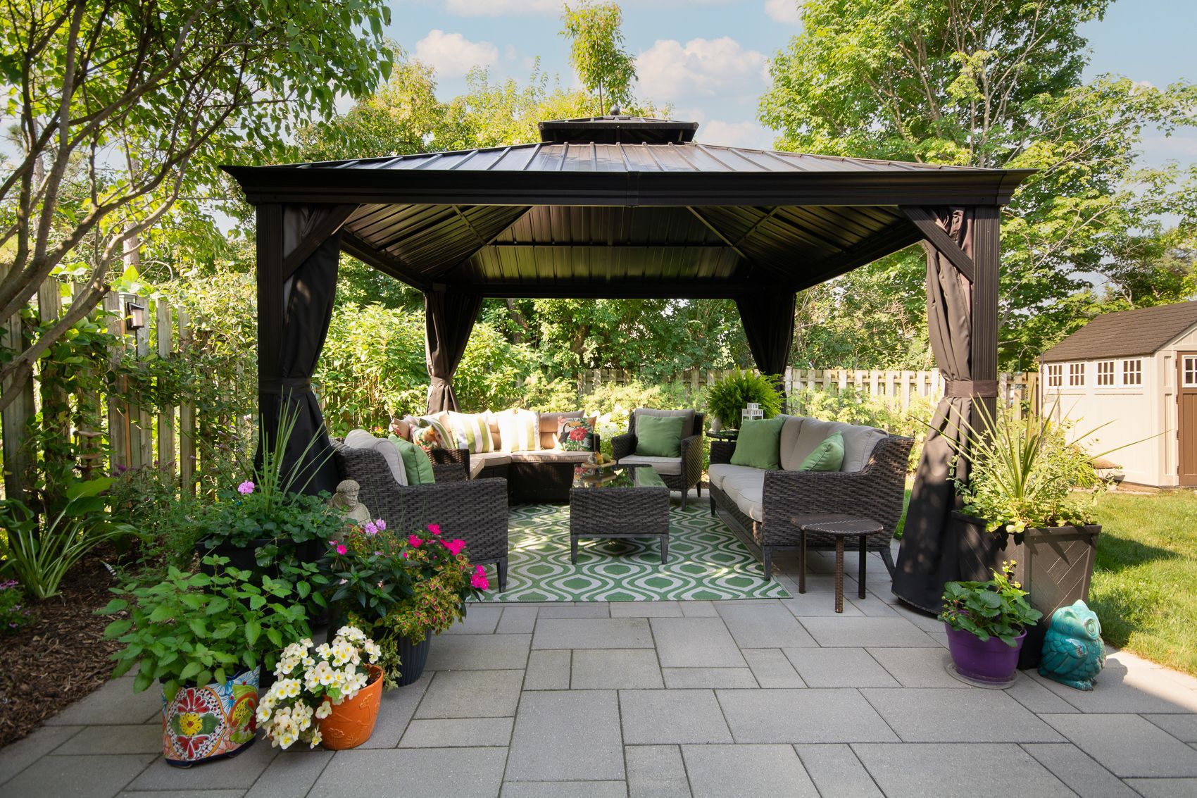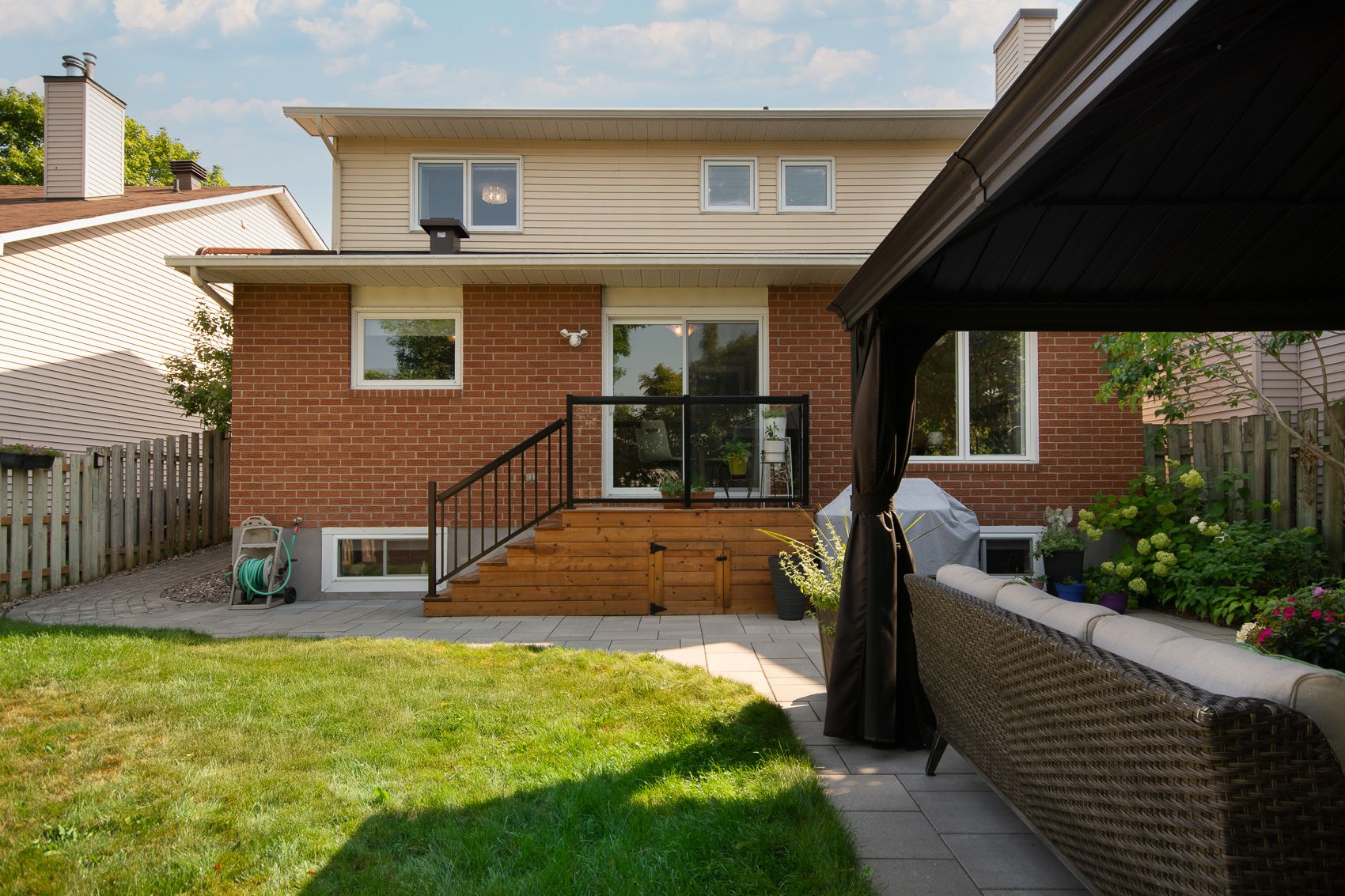 • Private landscaped backyard with custom patio and gazebo for outdoor enjoyment.