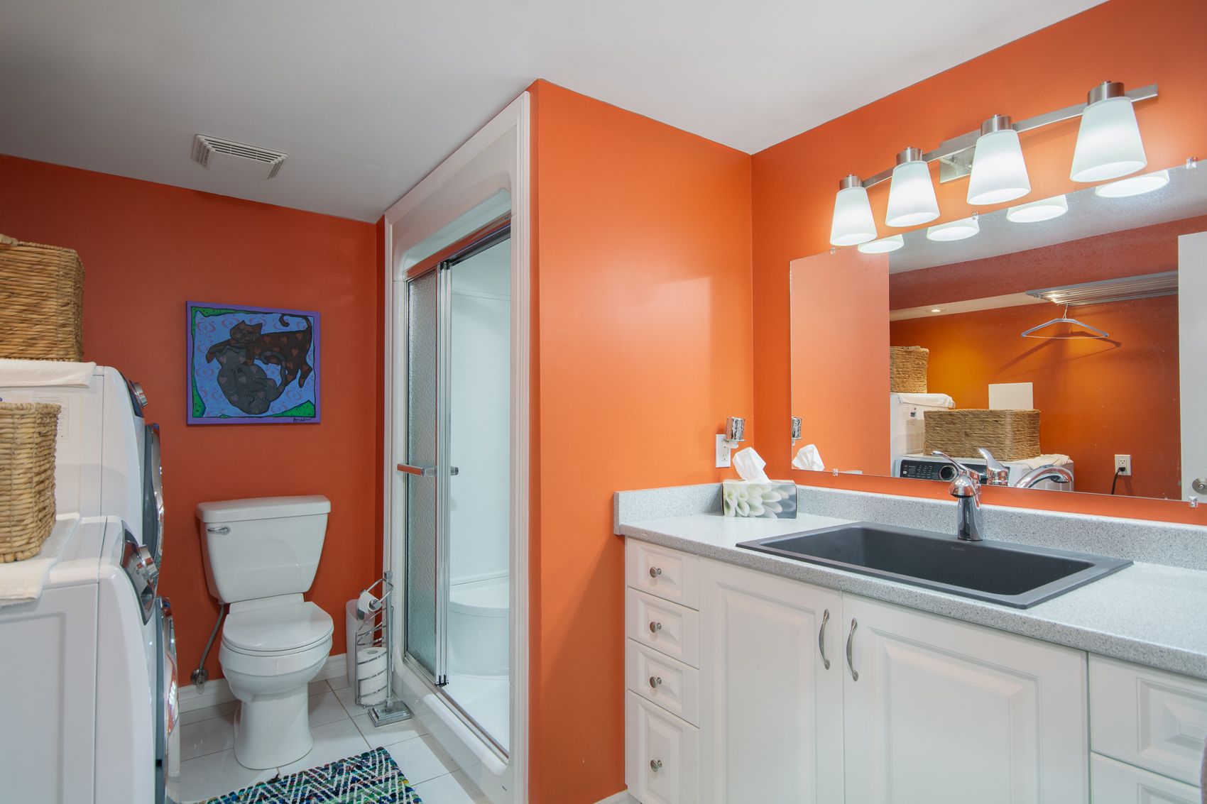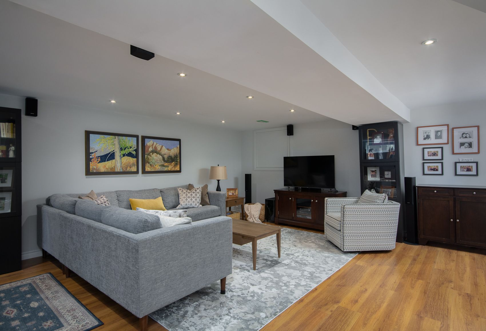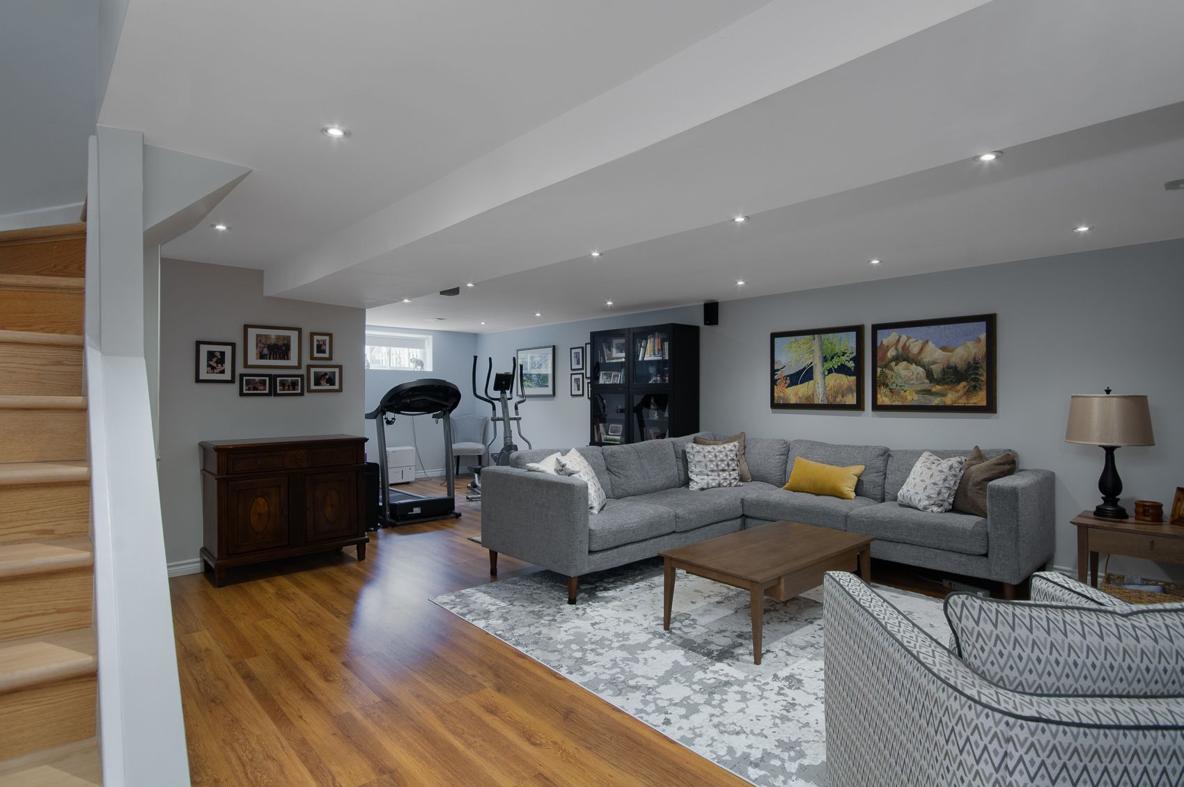 • Finished basement with recreation space, extra bedroom, and full bathroom.