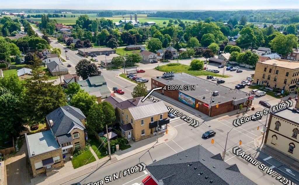 5-plex plus retail unit in harriston. Proven stable income-generating property at the main intersection. This exceptional commercial real estate offering presents a diversified portfolio with seven distinct revenue streams, making it an ideal acquisition for savvy investors or owner-operators. $150,000+ in recent upgrades ensures a low maintenance building with high quality units. The property currently features five fully rented residential units, with tenants in good standing, ensuring immediate and consistent rental income. Plus ongoing revenue generated by advertising signage on the building. Total income of over $100,000 annually. Employee and tenant parking is conveniently available at the rear of the building, with additional curbside parking along the south side street. The 550 sq ft commercial space, ready for immediate use for your business or a new office/retail tenant. Additionally, the basement offers significant potential for extra storage space and the shared tenant laundry facility.