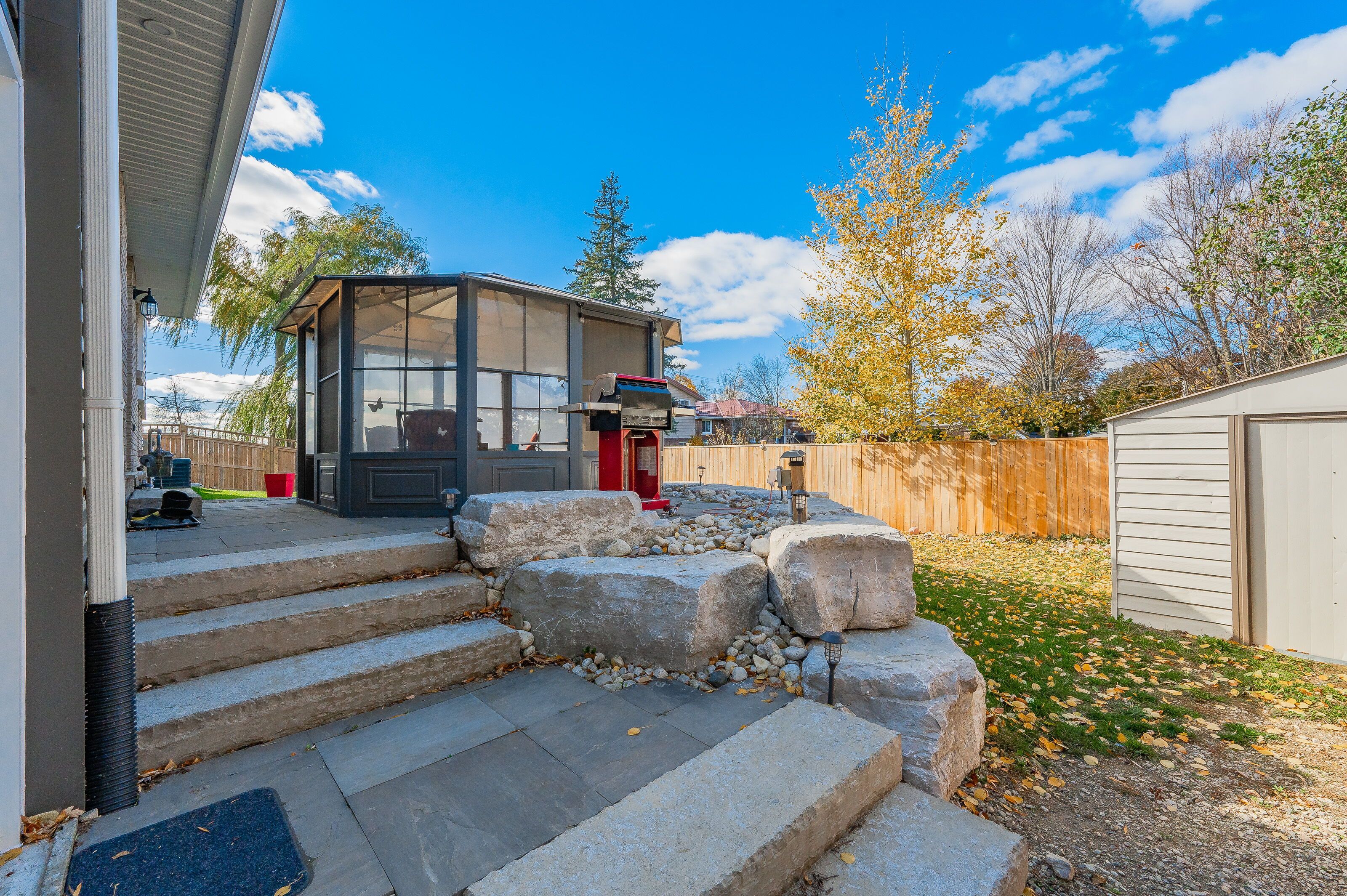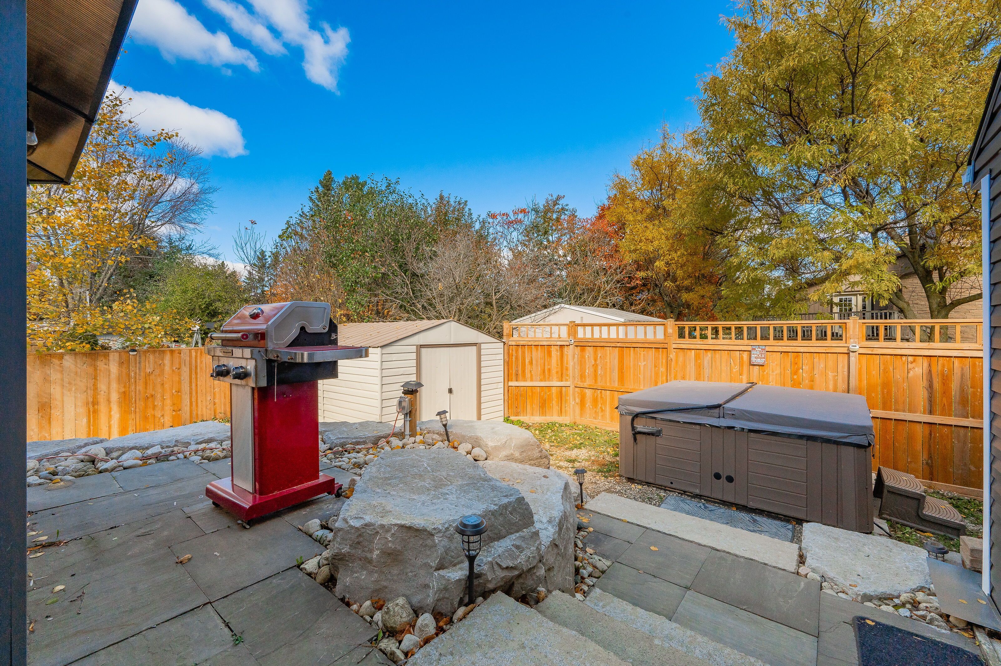 • Fully fenced yard with a rockery patio for outdoor gatherings and barbecuing.