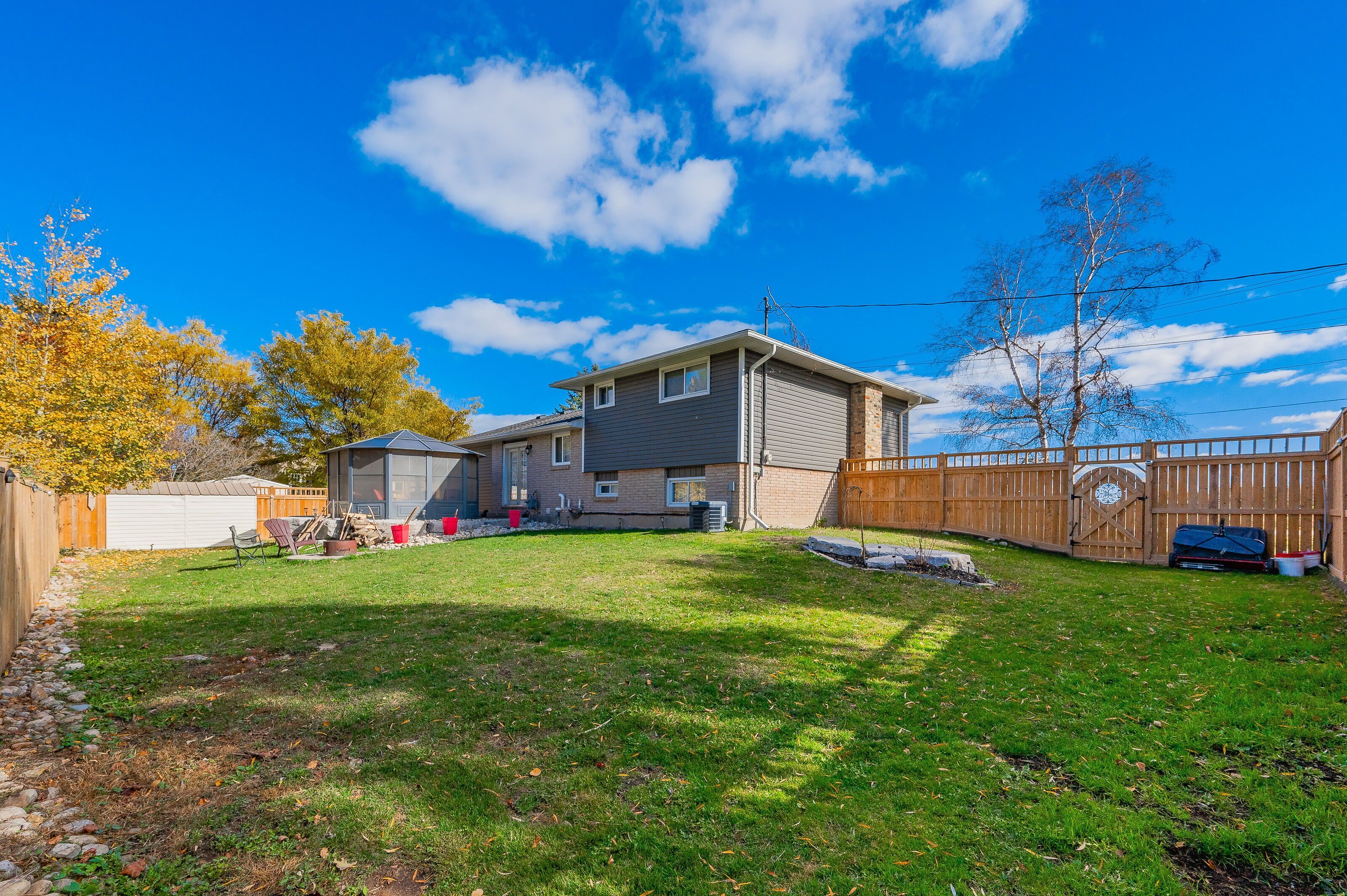 Welcome to the beautiful town of elora! It is with great pleasure we bring to market this four bedroom, two bathroom 4/5 level side-split with over 3000 sqft of amazing living space. The open concept kitchen to dining room featuring a fully functional granite island, natural wood floors and space enough for 12 around the harvest table with ease. Three generous sized bedrooms plus bath on the upper level and a fourth bedroom on the lower level has plenty of room for everyone to have their own space. The lower family room floods with natural light through the bank of bay windows, just add your fireplace to make those cozy up movie nights perfect. Let's talk about the basement rec room specifically built for that perfect pool shot or serving friends at the live edge bar during the leaf game. Pinball niche is just perfect for the machine or display area for your featured collections. Walk up from there to the bonus great room to increase for that perfect party space or easily converted back to a nice big garage! If outside living is high on the wish list, have we got the space for you! Fully fenced yard with rockery patio crowned with plenty of space for that all year round pit master barbecuing or enjoy star gazing while the day's stresses melt away. Amazing new shed built on concrete piers just keep the bonuses coming. All this on a huge lot at the gateway to elora. Make the prettiest town in ontario your new home!