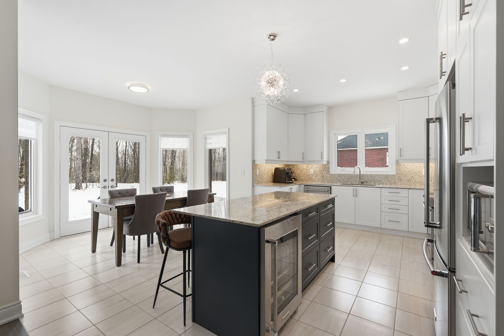 • Ample kitchen space with island and breakfast area leading to the outdoors.