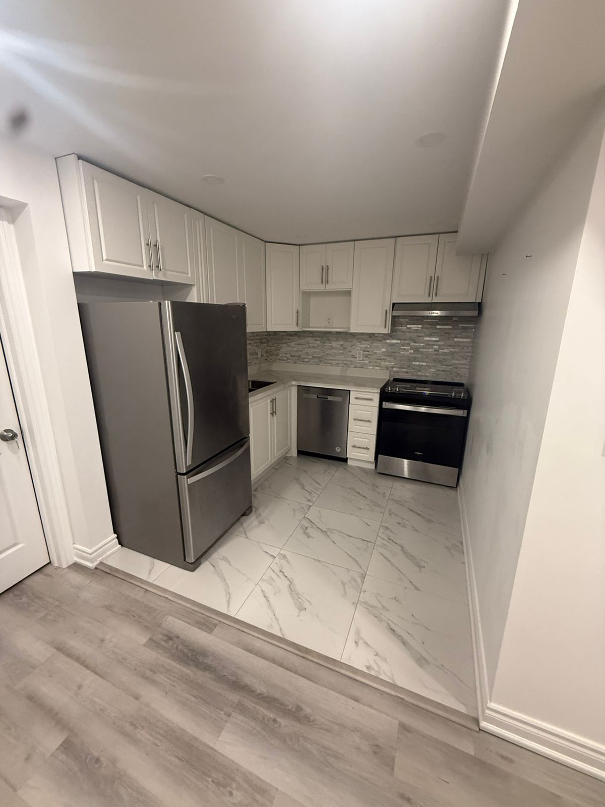 2-bedroom, 2 full-bathroom basement unit with a private entrance, separate laundry. Features a spacious living area, modern kitchen with brand-new appliances, and large windows for plenty of natural light. Located in the desirable community with easyaccess to hwy 401 & 407, schools, transit, parks, and shopping. Extras:1 surface parking spot included. Tenant pays 30% of utilities. Don't miss this move-in-ready home.