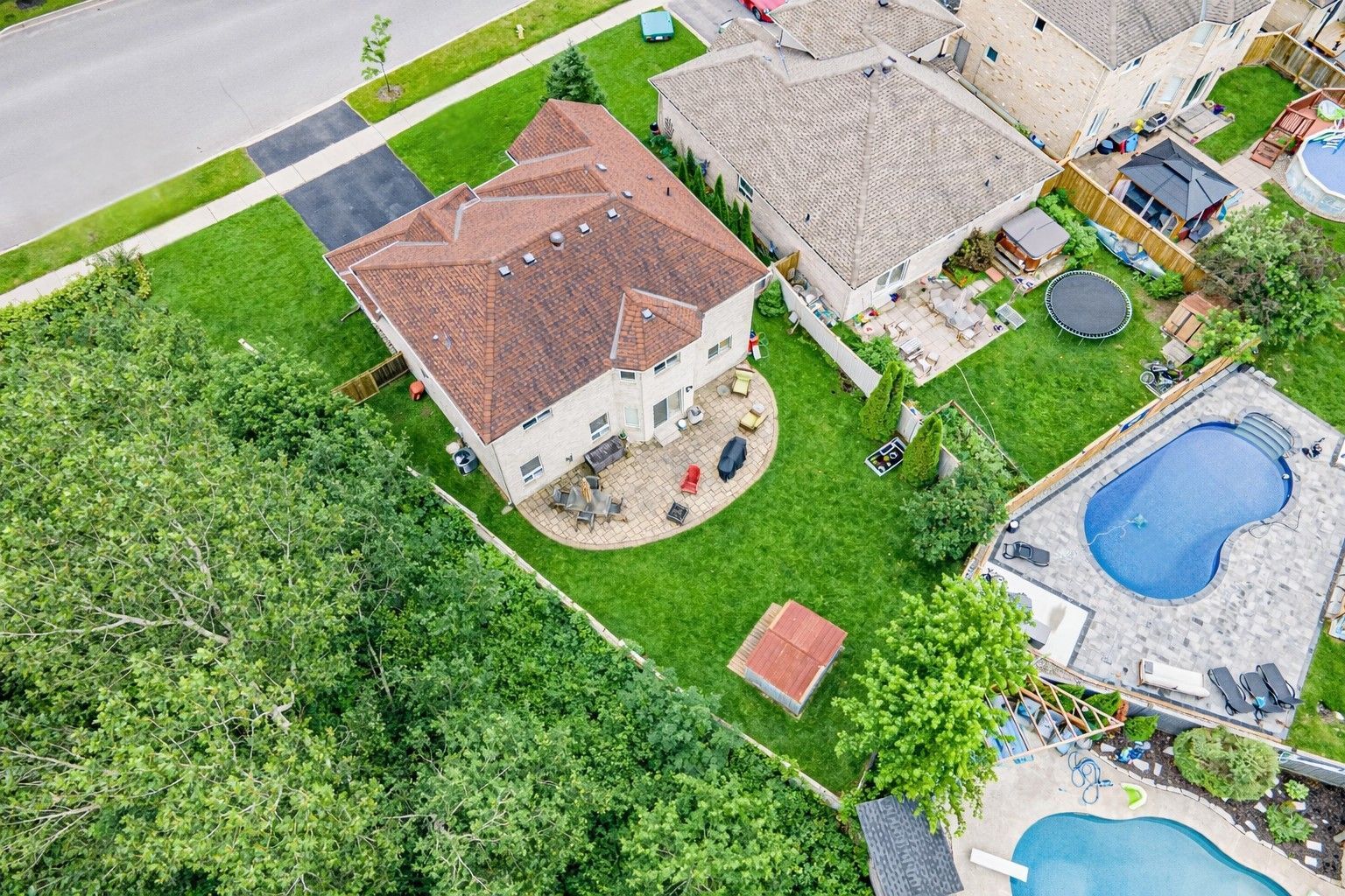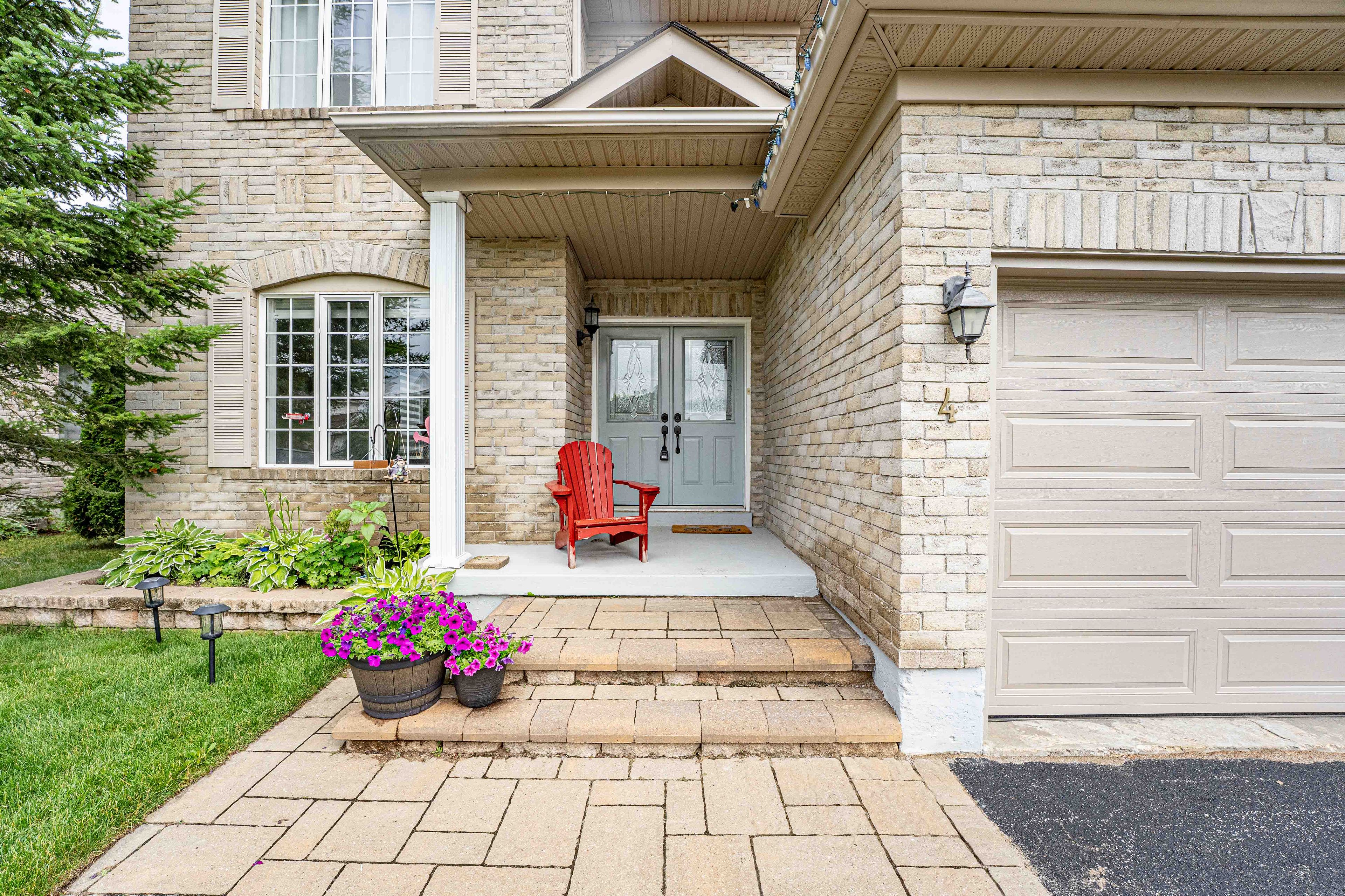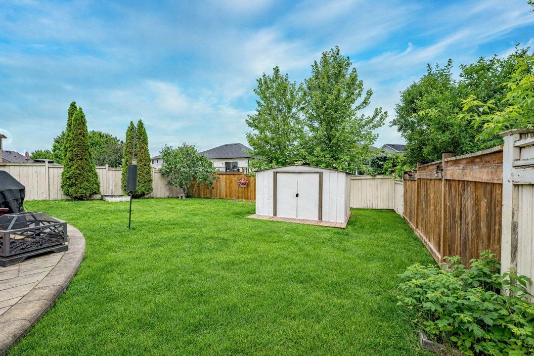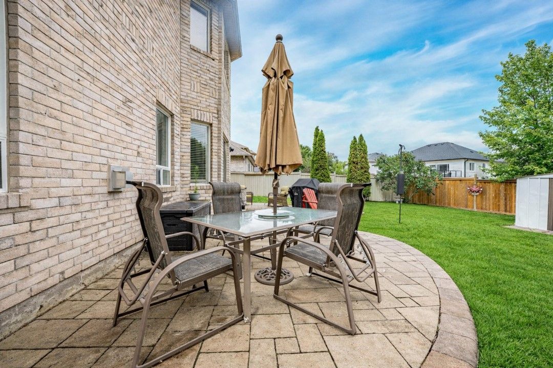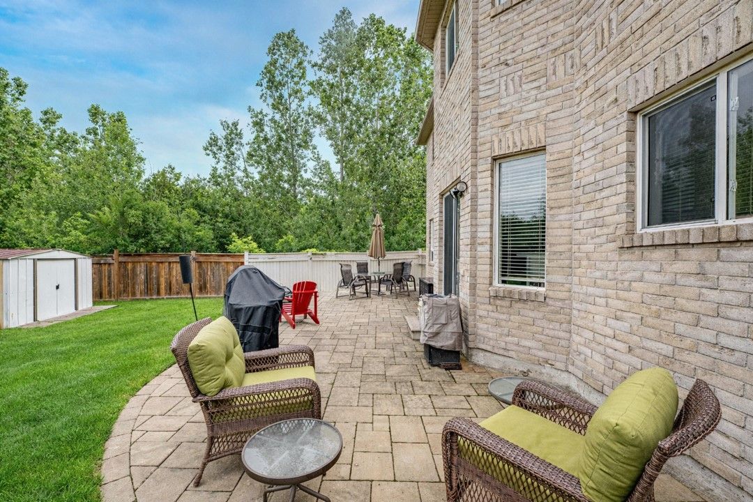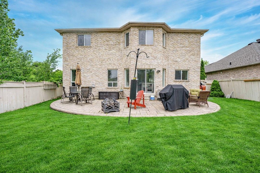 Discover this exceptionally well-maintained, all-brick family home at 4 gold park gate in angus. Boasting over 2800 sq. Ft. Of fully finished living space on great lot. This spacious and bright home features a double-door entry, 9-ft ceilings, and a formal living and dining room with hardwood floors and pot lighting. The beautifully renovated eat-in kitchen (2022) showcases quartz counters, a stylish backsplash, new appliances, pot lighting, a breakfast bar, and a walkout to a stone patio and fenced yard with a garden shed. The cozy family room offers a gas fireplace and hardwood flooring. A main floor laundry with garage access and a powder room add convenience. Upstairs, the refinished primary suite includes a walk-in closet, an ensuite with a new vanity and shower, and a relaxing corner jet tub. Three additional generously sized bedrooms complete the second floor. The finished basement features a large rec room, a 2-pc bath, and ample storage. Upgrades include new garage doors (2021), central air (2024), and a water softener.