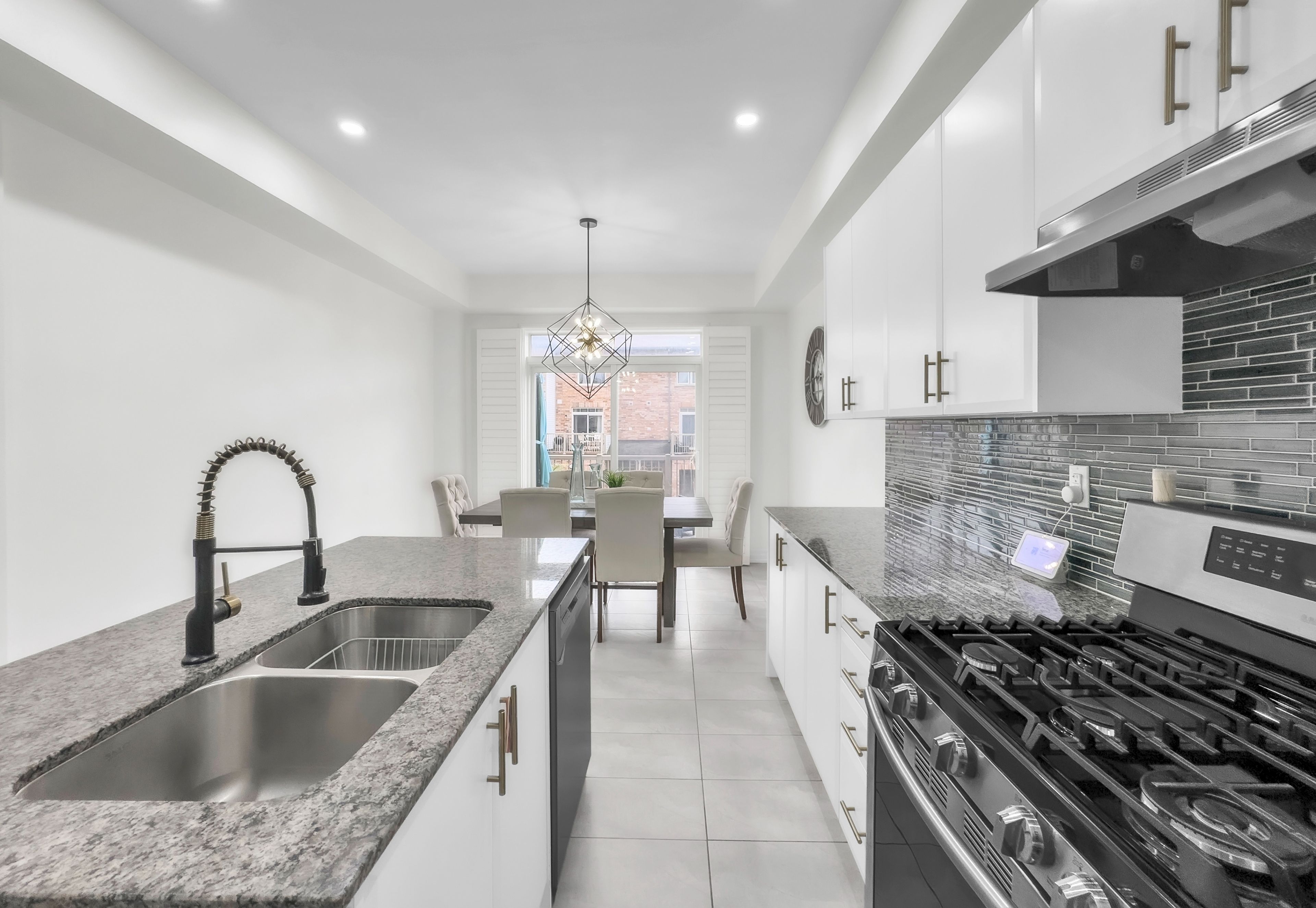 Beautiful freehold townhouse offering 3 bedrooms and 4 bathrooms in a friendly, convenient neighbourhood. Loaded with upgrades including 9' ceilings, vinyl flooring, hardwood upper hallway, and a stunning oak staircase with cherry moulding. Stylish kitchen with granite counters, backsplash, upgraded cabinetry, pantry, breakfast bar, and premium stainless steel appliances. Bright primary bedroom with walk-in closet and 4-piece ensuite. Marble countertops in all bathrooms. Pot lights and upgraded light fixtures throughout the home. Close to top-rated schools, costco, shopping, and all major amenities.