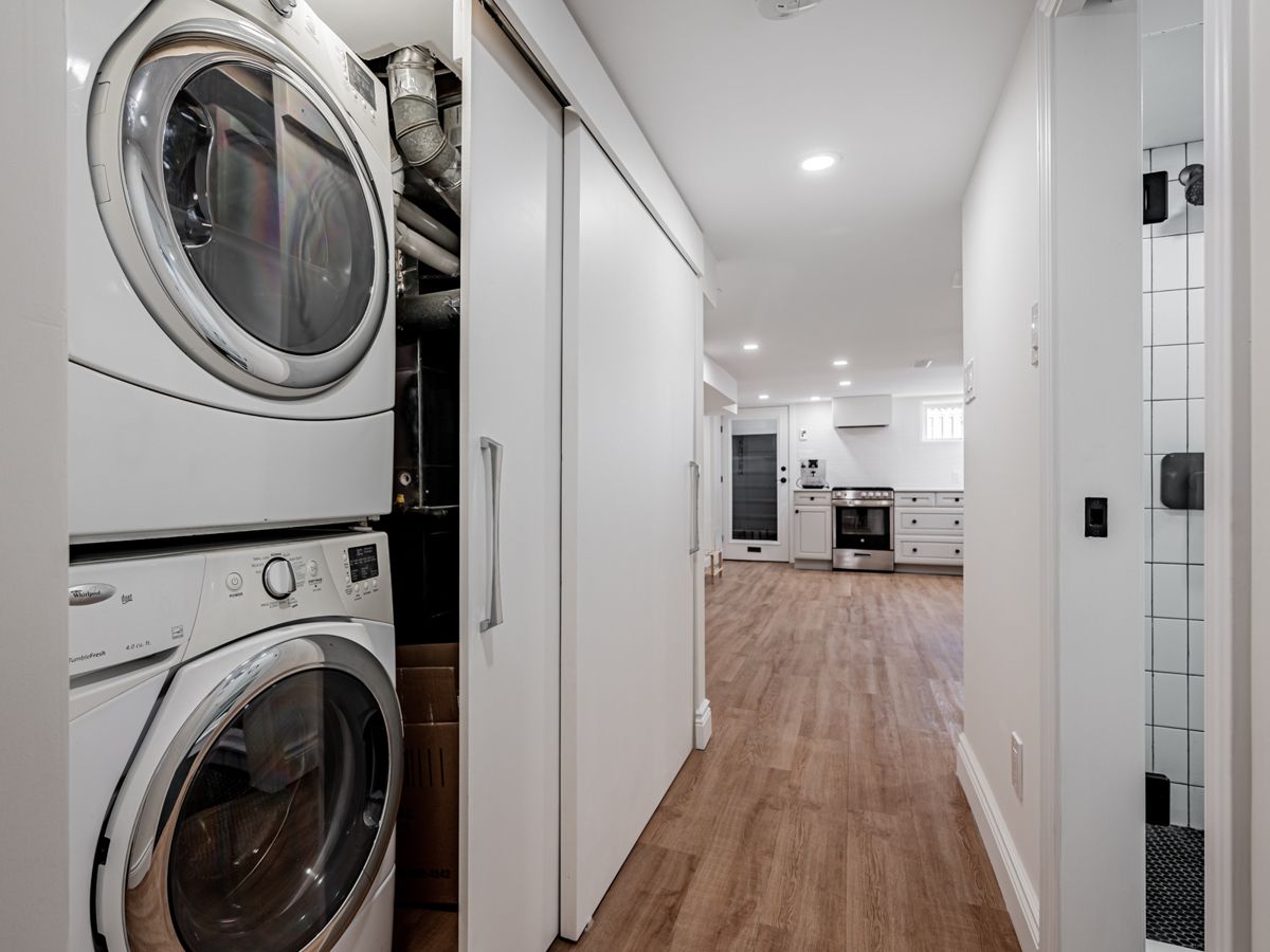 Utilities included! Bright and thoughtfully renovated 1-bedroom apartment in the heart of the beaches, just steps to everything this vibrant neighbourhood has to offer. Enjoy a short walk to woodbine beach, the boardwalk, cafes, restaurants, and local shops, with easy access to transit and everyday amenities. This stylish unit has been fully thoughtfully renovated by the interior designer owner ensuring a high level of craftsmanship, functionality, and attention to detail throughout. Features include an open-concept kitchen with engineered stone countertops, heated floors in the kitchen and living room, and pot lights that create a warm, inviting space. The spacious living and dining area is complemented by four windows and a glass door, allowing for excellent natural light. The separate bedroom offers privacy with a barn door and built-in wardrobes, while the spa-inspired 3-piece bathroom includes a glass shower and pocket door. Additional conveniences include ensuite laundry and utilities included (water, heat, and electricity). Located just minutes to woodbine beach, ashbridges bay, beach volleyball, bike and walking trails, paddleboard and kayak rentals, and a wide selection of neighbourhood cafés and restaurants, this is an ideal opportunity to enjoy easy, low-maintenance living in one of toronto's most sought-after communities.