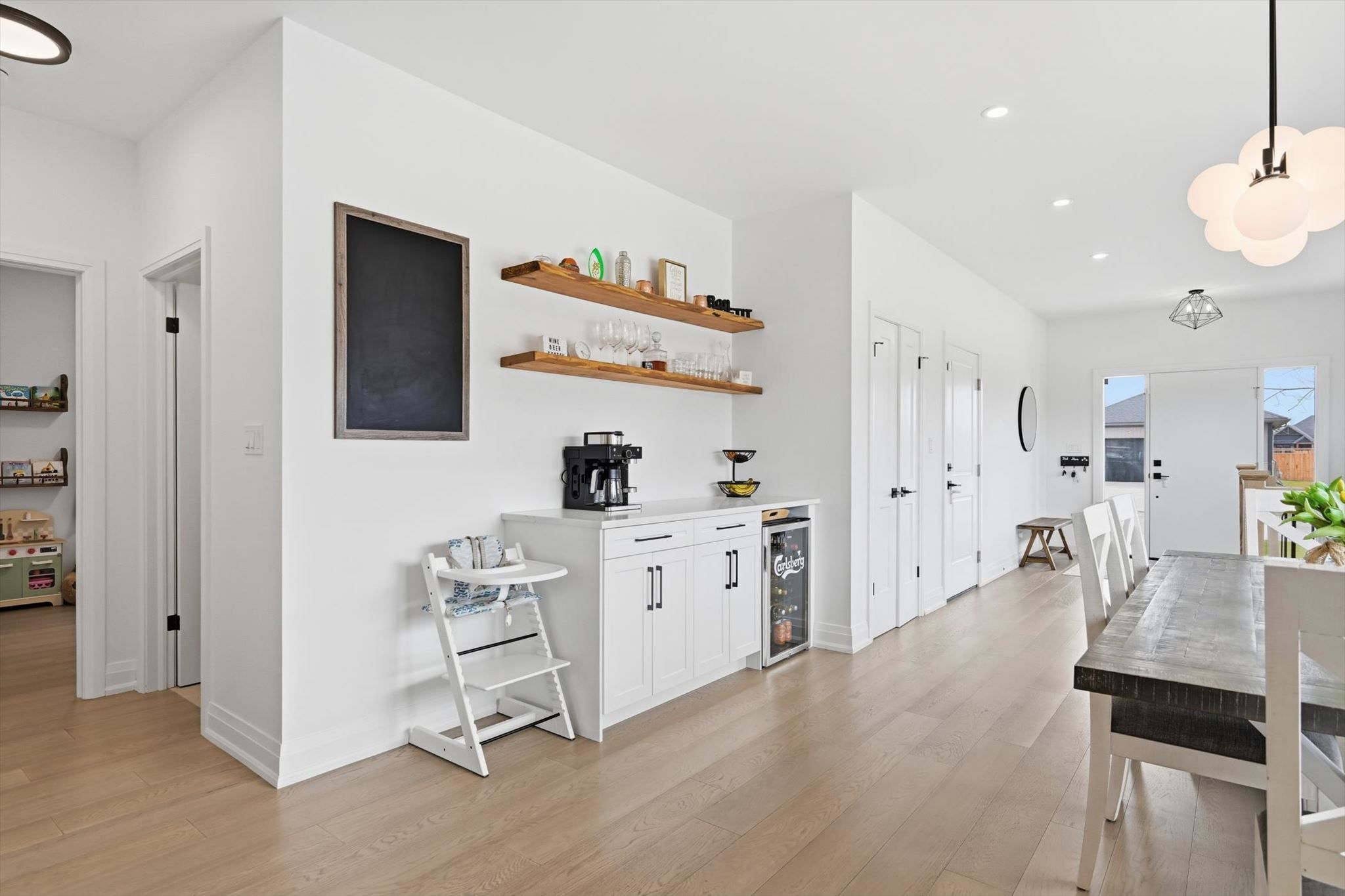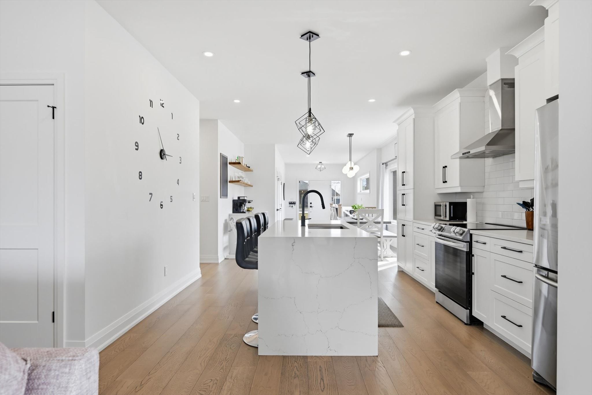 • Open-concept design with a custom kitchen and coffee/bar nook.