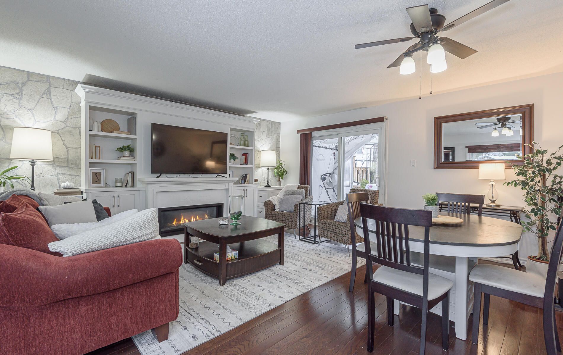 • Energy-efficient heat pump and elegant gas fireplace for heating.