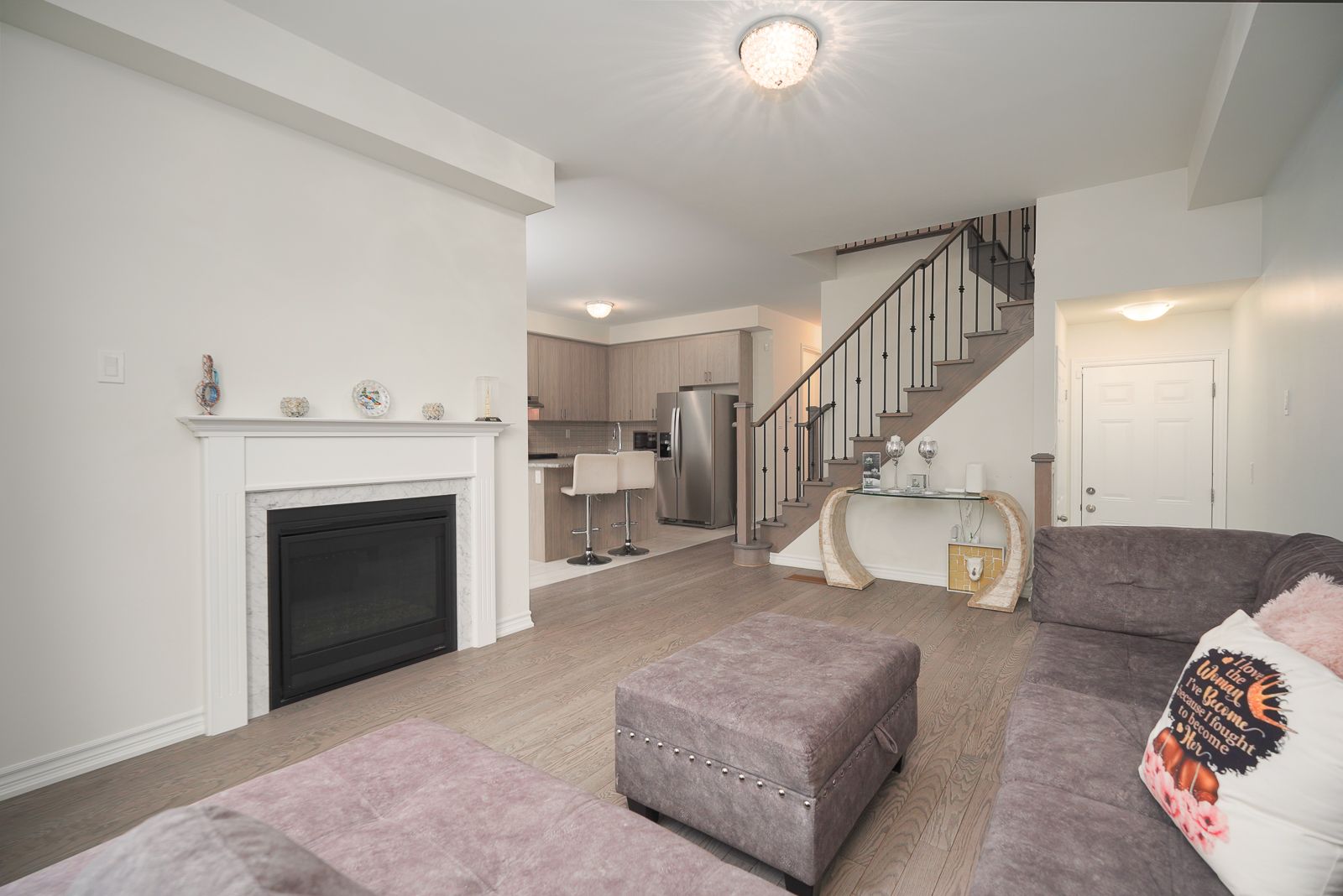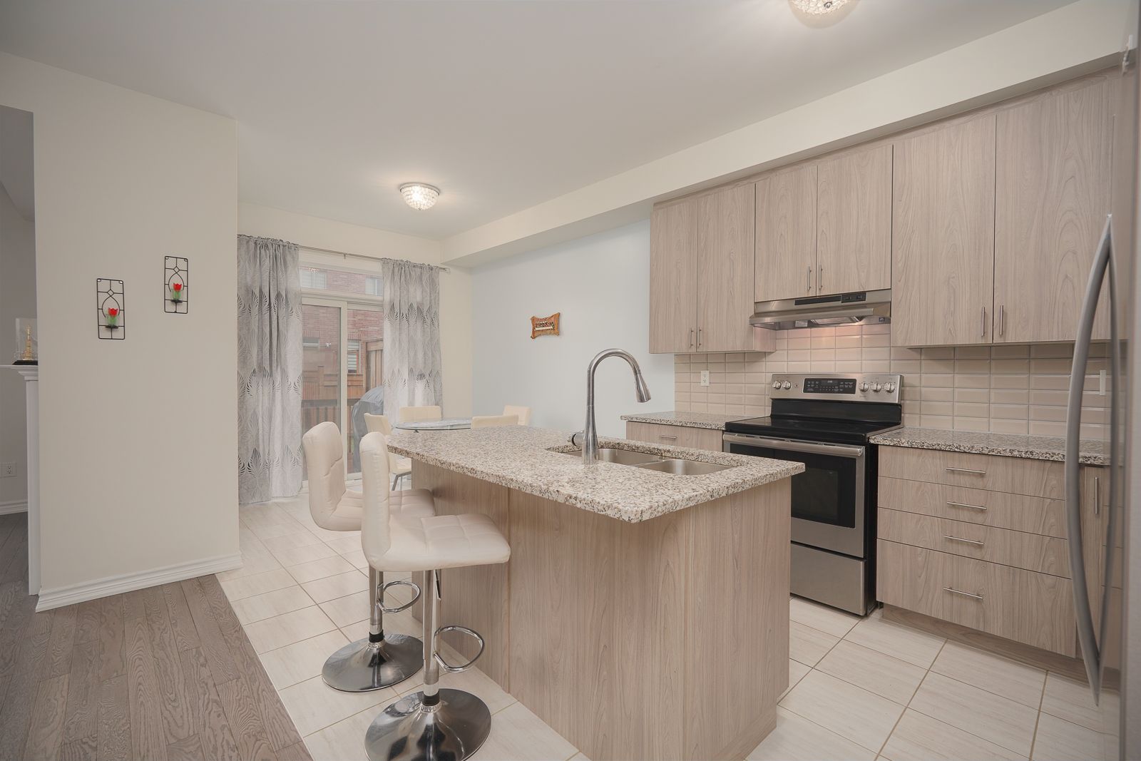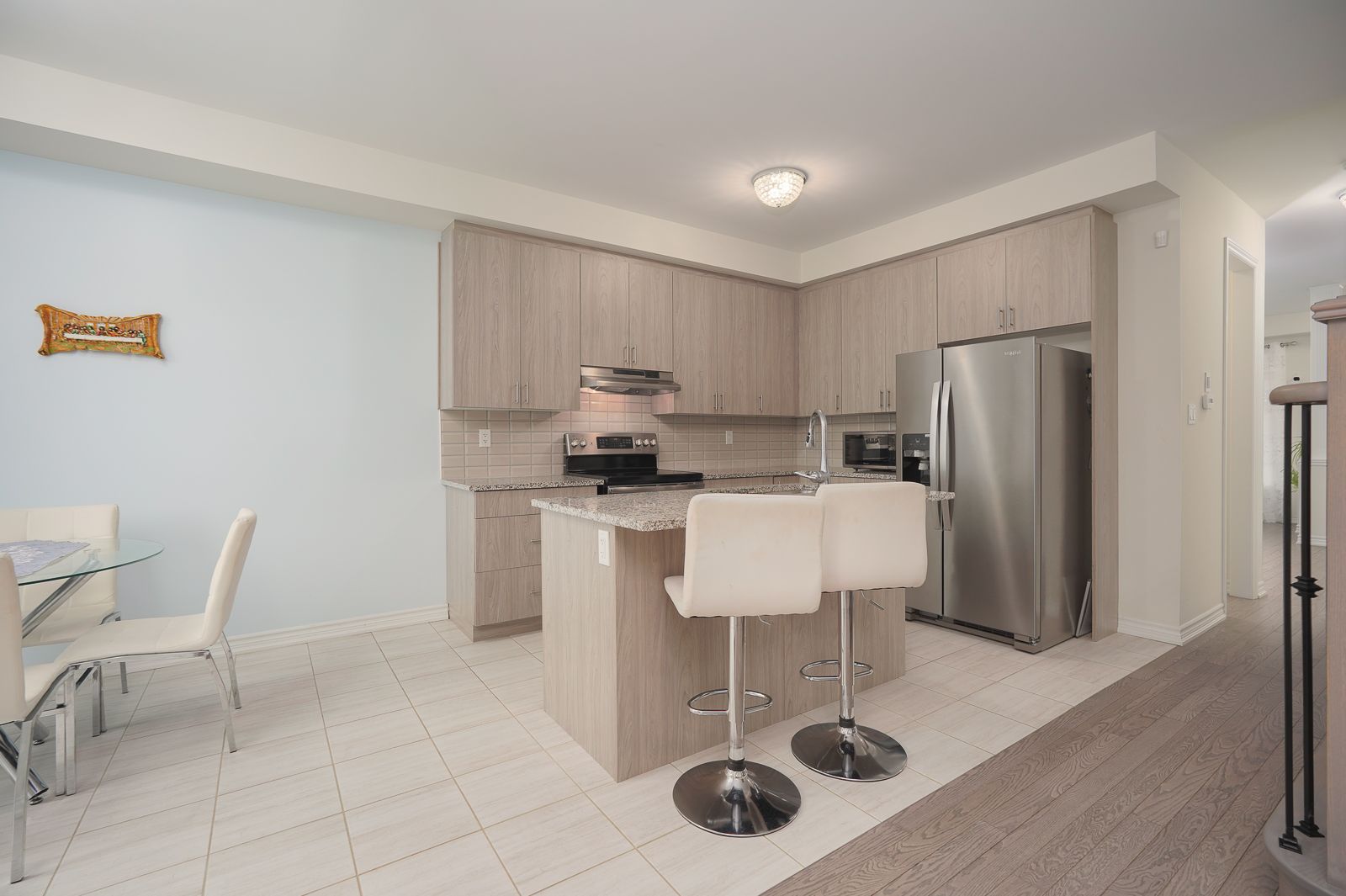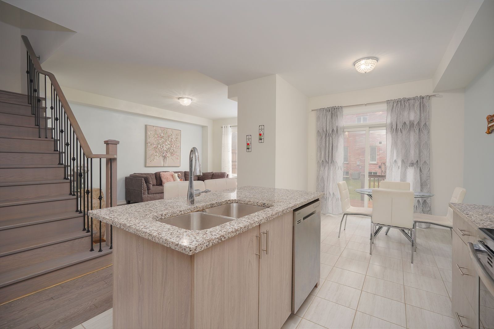 Beautiful brick and stone townhome nestled in a safe, family-oriented neighborhood in north ajax. This inviting home features a charming covered front porch and a thoughtfully designed layout with 3 spacious bedrooms and 3 bathrooms. The bright and spacious main floor offers a welcoming living room with a cozy gas fireplace and a comfortable family area, creating the perfect space for both everyday living and entertaining. The modern, family-sized kitchen features granite countertops, stainless steel appliances, a center island, and a sun-filled breakfast area with a walkout to the backyard deck-ideal for outdoor dining and relaxing. Hardwood flooring throughout the main floor adds warmth and elegance to the space. Upstairs, the king-sized primary bedroom includes a walk-in closet and a luxurious 5-piece ensuite complete with a glass shower. Enjoy the spacious backyard with a wood deck, perfect for hosting family and friends. The unfinished basement offers excellent potential to customize to your needs. Ideally located in desirable north ajax, close to schools, parks, playgrounds, shopping, and transit, making it a wonderful place to call home.
